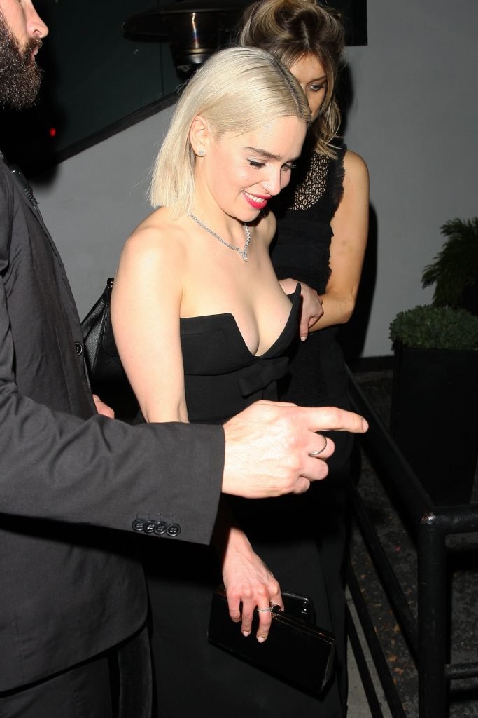 A atriz Emilia Clarke, 31, sai do clube Poppy após participar do Prêmio Globo de Ouro 2018 em West Hollywood, 01/08/2018.