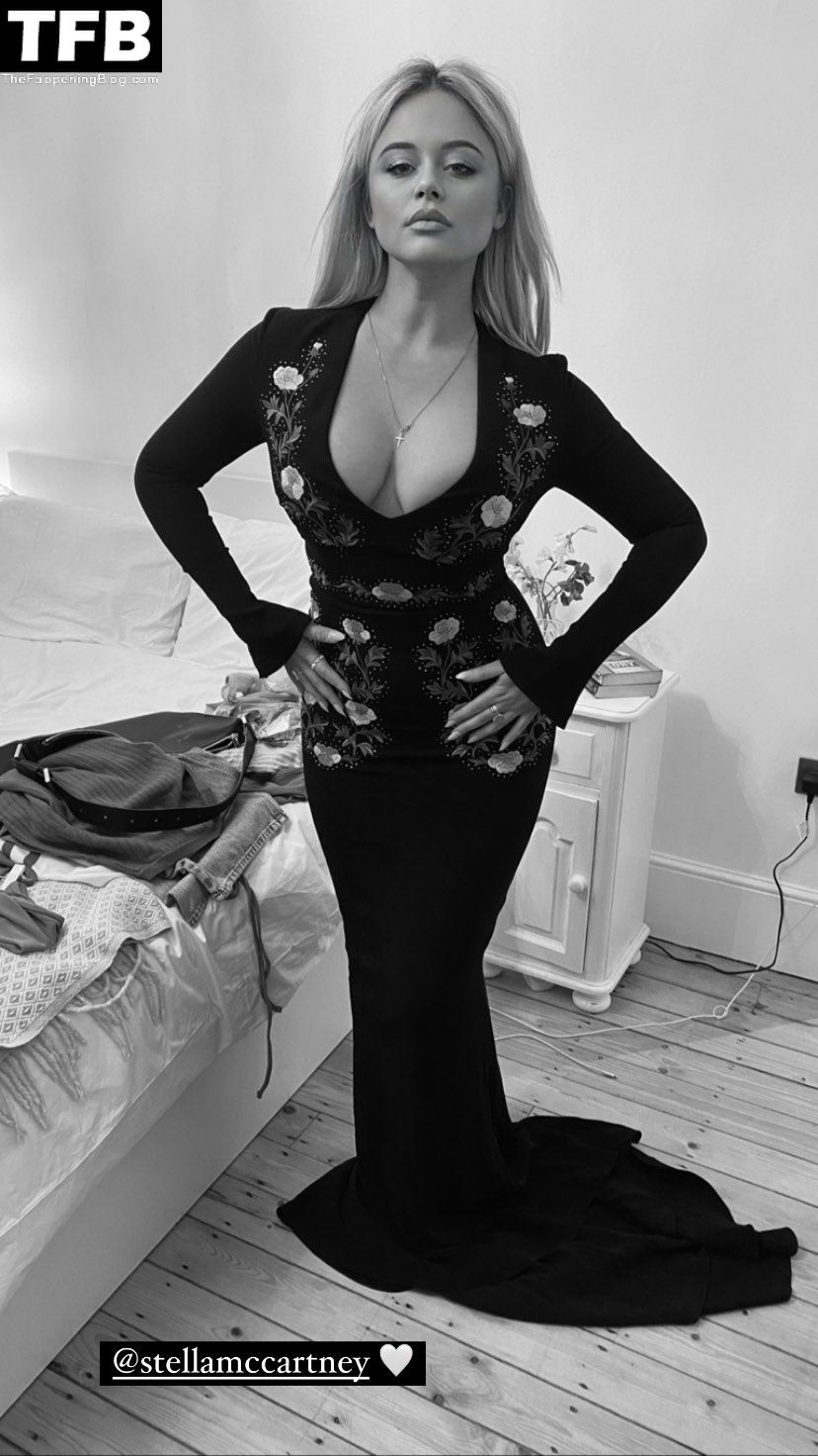 A atriz inglesa Emily Atack exibe um belo decote, posando para 1,8 milhões de seguidores no Instagram, 06/02/2022.