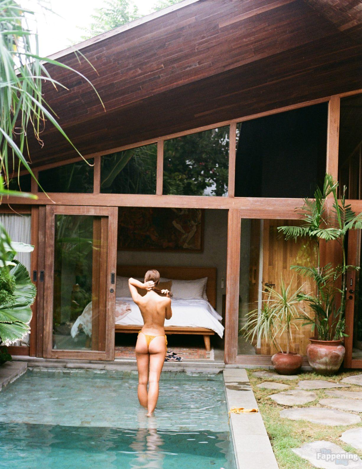 Emily Feld, a estrela australiana das redes sociais, acaba de lançar um ensaio sexy para a revista LiveFast V138. Ela está arrasando com um biquíni fio dental micro, mostrando seus seios e bumbum.