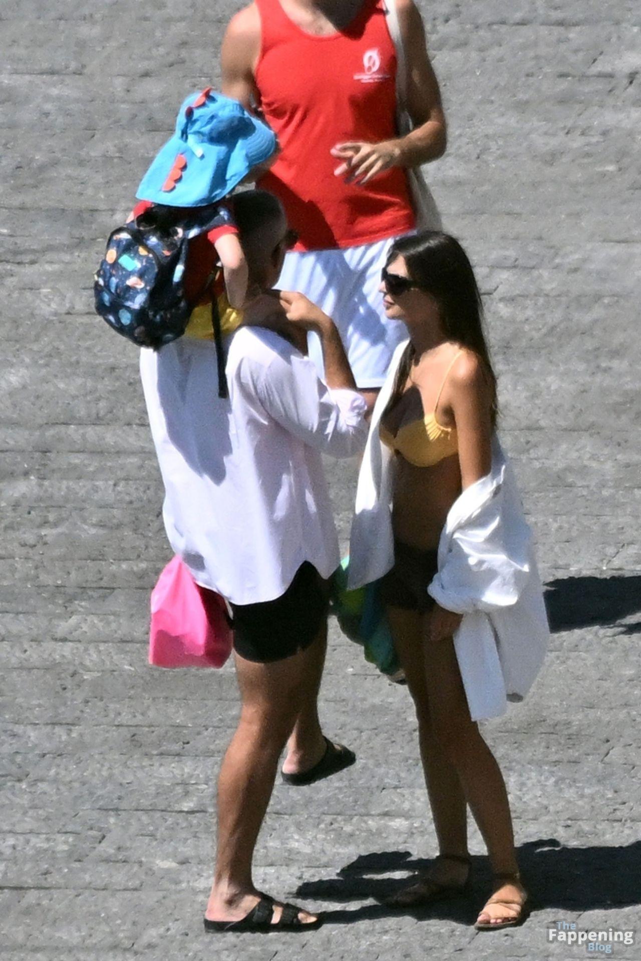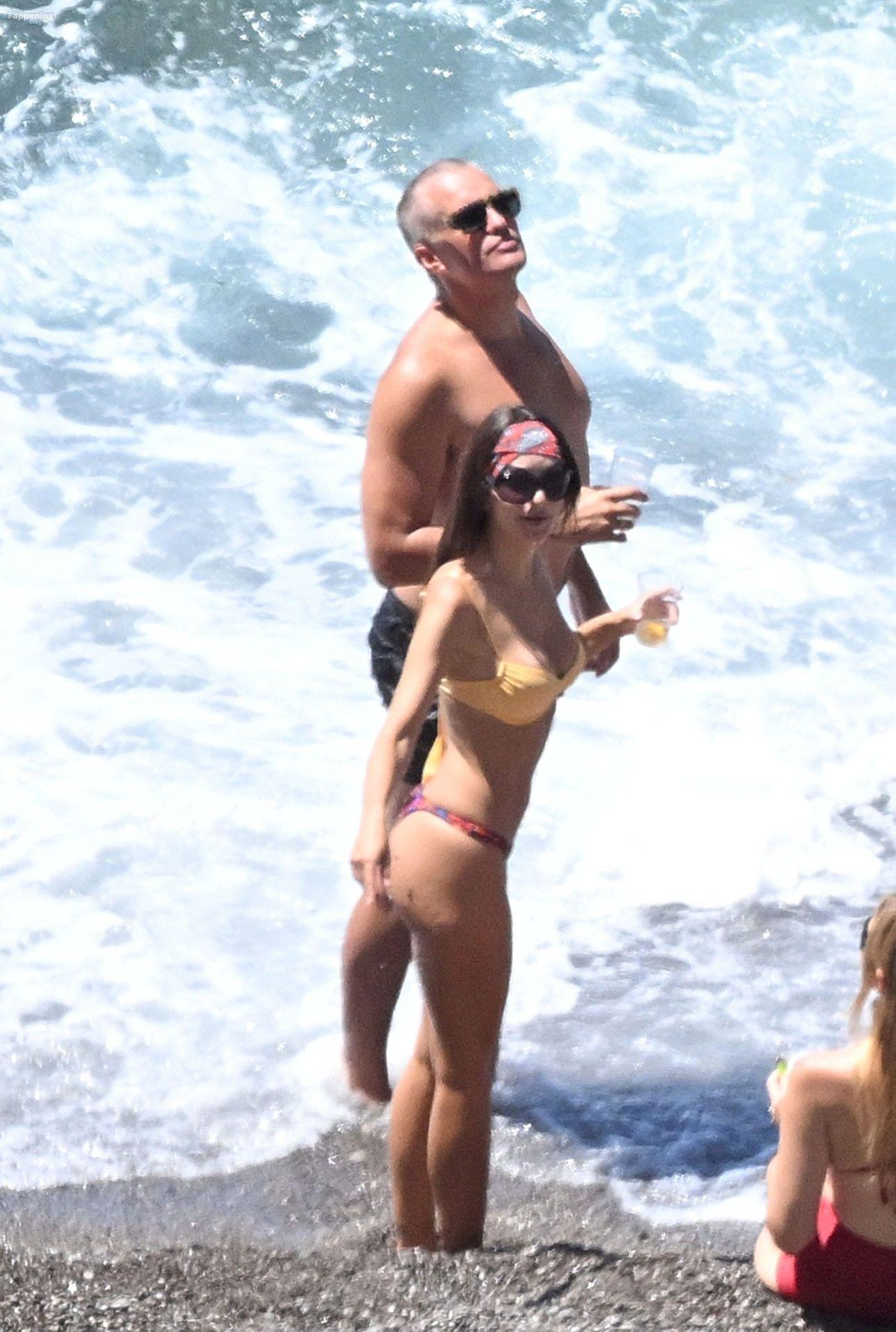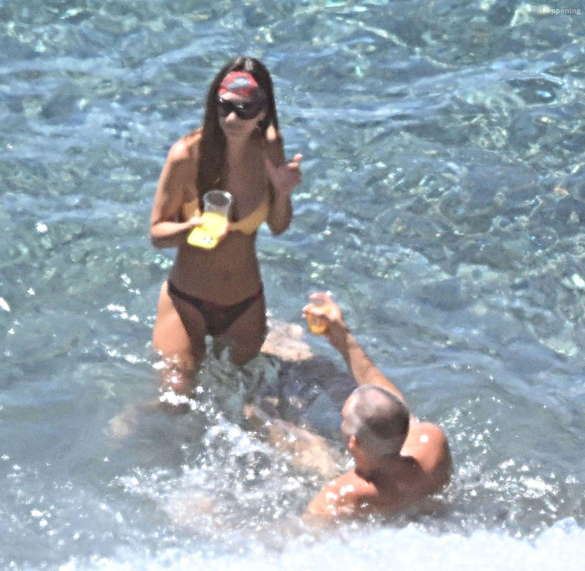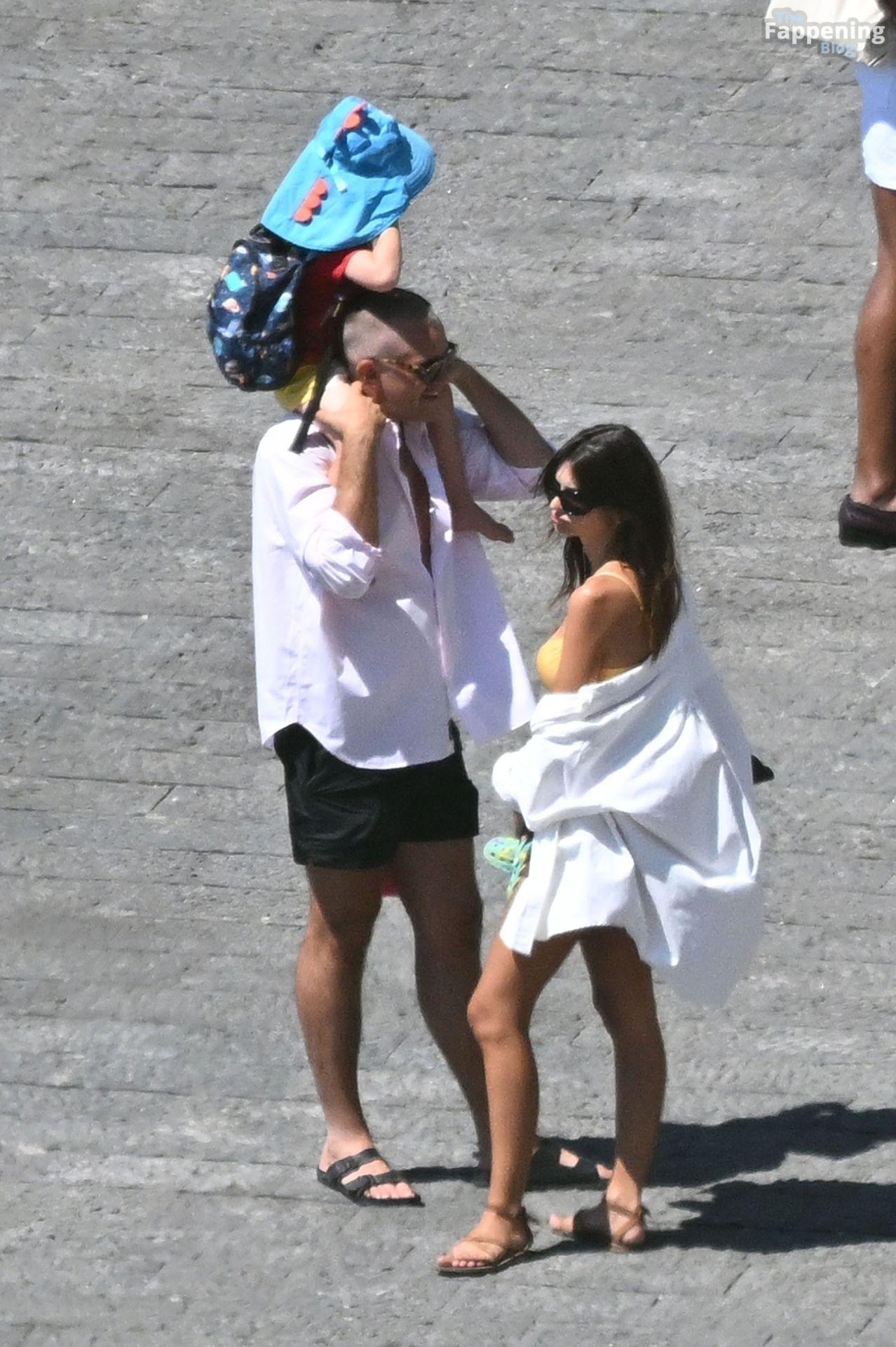 Ela está relaxando com seu novo namorado, o DJ Orazio Rispo, e seu filho Sylvester. Eles têm história, rumores dizem que estavam se beijando em Nova York em 2022. Os dois estavam se divertindo no mar, compartilhando momentos doces, com Orazio sem camisa e Emily usando aquele biquíni quase inexistente.