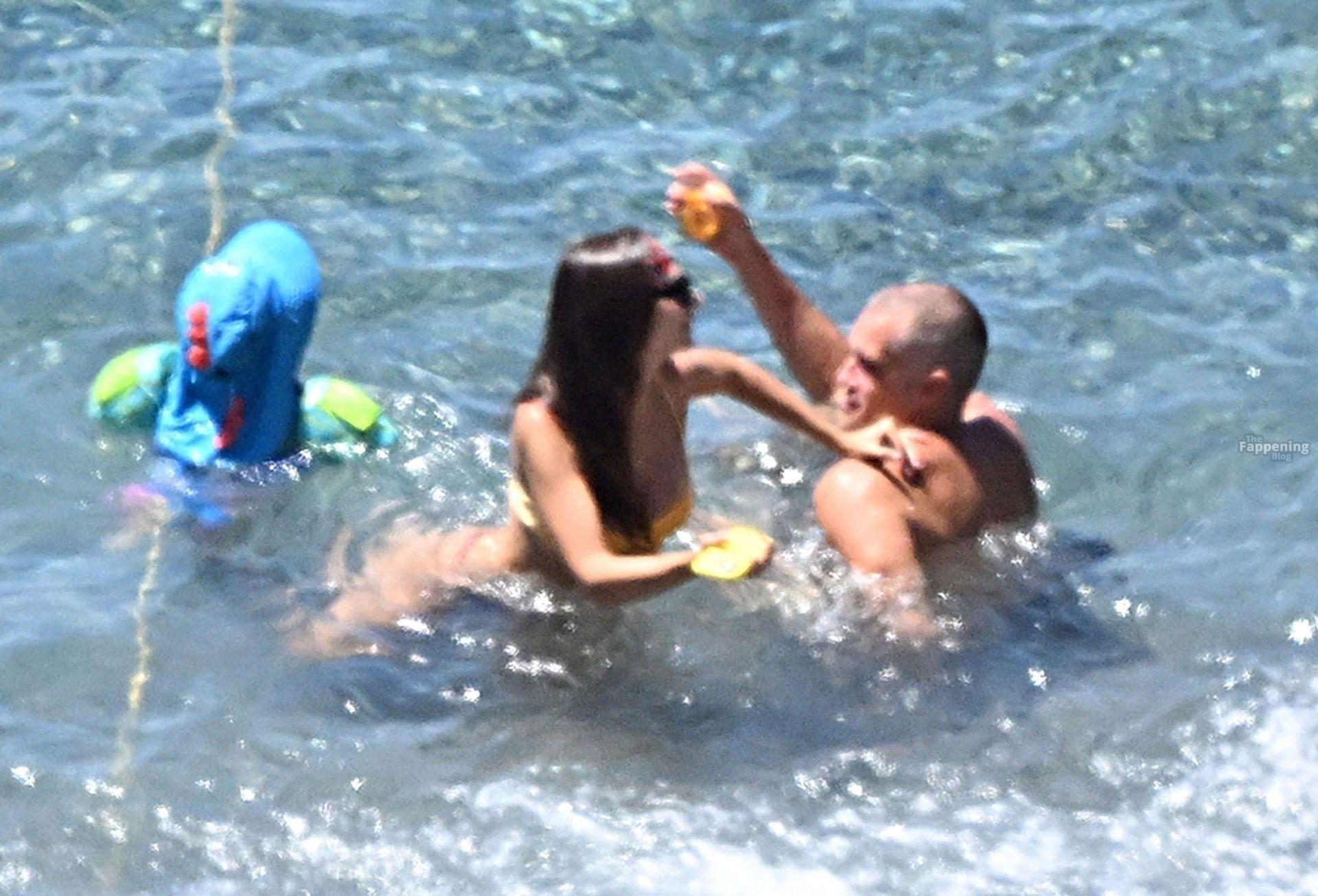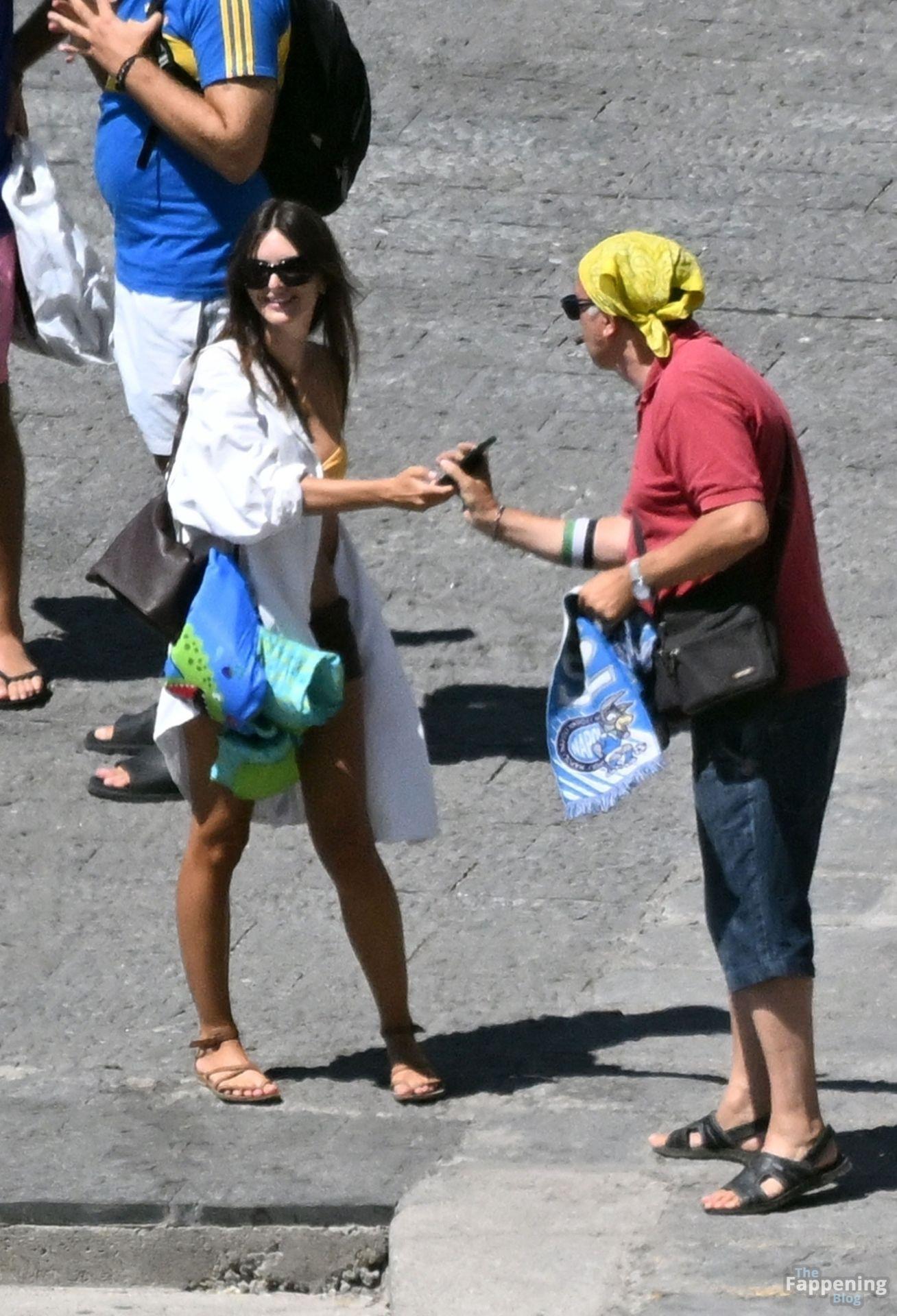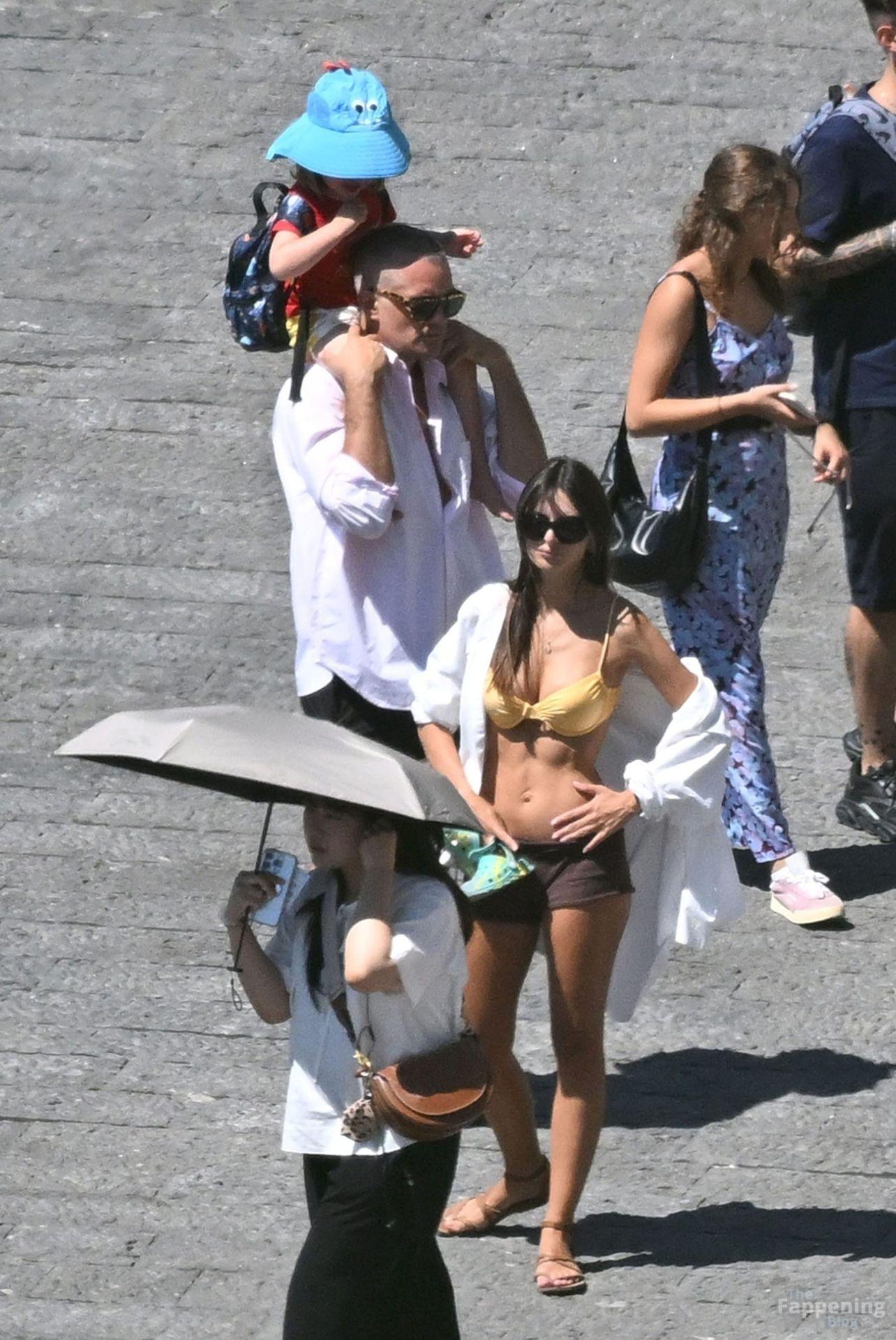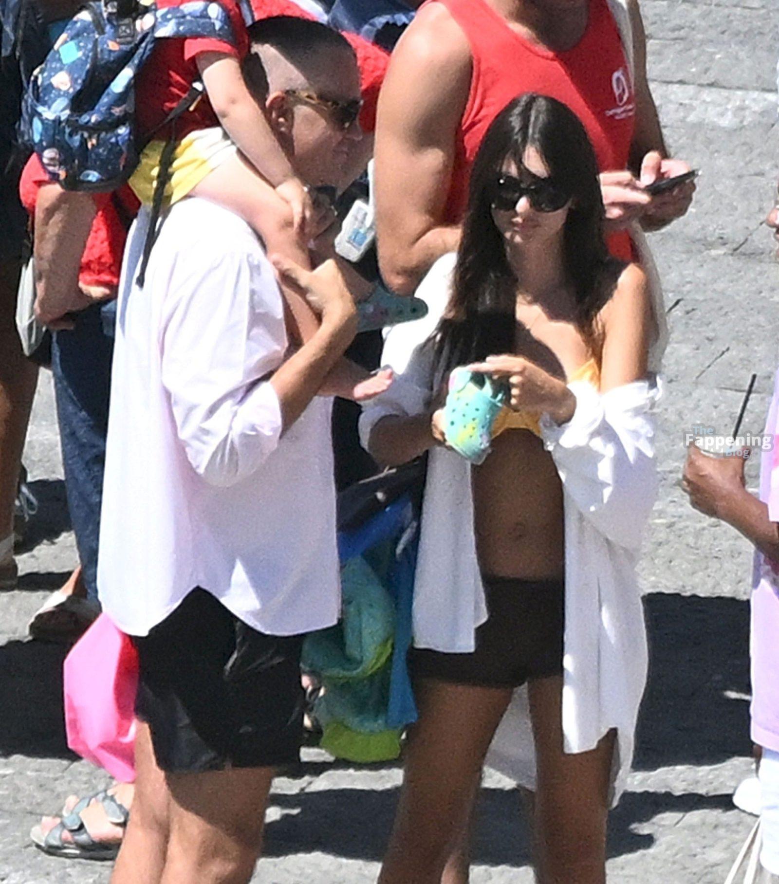 Ela está relaxando com seu novo namorado, o DJ Orazio Rispo, e seu filho Sylvester. Eles têm história, rumores dizem que estavam se beijando em Nova York em 2022. Os dois estavam se divertindo no mar, compartilhando momentos doces, com Orazio sem camisa e Emily usando aquele biquíni quase inexistente.