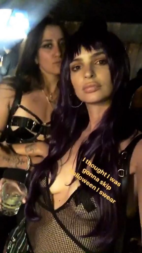 Emily Ratajkowski usa um body preto transparente com pasties na Festa de Halloween em Los Angeles, 28/10/2017. Emily O’Hara Ratajkowski é uma modelo americana, ativista, atriz (Um Ano e Um Dia). Idade – 26 anos (7 de junho de 1991).