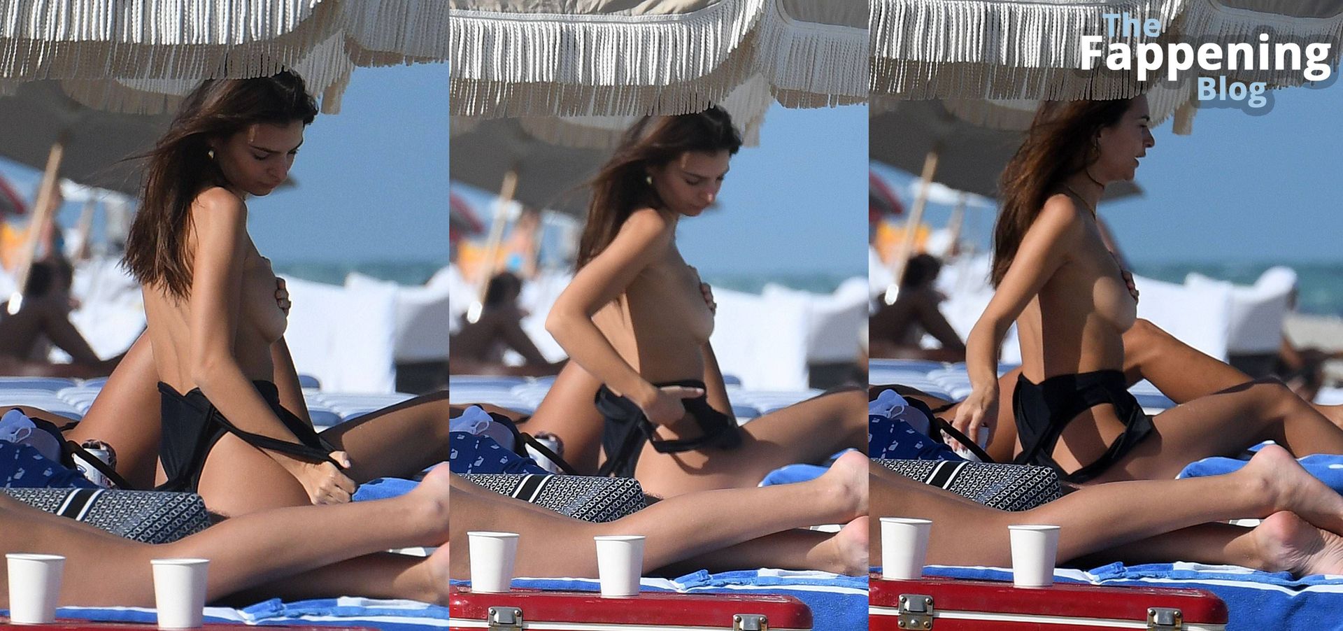 Confira, Emily Ratajkowski foi flagrada topless relaxando na praia. Enquanto ela se preparava para algumas selfies no Insta, ajustou seu maiô e foi clicada com os seios à mostra! Faz tempo que ela não postava fotos tão picantes assim!
