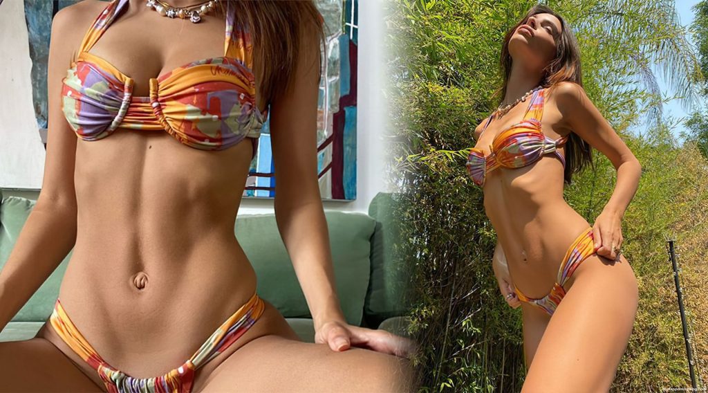 Modelo Emily Ratajkowski exibe seu corpo tonificado impressionante usando um minúsculo biquíni Inamorata – Instagram, 17/08/2021.