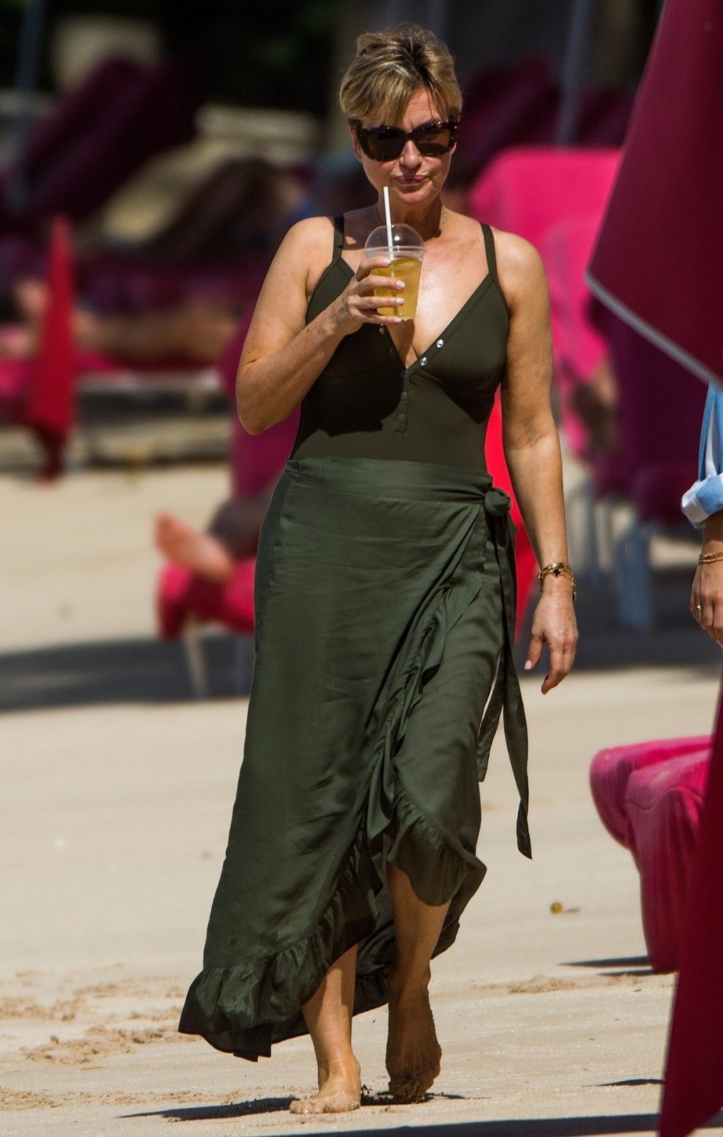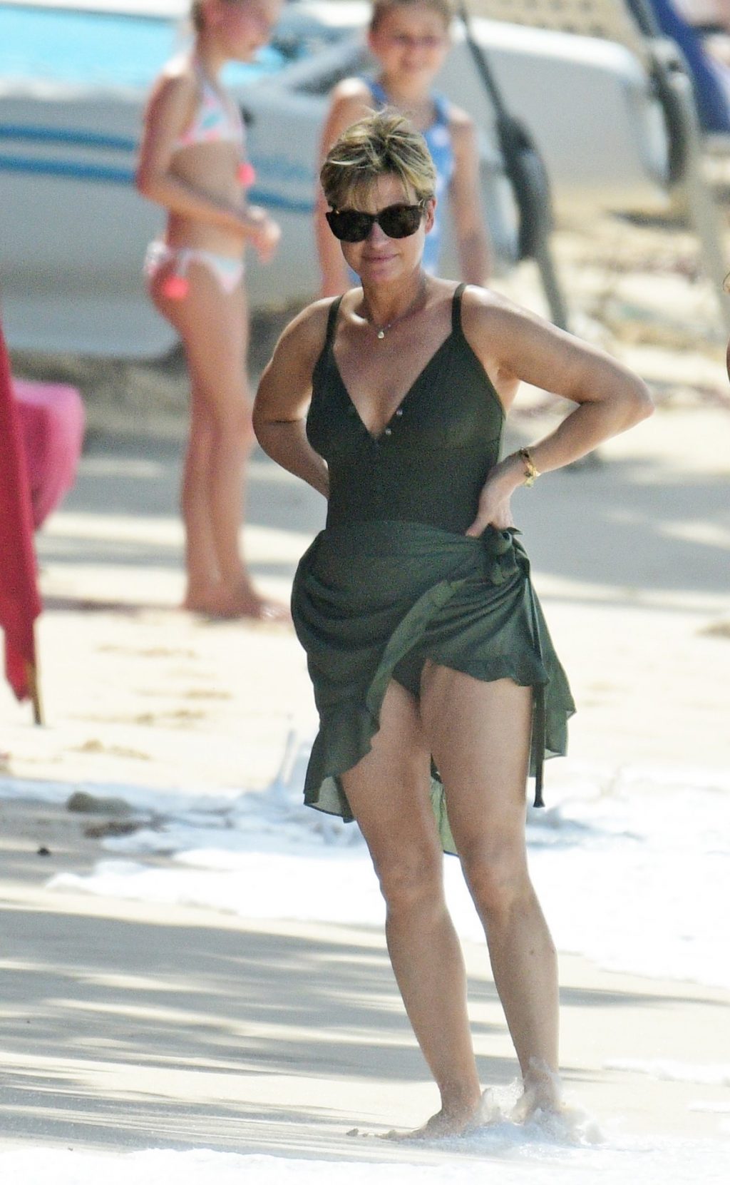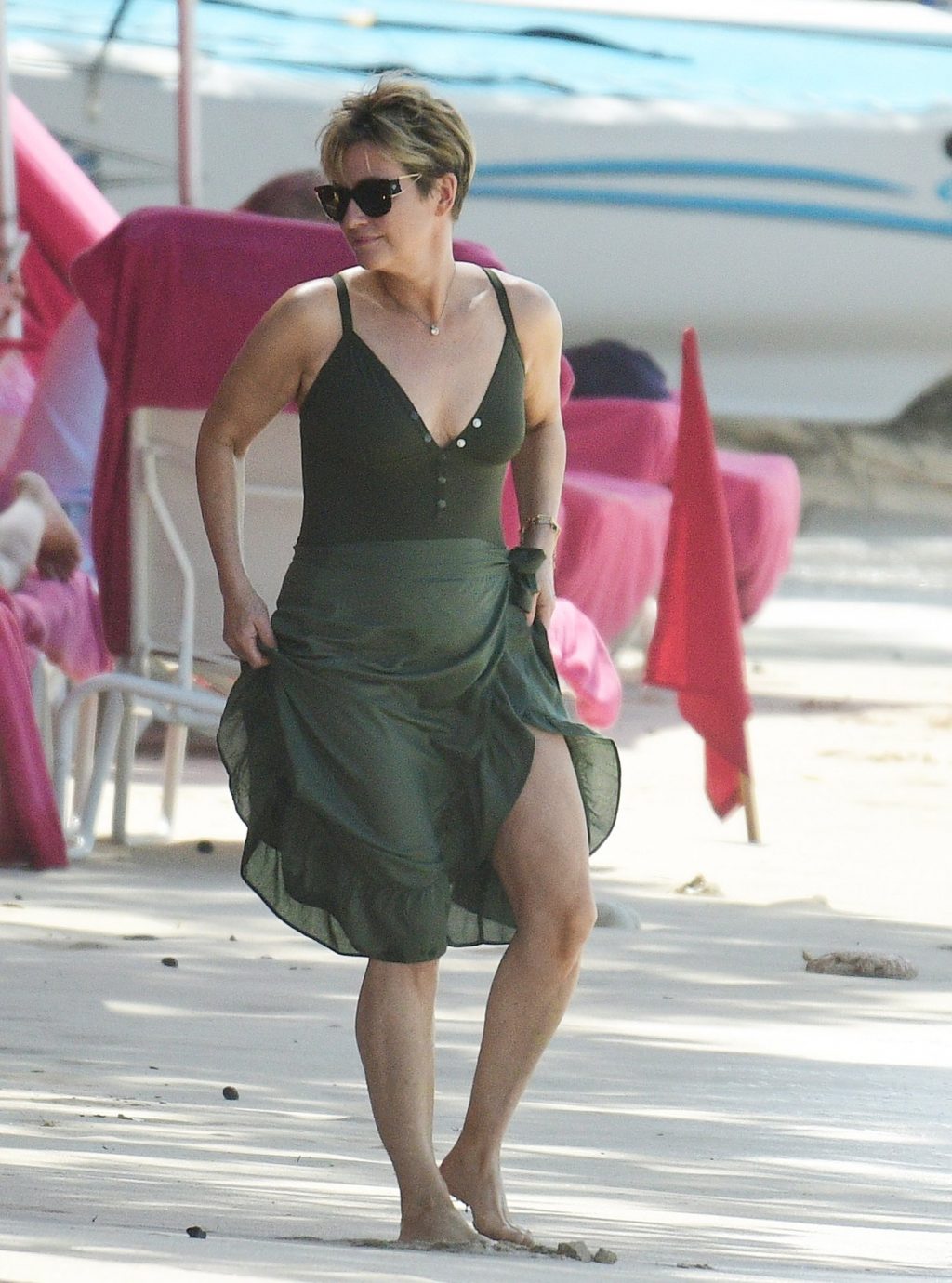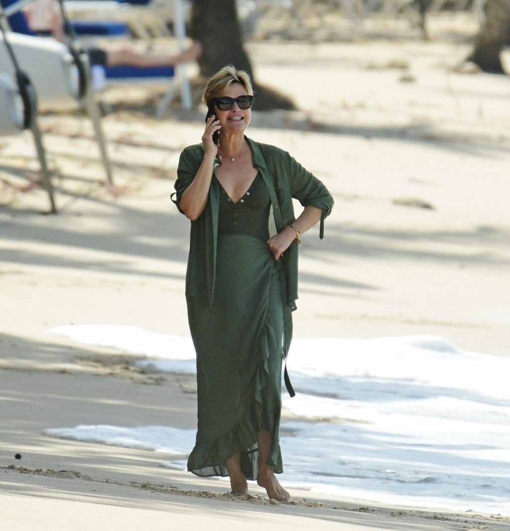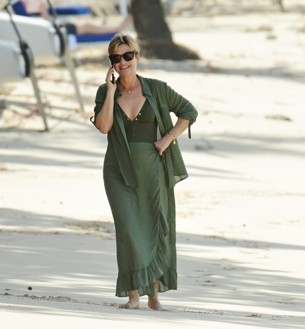 Apresentadora britânica Emma Forbes foi vista em suas férias de inverno na praia do Sandy Lane Hotel, na Paróquia de St. James, Barbados, 18/12/2019.