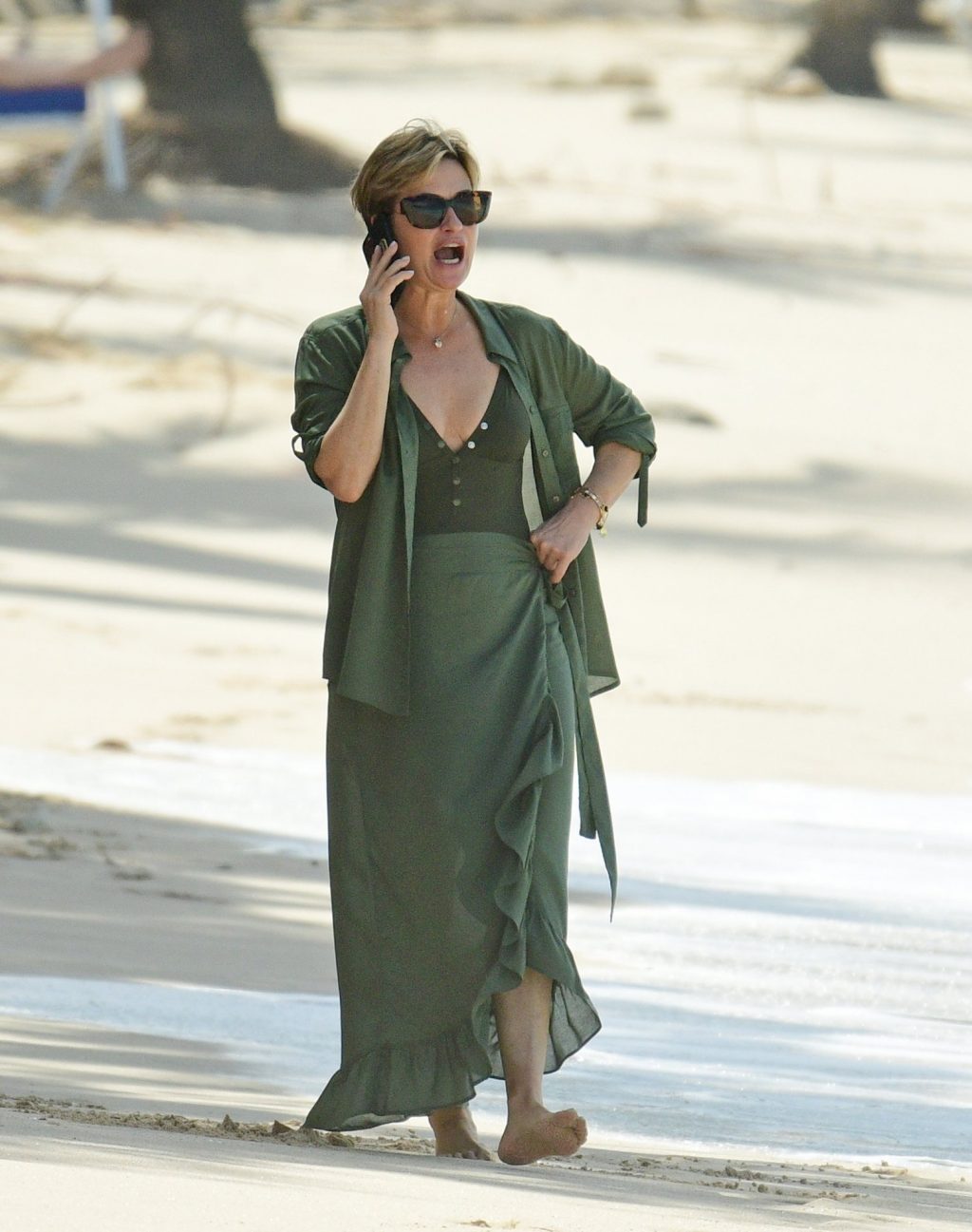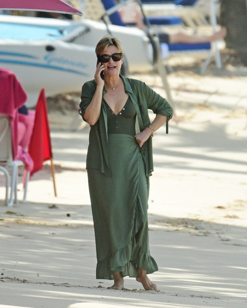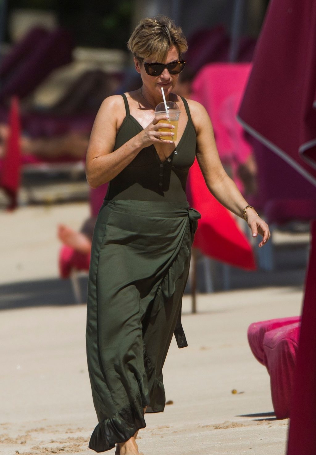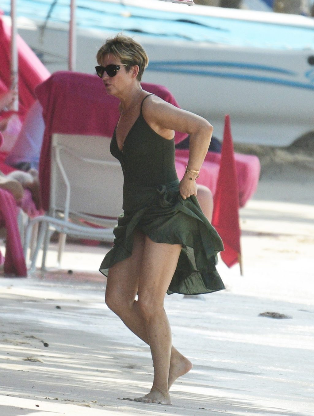 Apresentadora britânica Emma Forbes foi vista em suas férias de inverno na praia do Sandy Lane Hotel, na Paróquia de St. James, Barbados, 18/12/2019.