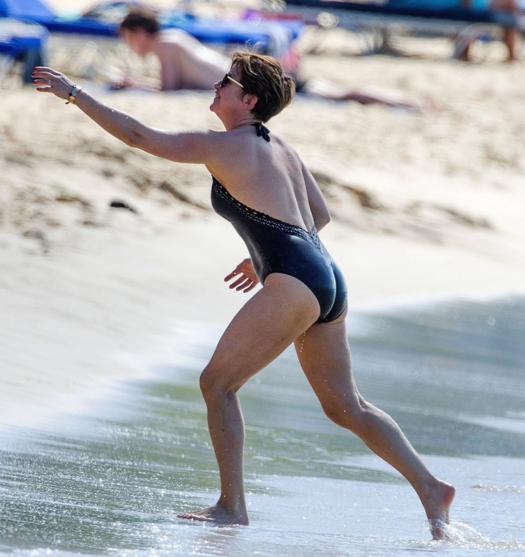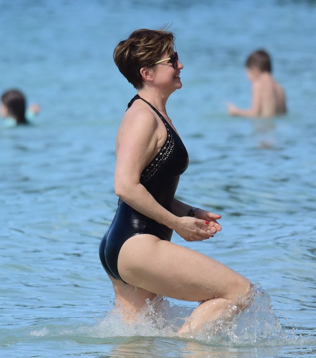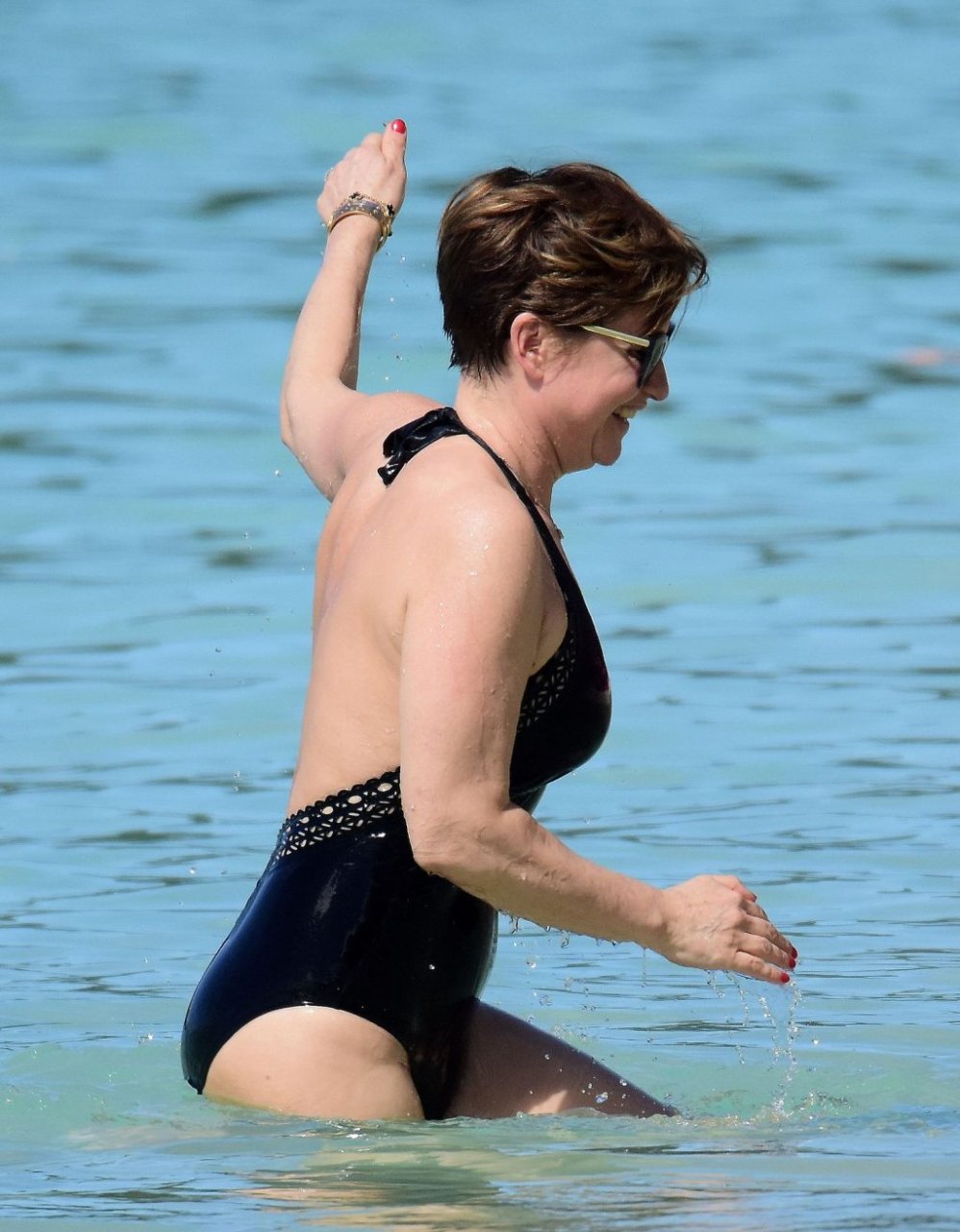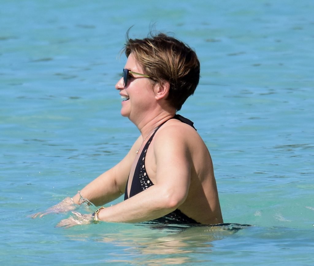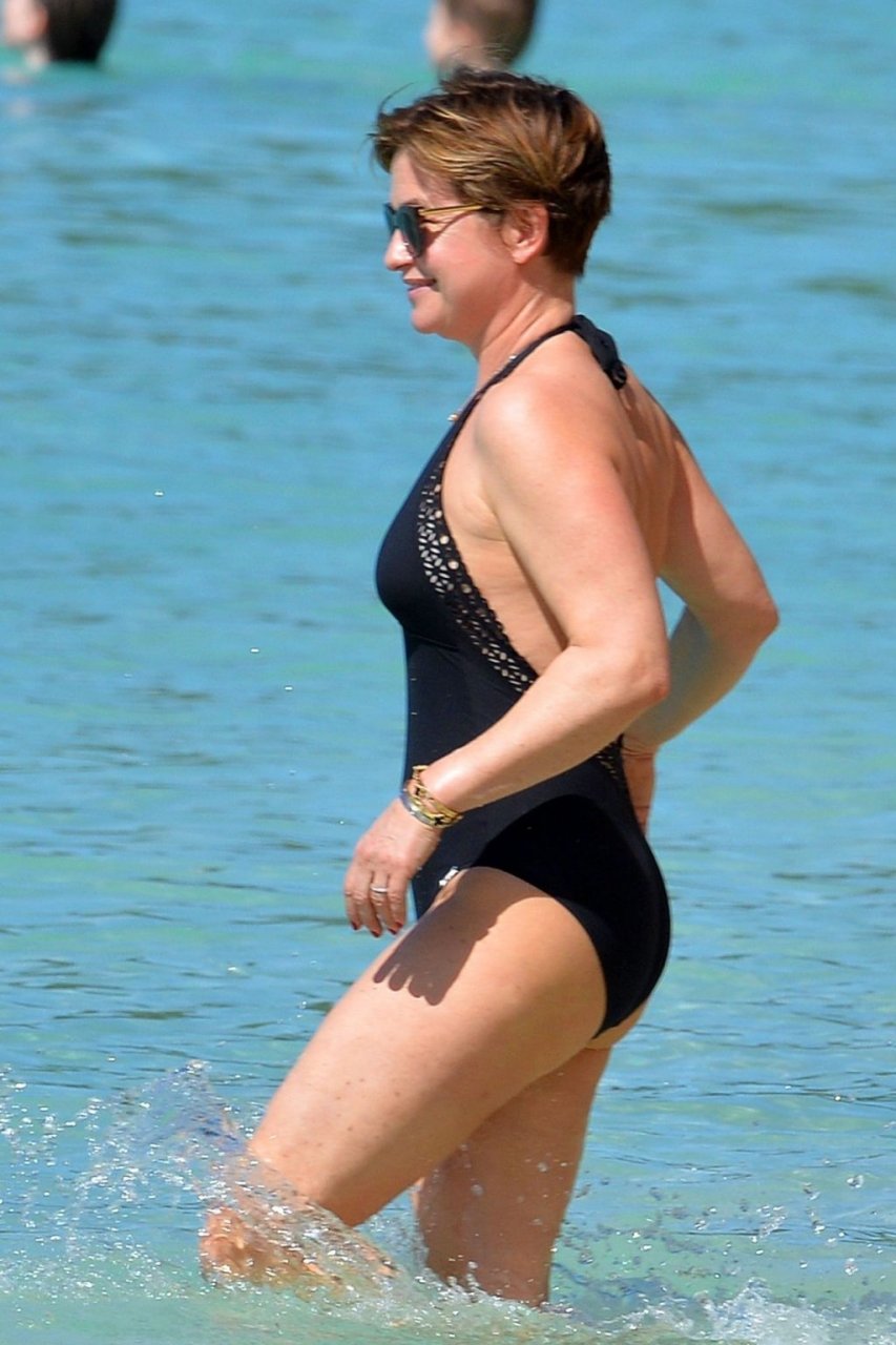 Emma Forbes aproveita suas férias na praia em Barbados, 20/12/2018. A apresentadora inglesa de rádio e TV de 53 anos exibiu seu corpo quente usando um maiô preto clássico.