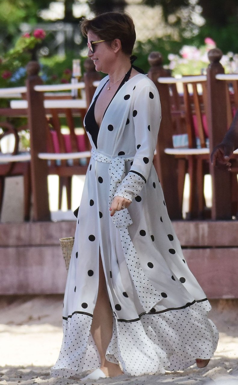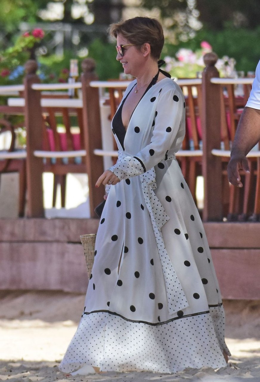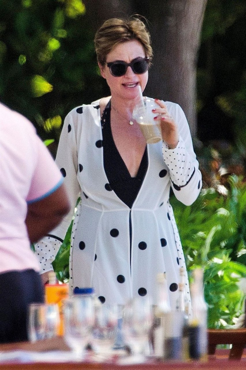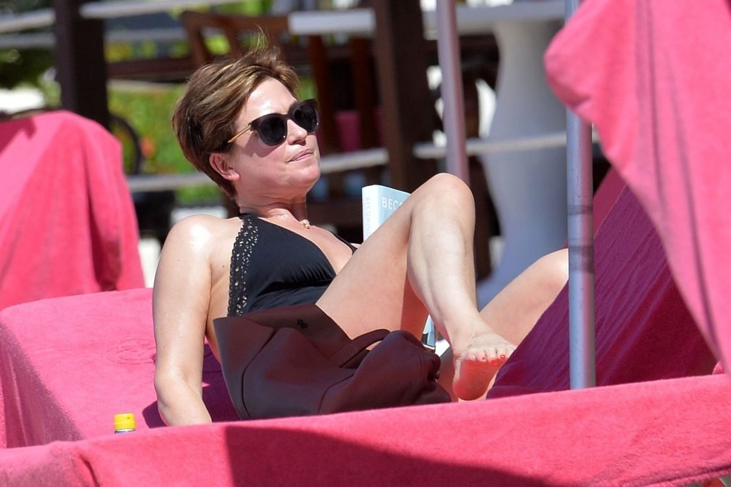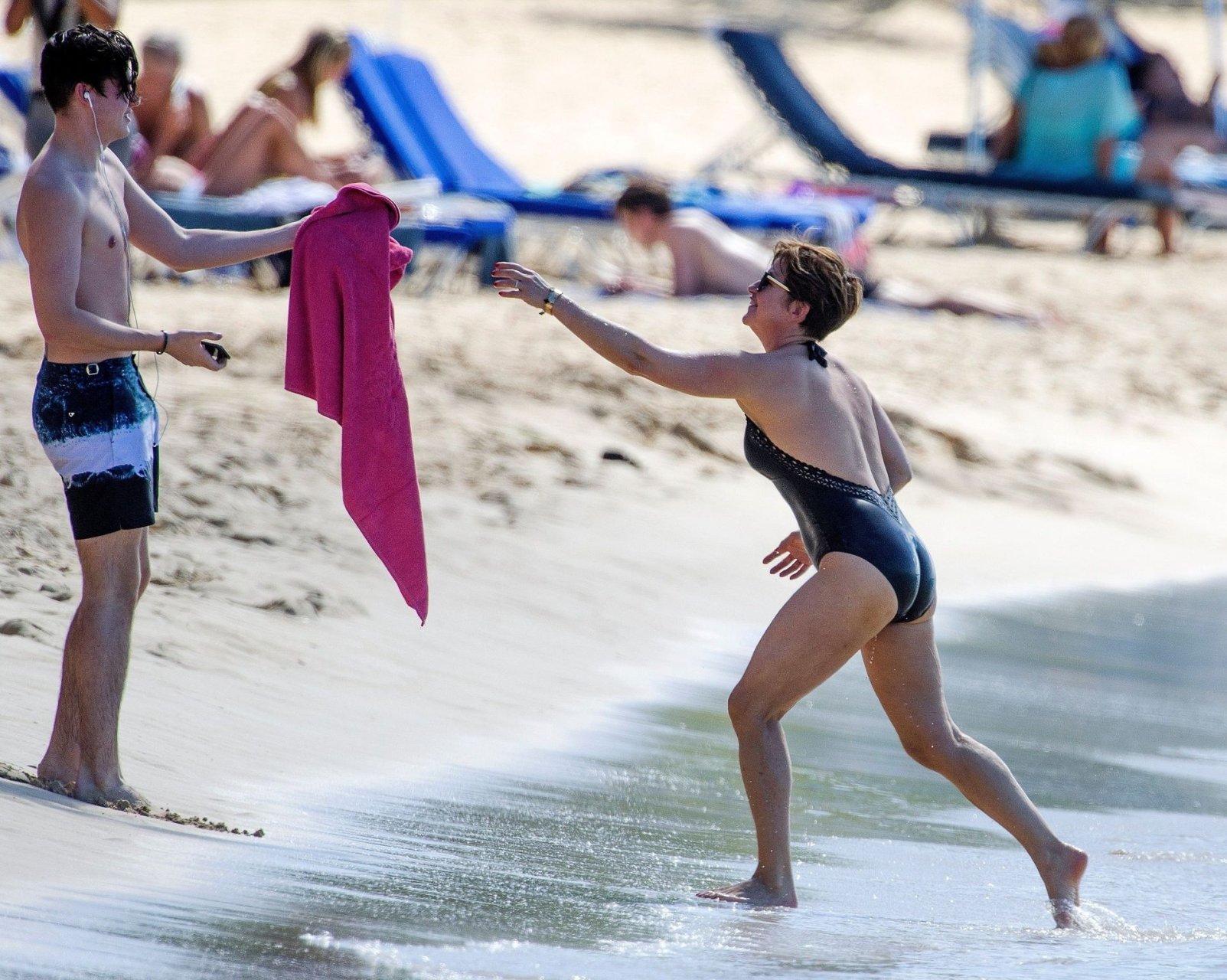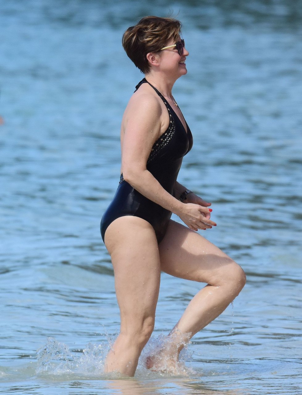 Emma Forbes aproveita suas férias na praia em Barbados, 20/12/2018. A apresentadora inglesa de rádio e TV de 53 anos exibiu seu corpo quente usando um maiô preto clássico.