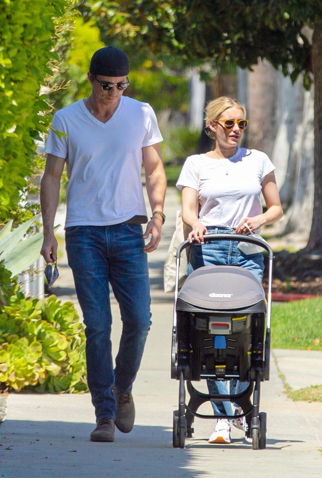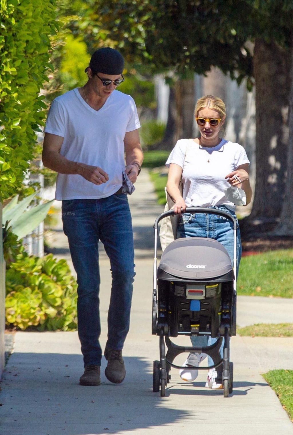 Here guys, are a few more recent photos of miss Emma Roberts! She showed off her big tits when she went on a walk completely braless! Some sneaky paparazzi caught Emma Roberts and her boyfriend Garrett Hedlund as they went for a walk in the park, dressed in matching white tees and blue jeans.