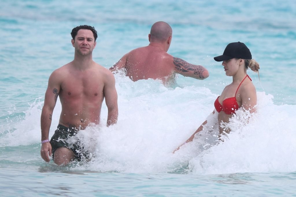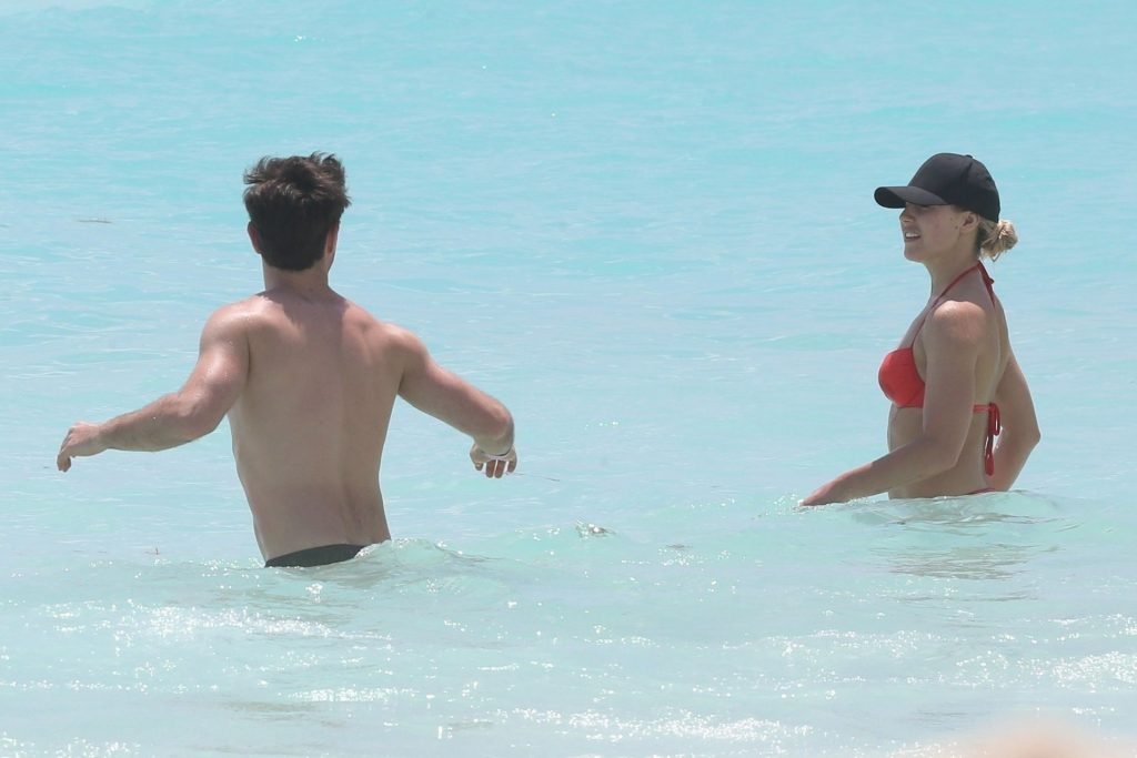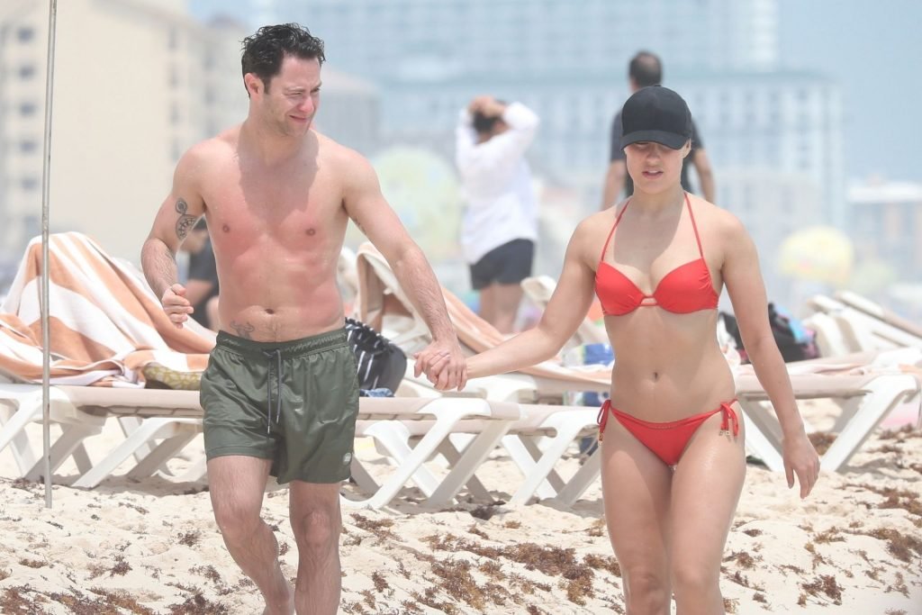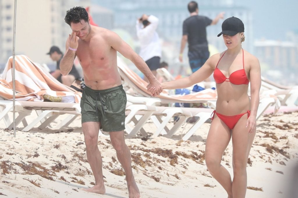 A estrela de The Fappening Emma Slater e Sasha Farber foram vistos de férias em Cancun, 24/03/2019. Ambos os dançarinos dão um mergulho na água e depois fazem uma caminhada romântica na praia. Emma exibe seu bumbum e seios em um biquíni vermelho quente.