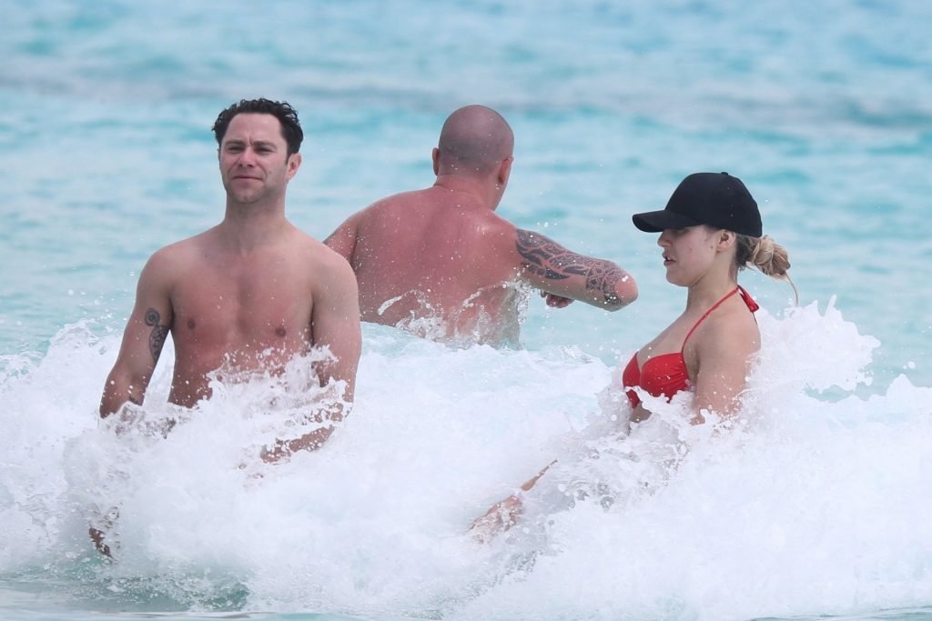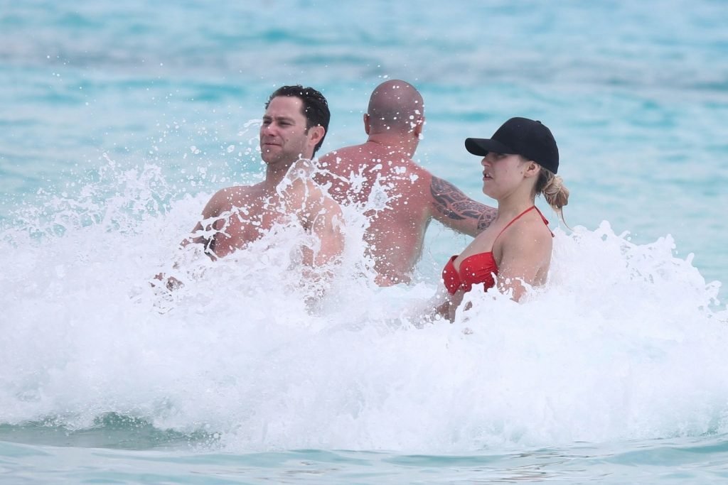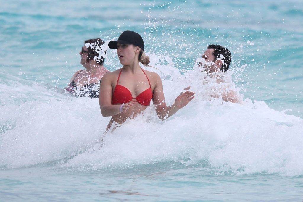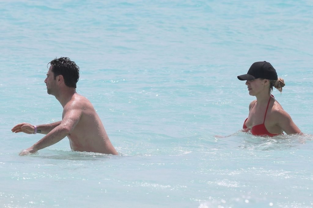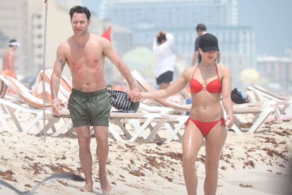 A estrela de The Fappening Emma Slater e Sasha Farber foram vistos de férias em Cancun, 24/03/2019. Ambos os dançarinos dão um mergulho na água e depois fazem uma caminhada romântica na praia. Emma exibe seu bumbum e seios em um biquíni vermelho quente.