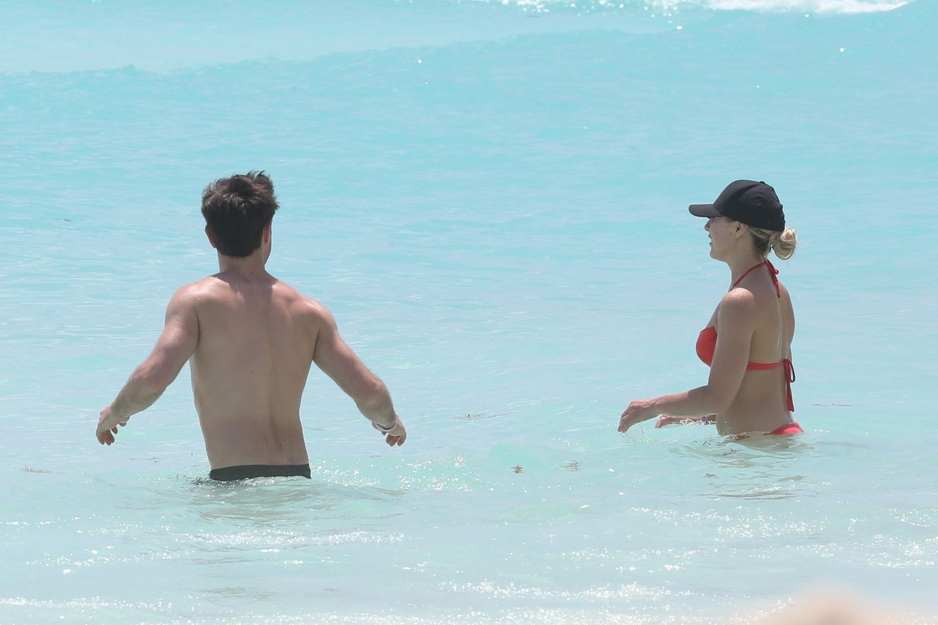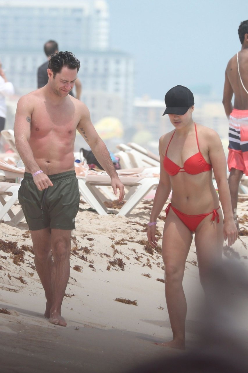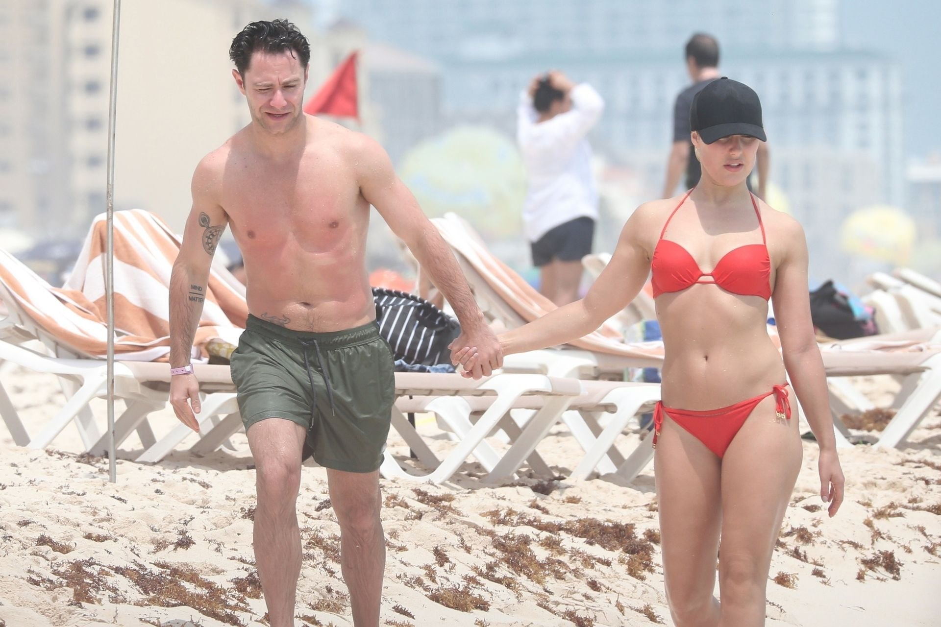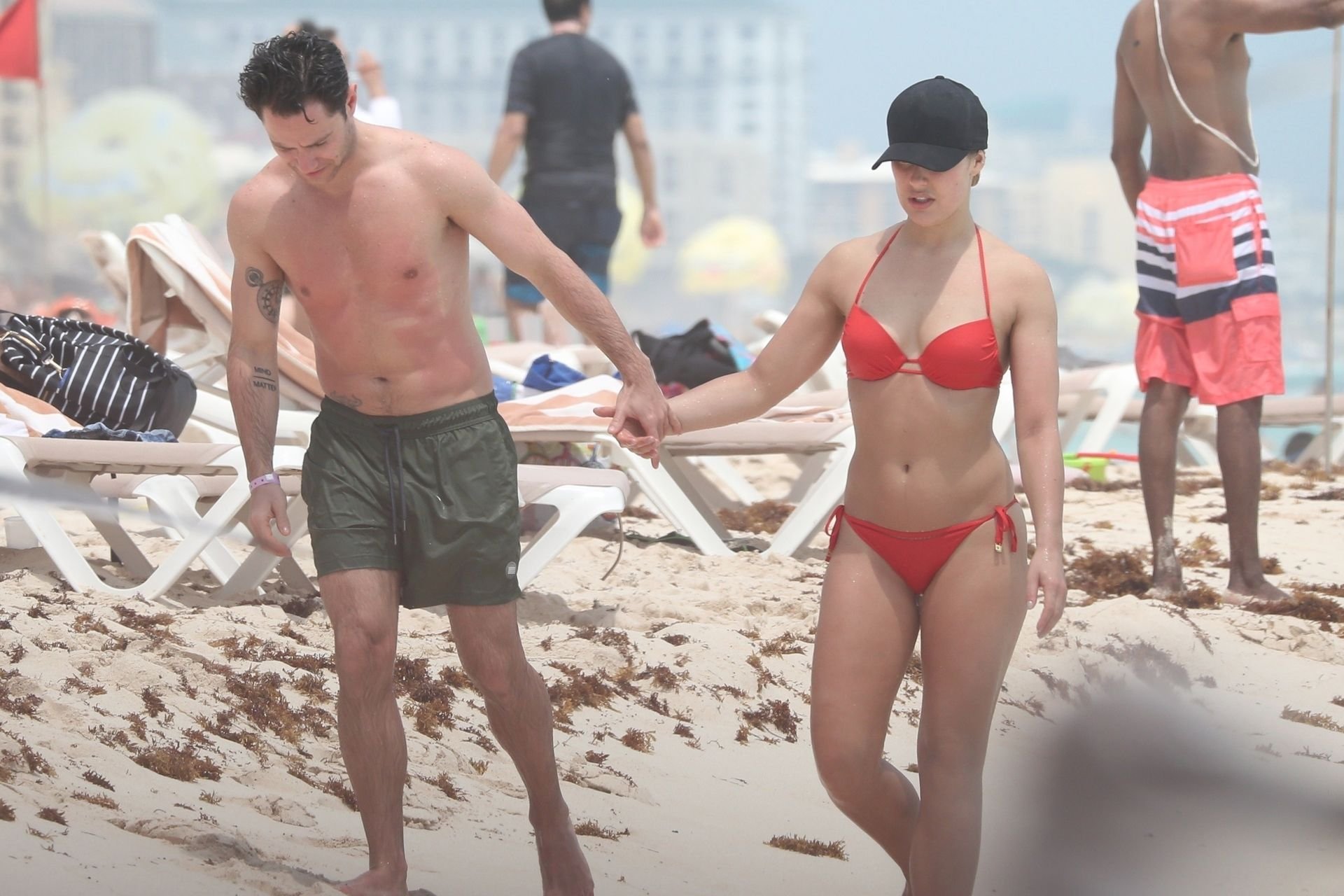 A estrela de The Fappening Emma Slater e Sasha Farber foram vistos de férias em Cancun, 24/03/2019. Ambos os dançarinos dão um mergulho na água e depois fazem uma caminhada romântica na praia. Emma exibe seu bumbum e seios em um biquíni vermelho quente.