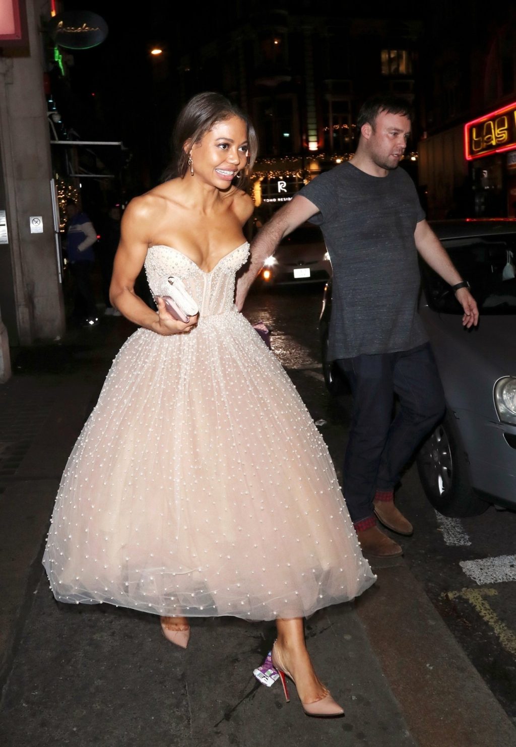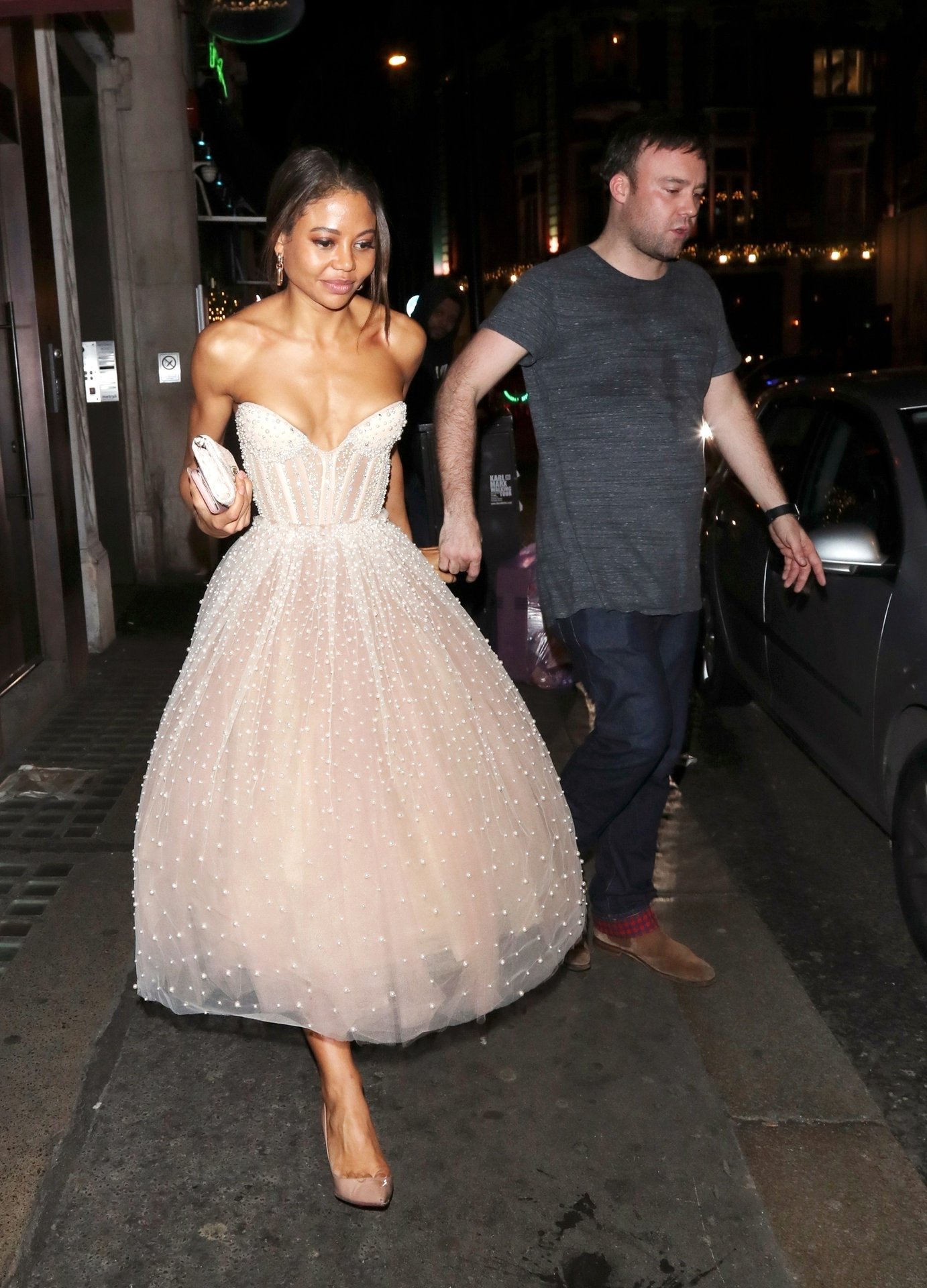 Emma Thynn (Viscondessa de Weymouth) foi vista com um lindo vestido ombro a ombro em uma noite fora ao sair do Freedom em Soho, Londres, 12/09/2019.