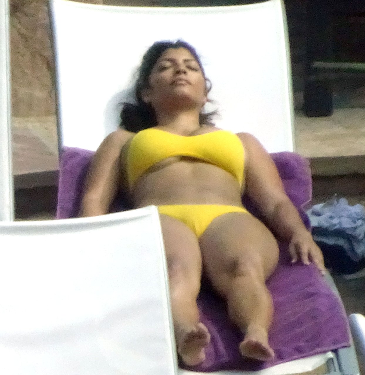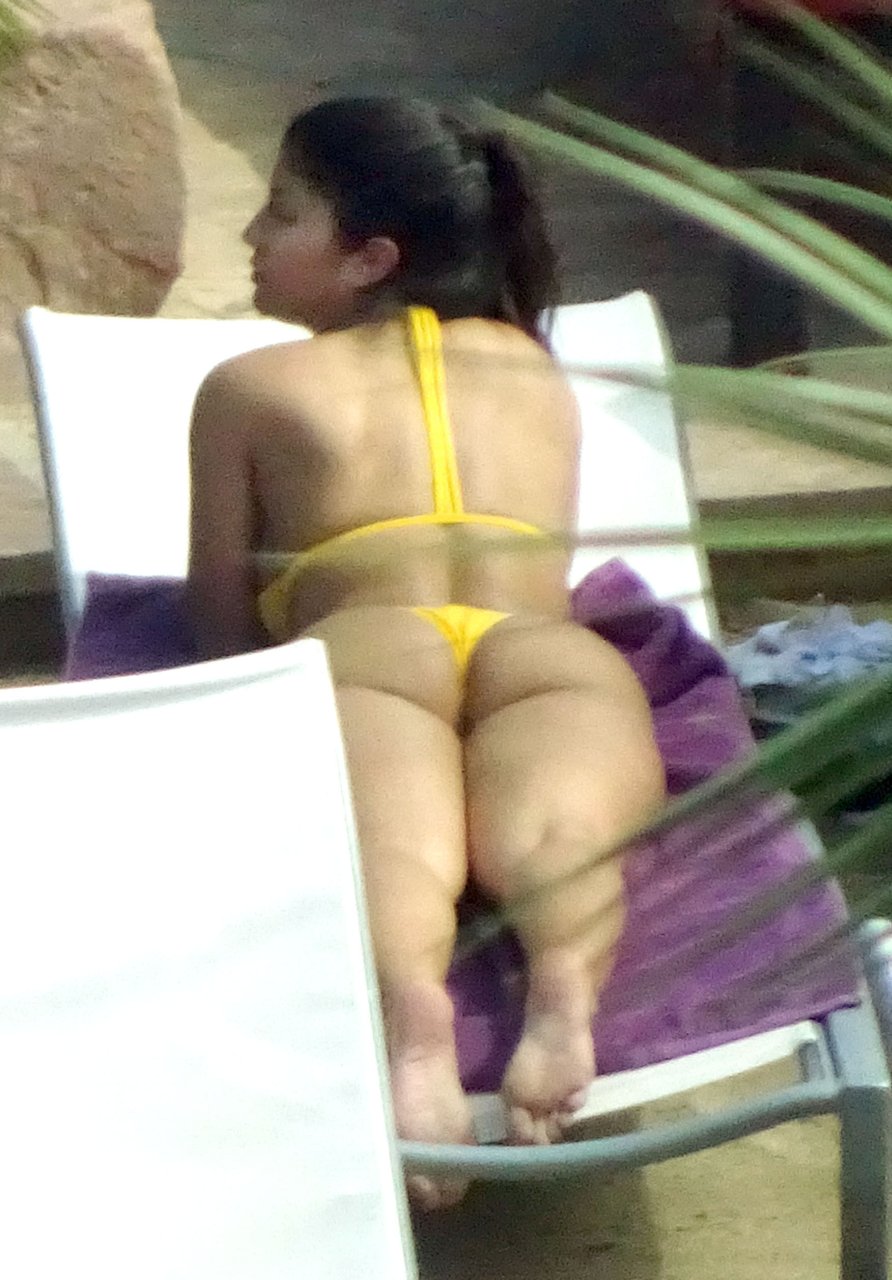 Atriz mexicana (iCarly, 90210) e modelo Erika Medina exibe suas curvas super quentes enquanto mal contém seus atributos em um biquíni amarelo vibrante durante férias em Las Vegas, 28/06/2018. A estrela latina de 33 anos estava relaxando sob o sol quente em seu hotel de luxo na Cidade do Pecado, enquanto alguns dos outros hóspedes da piscina não conseguiam tirar os olhos dela enquanto ela se bronzeava no calor acima de 100 graus.