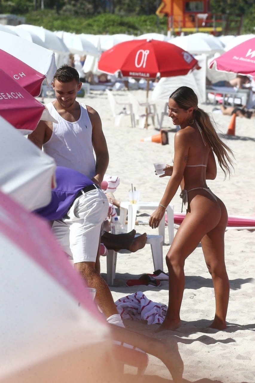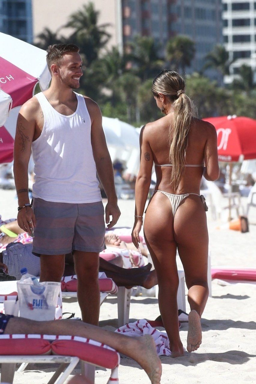 A estrela das redes sociais Erika Wheaton fica atrevida enquanto relaxa com seu namorado de férias em Miami Beach, 11/05/2019. A modelo do Instagram de 21 anos usava um biquíni fio dental minúsculo para aproveitar o sol e brincar nas águas quentes de Miami.