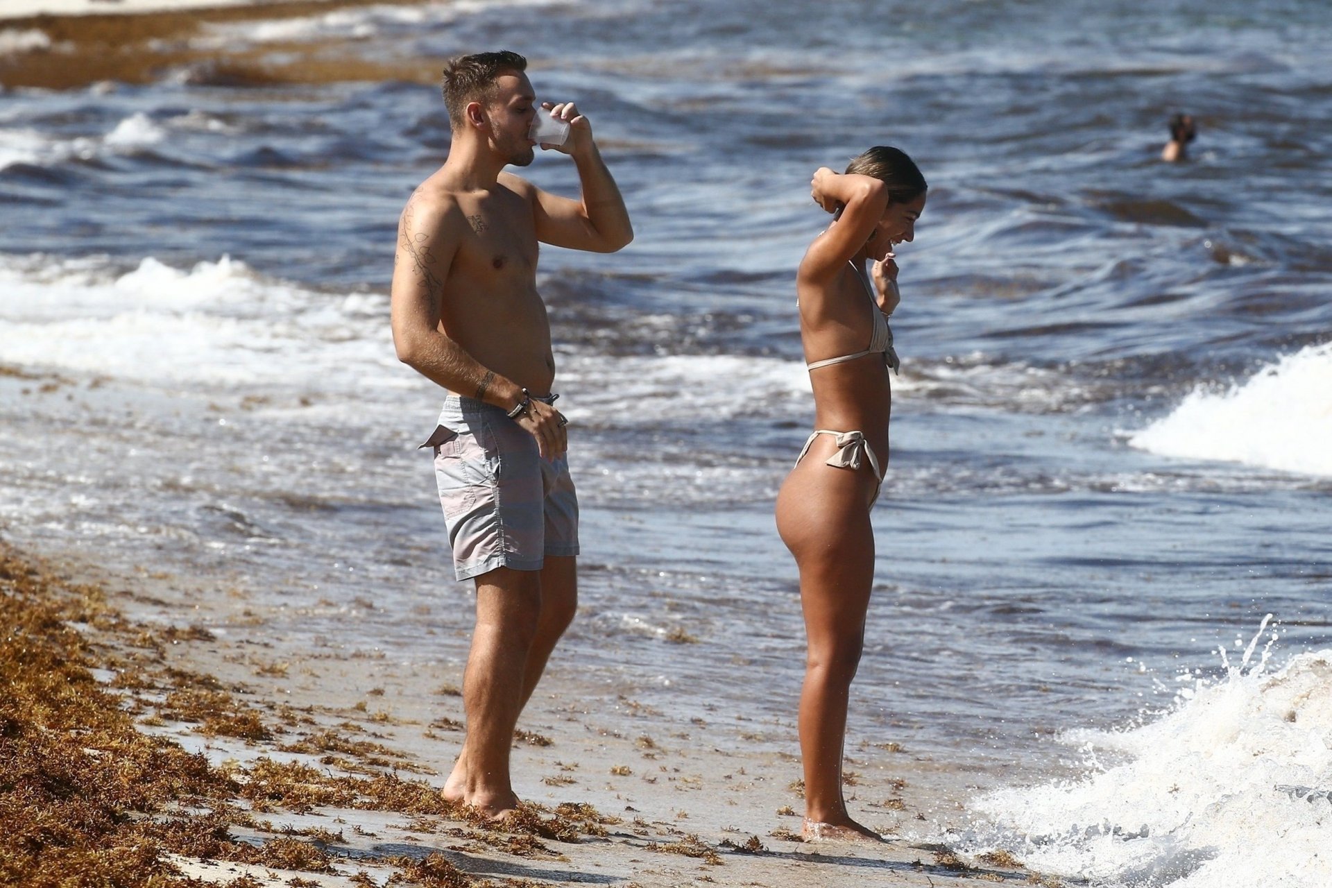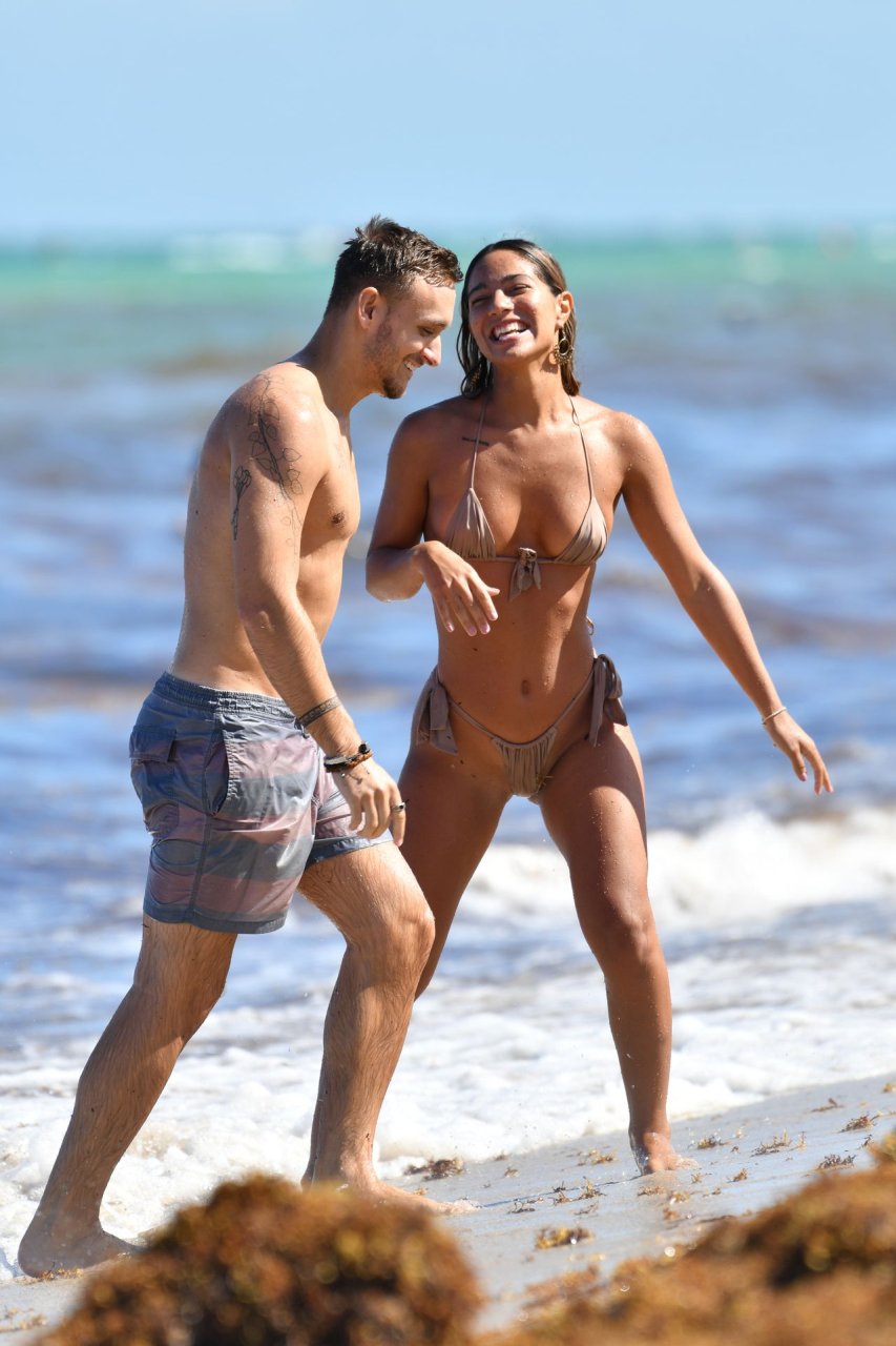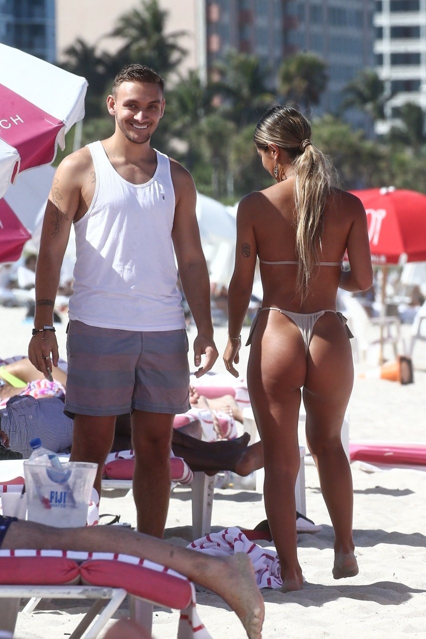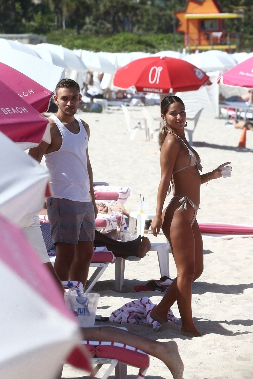 A estrela das redes sociais Erika Wheaton fica atrevida enquanto relaxa com seu namorado de férias em Miami Beach, 11/05/2019. A modelo do Instagram de 21 anos usava um biquíni fio dental minúsculo para aproveitar o sol e brincar nas águas quentes de Miami.