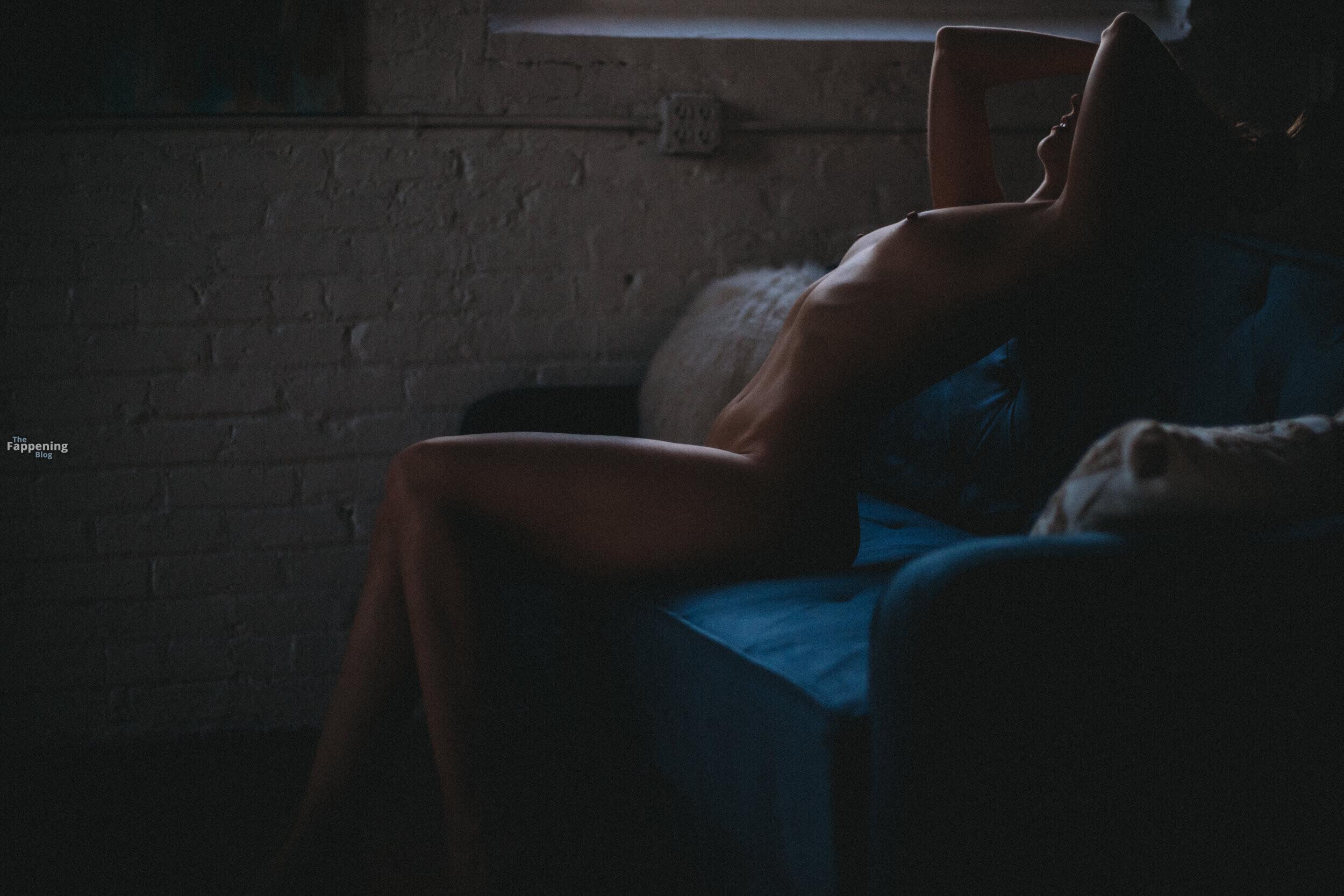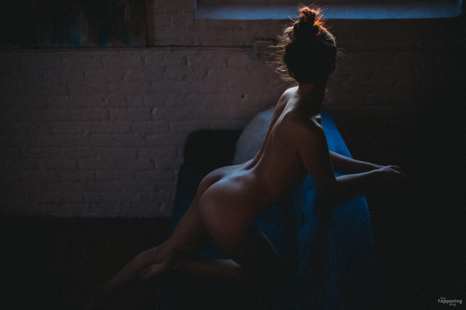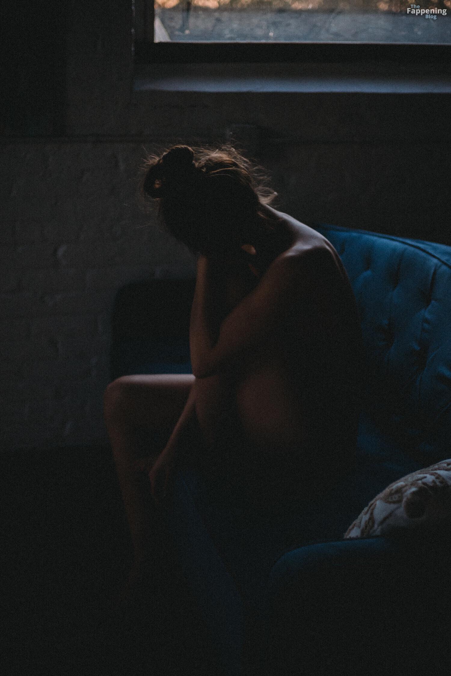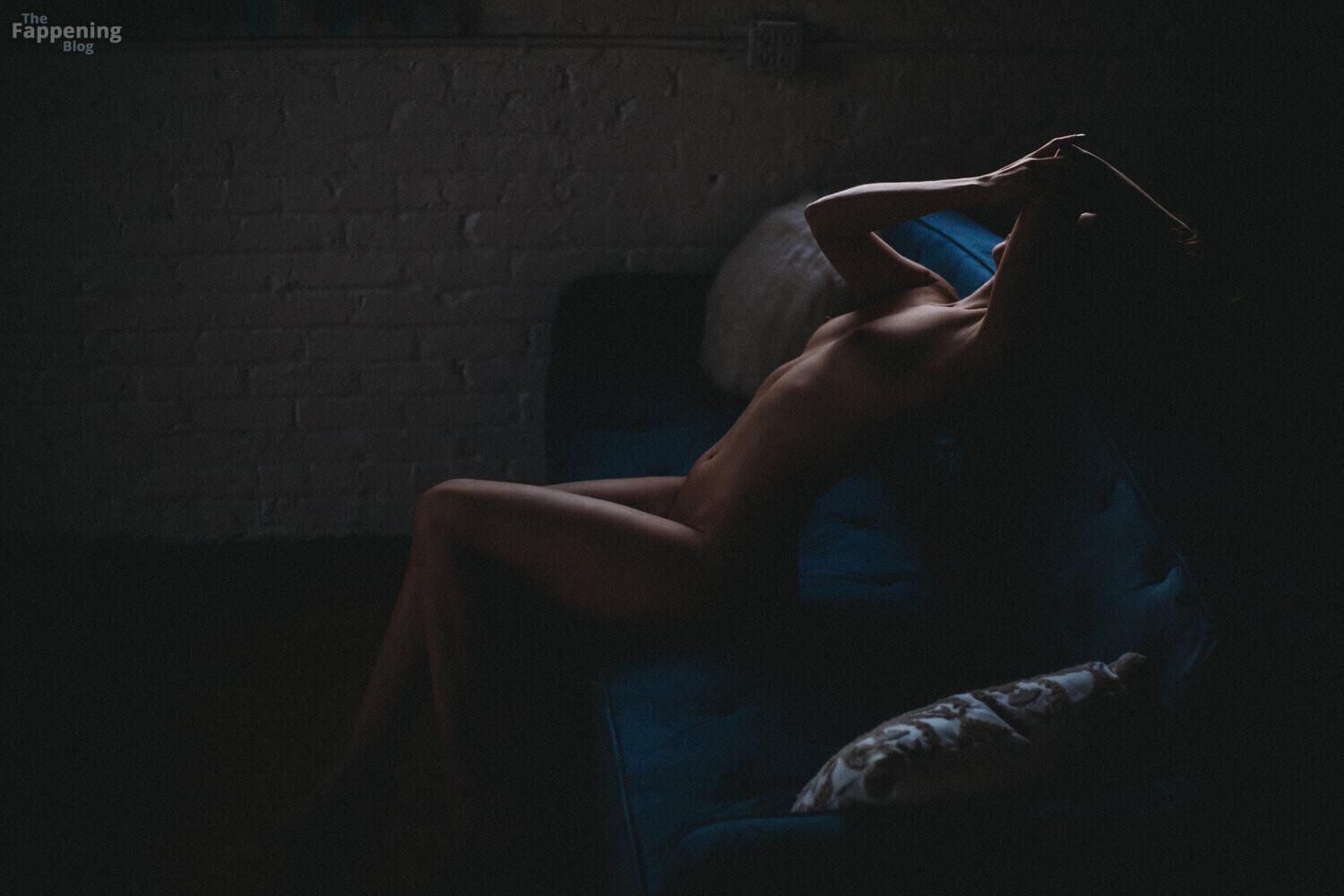 Atriz, modelo e dançarina Eugenia Gonzales exibe sua bela silhueta em um ensaio nu escuro.
