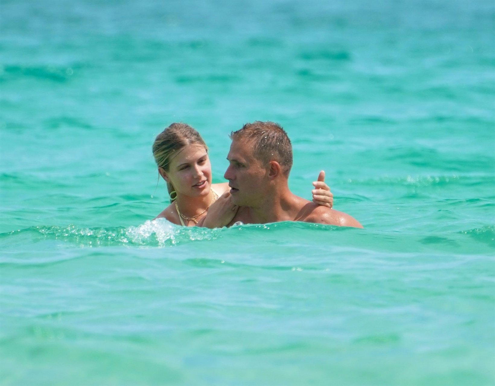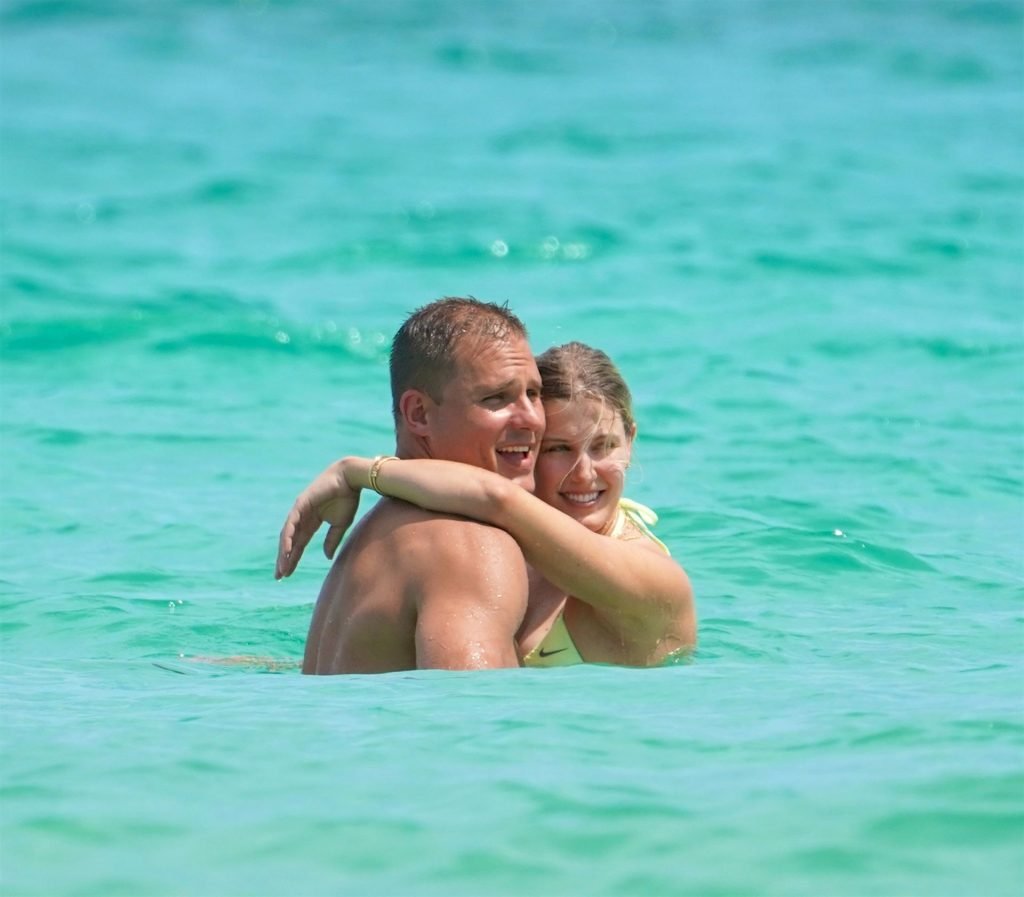O atraente Connor, irmão da supermodelo Hannah Davis, exibiu seu físico definido enquanto o casal brincava nas ondas e tirava selfies fofas em uma espreguiçadeira. WTF lol