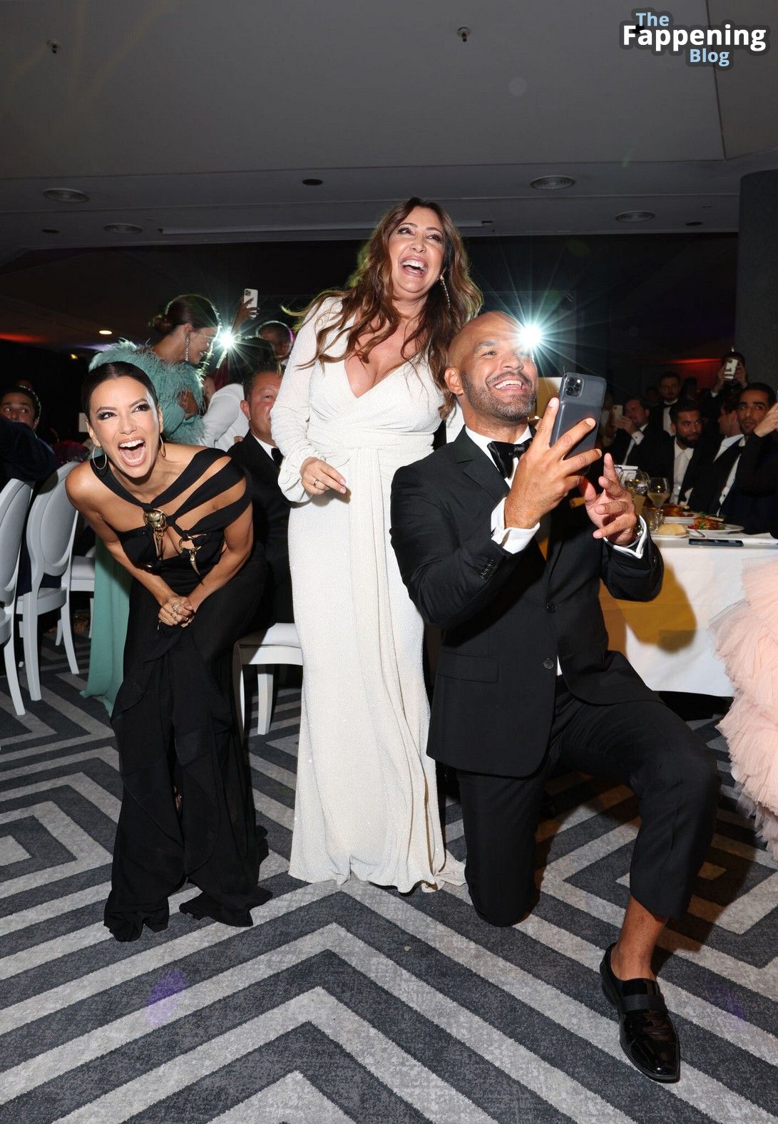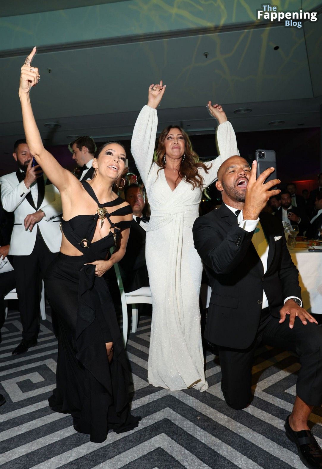 Ela chegou com um vestido preto com muitos recortes, nós e amarrações, criando um clima descontraído – ela riu a noite toda e compartilhou histórias dos festivais anteriores. Uma delas: seu primeiro tapete vermelho na Croisette, com um vestido dourado deslumbrante que ela comprou por 50 dólares, e mesmo assim chamou atenção. E honestamente, toda aparição de Longoria nessas festas é um momento.