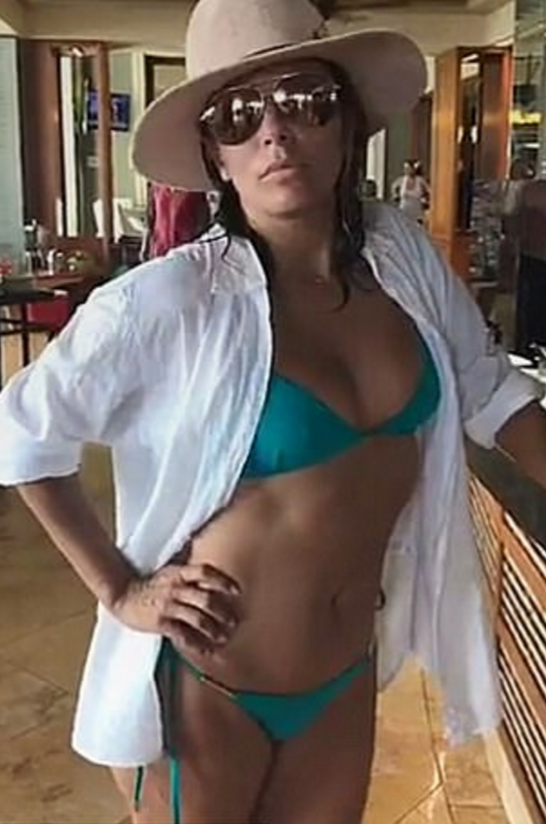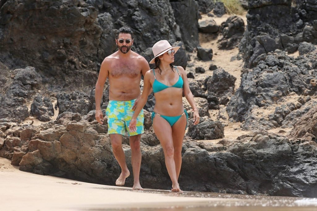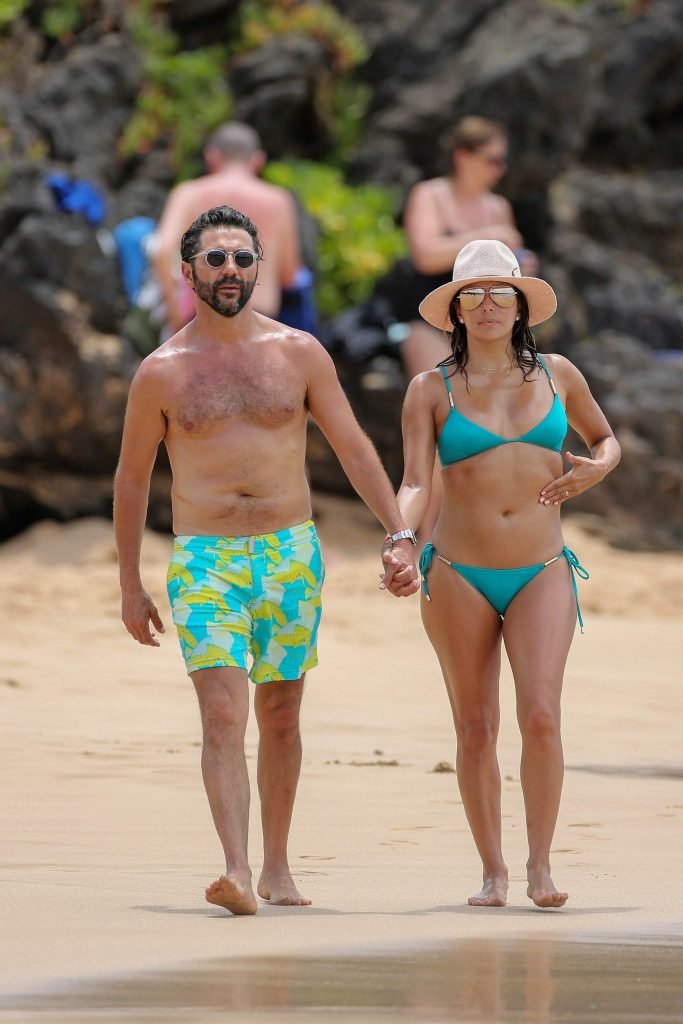 Eva Longoria usa um biquíni turquesa na praia em Miami, 20/04/2017. Eva Longoria é uma atriz americana (Decline and Fall, 2017), diretora, produtora, ativista, empresária. Idade – 42 anos (nascida em 15 de março de 1975).