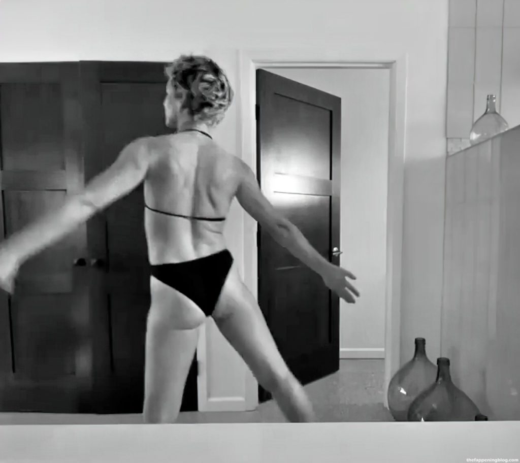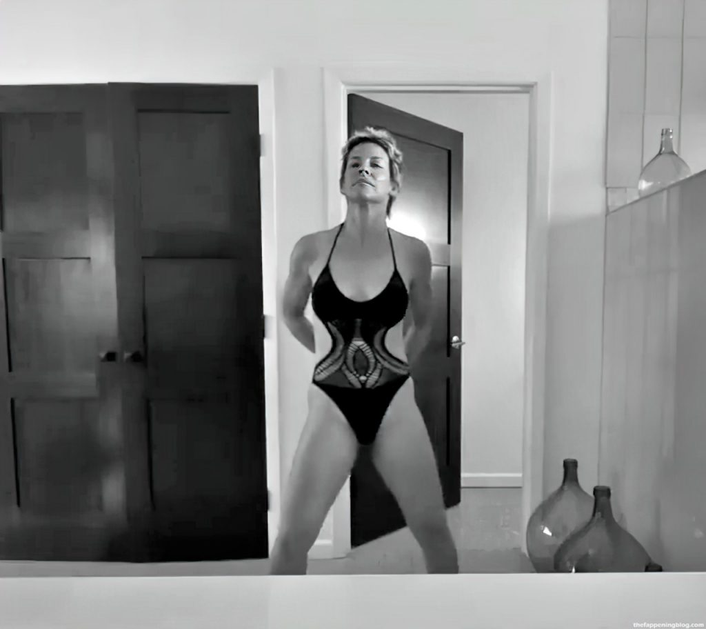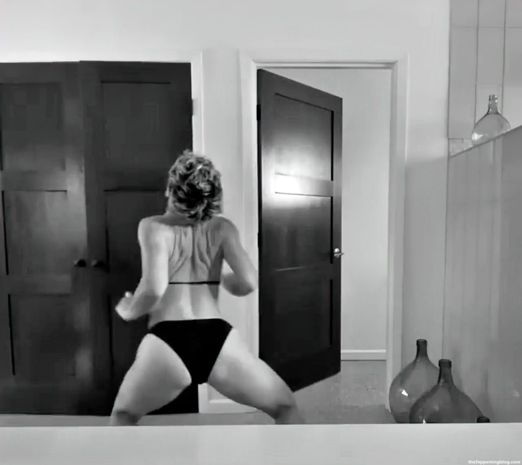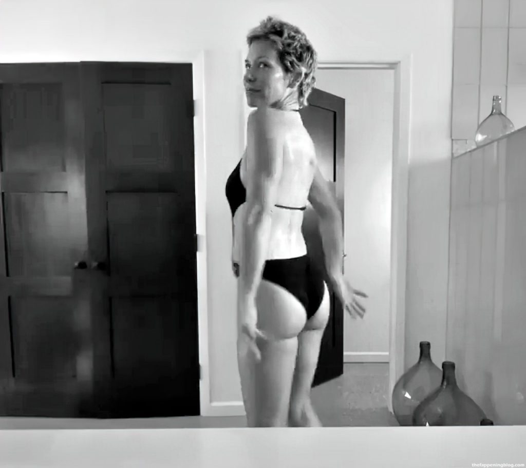 Corpo bonito para 41 anos. Especialmente o bumbum dela. Ela precisa deixar o cabelo crescer novamente e abandonar essa cor. Cabelo mais longo e a cor antiga fazem o rosto dela parecer menos severo.