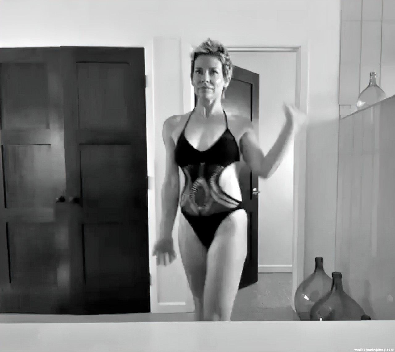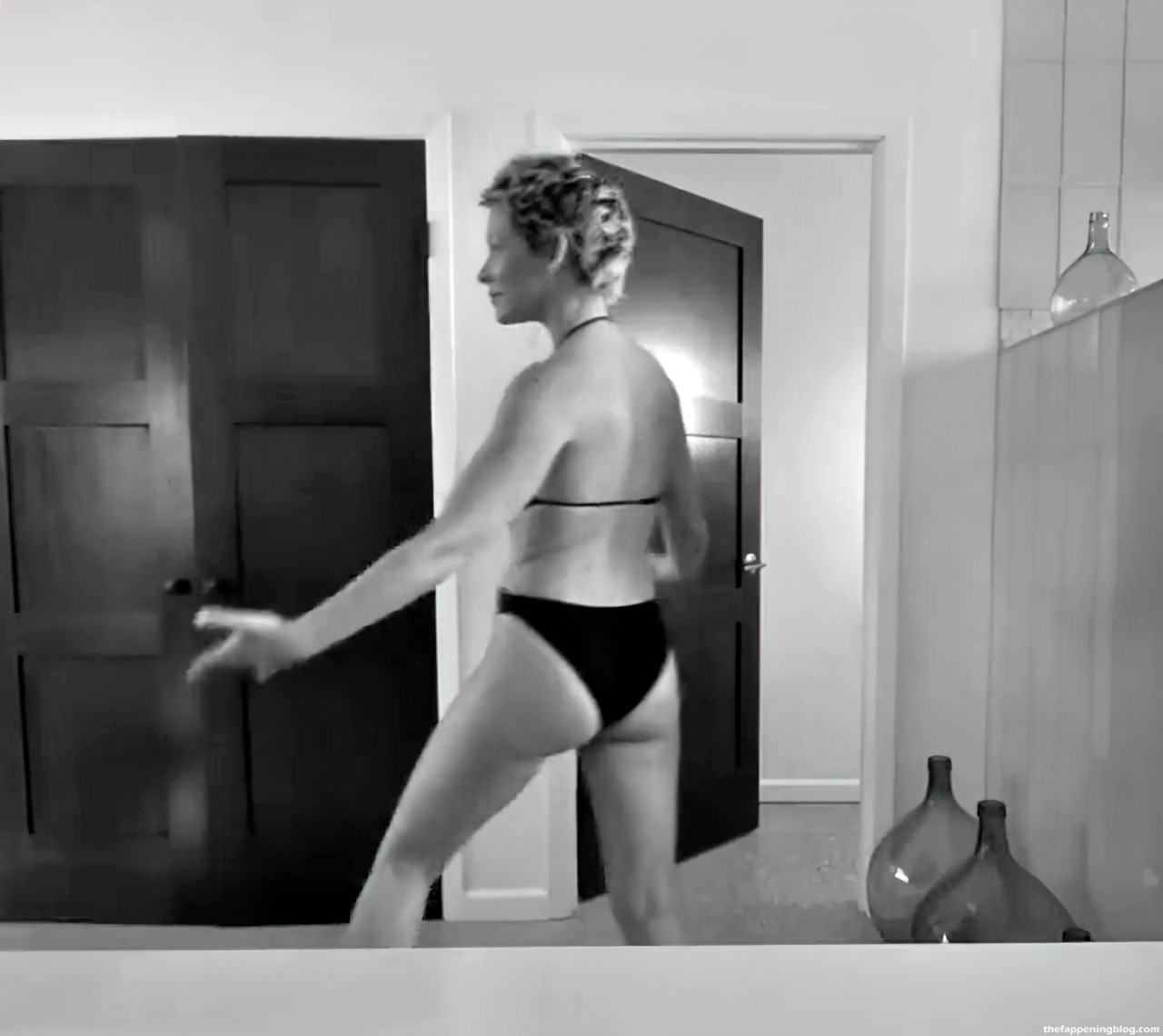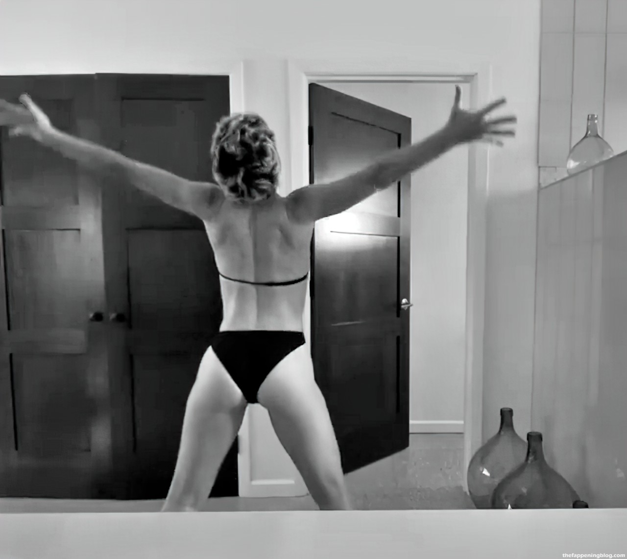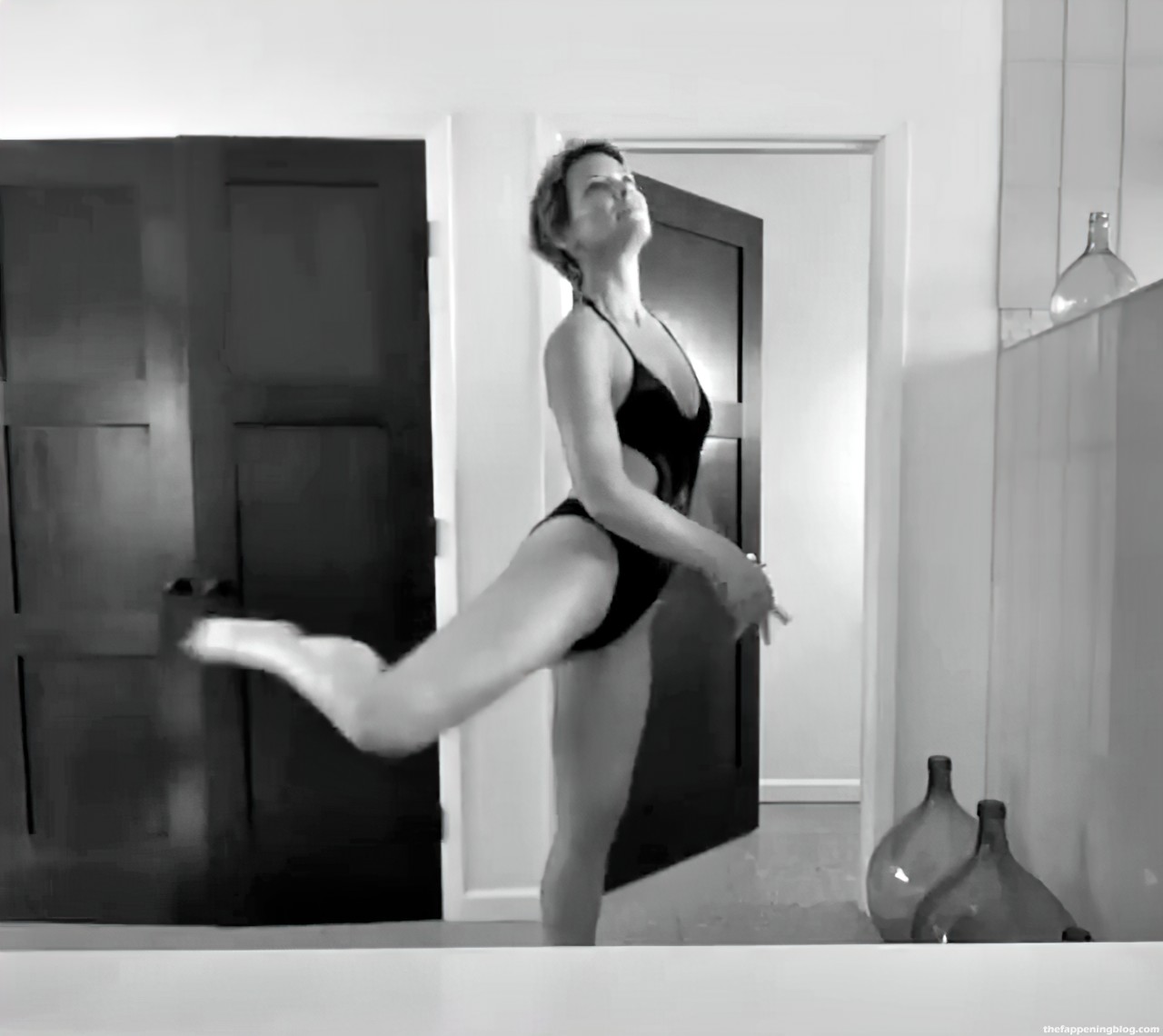 Corpo bonito para 41 anos. Especialmente o bumbum dela. Ela precisa deixar o cabelo crescer novamente e abandonar essa cor. Cabelo mais longo e a cor antiga fazem o rosto dela parecer menos severo.