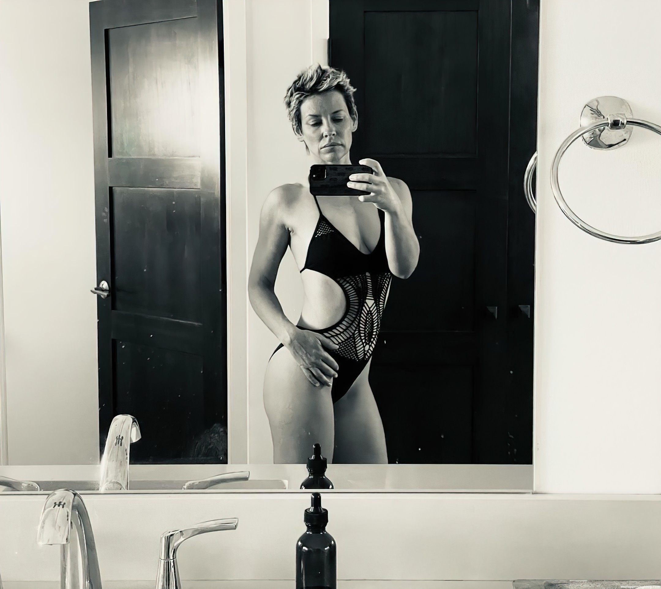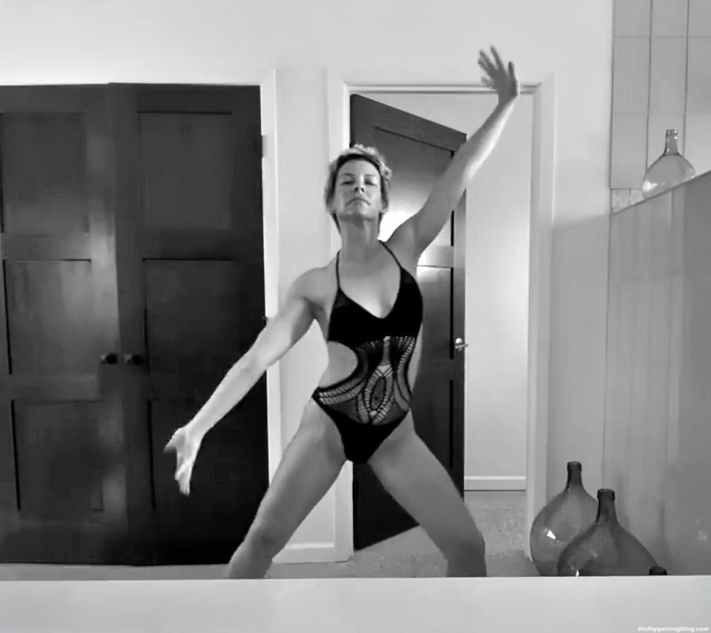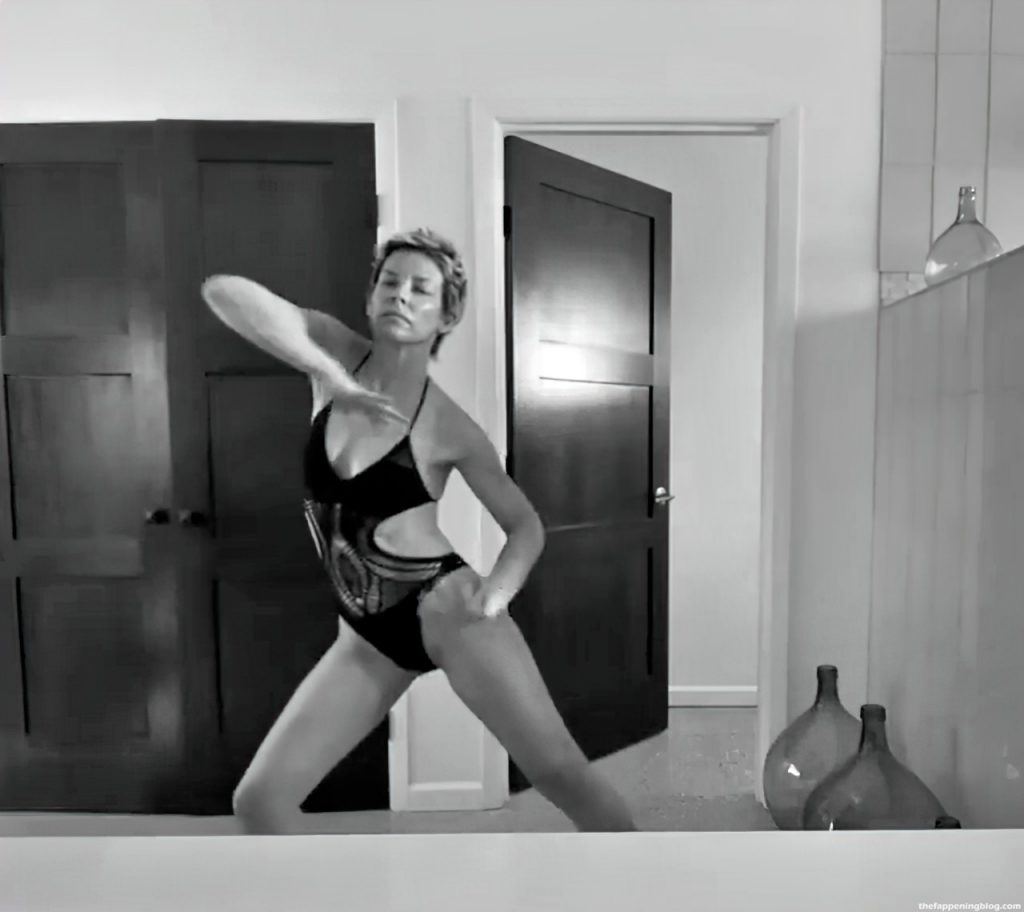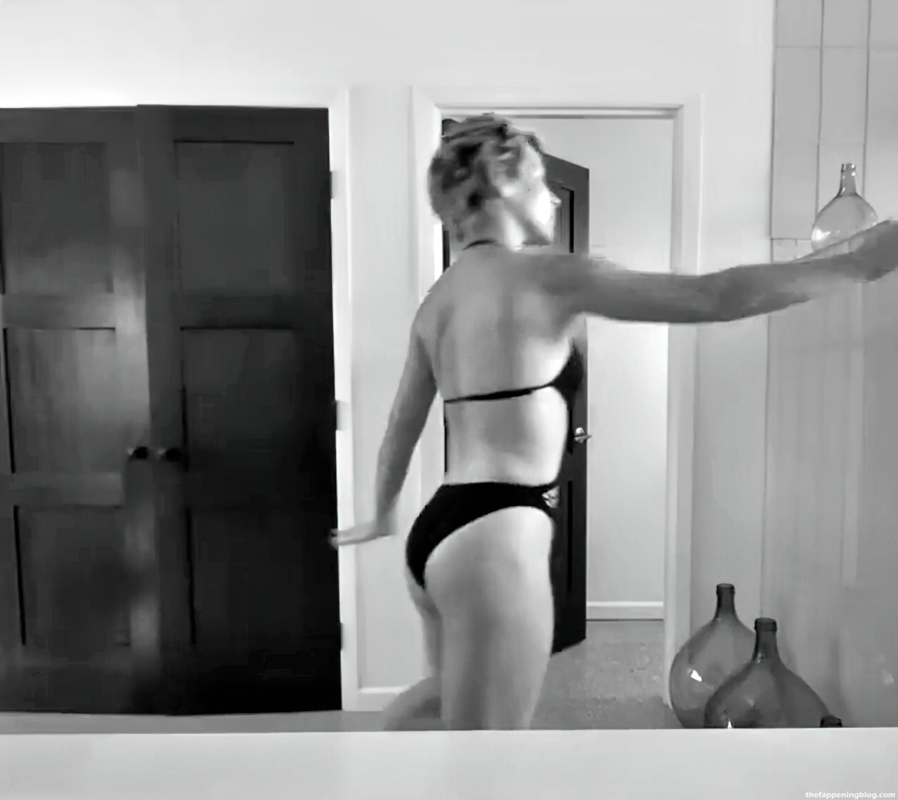 Corpo bonito para 41 anos. Especialmente o bumbum dela. Ela precisa deixar o cabelo crescer novamente e abandonar essa cor. Cabelo mais longo e a cor antiga fazem o rosto dela parecer menos severo.