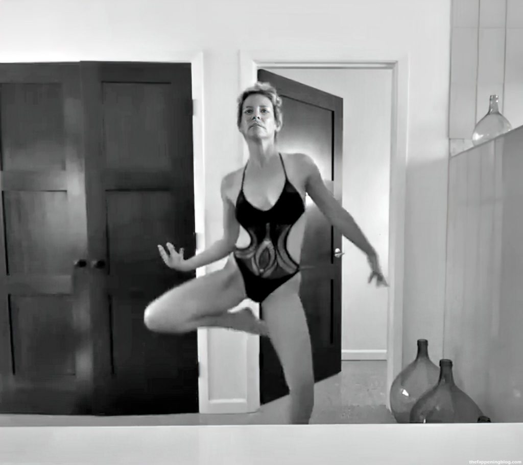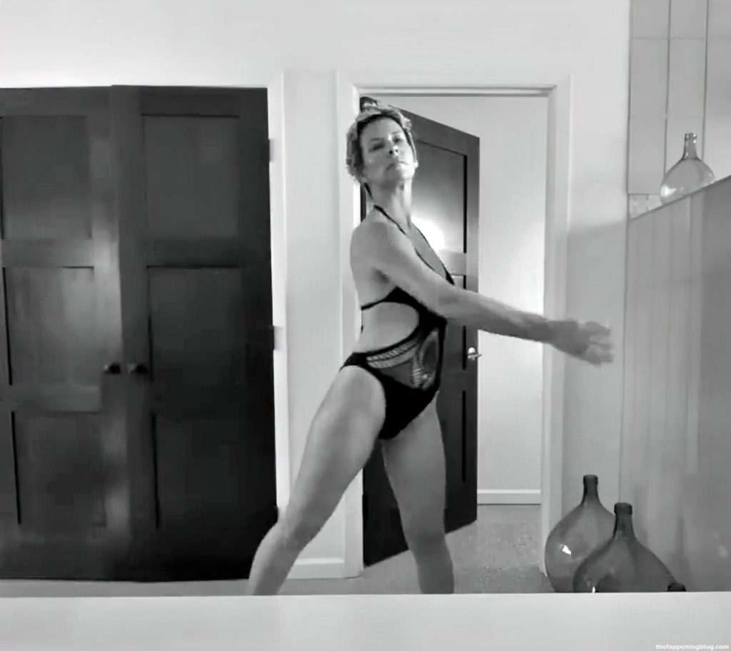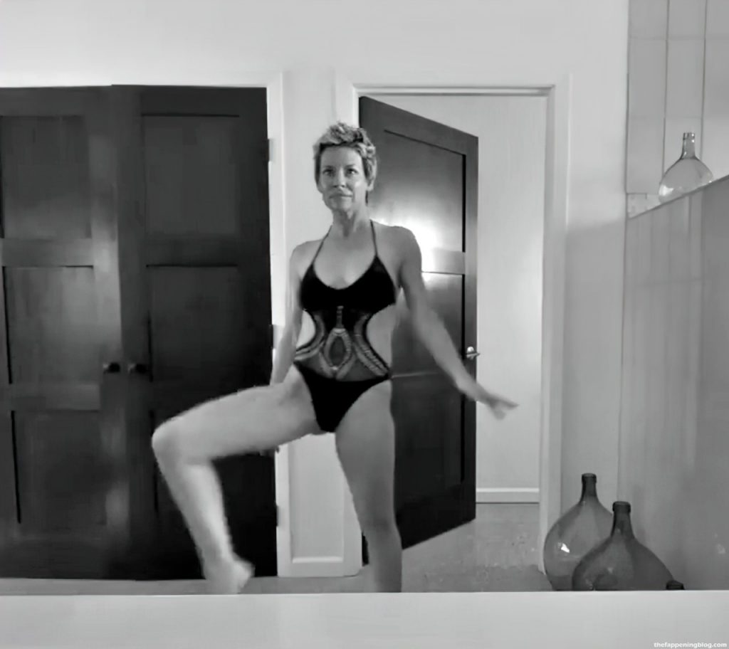 Atriz Evangeline Lilly exibe sua figura deslumbrante, dançando em um maiô de uma peça para seus seguidores no Instagram, 16/06/2021.