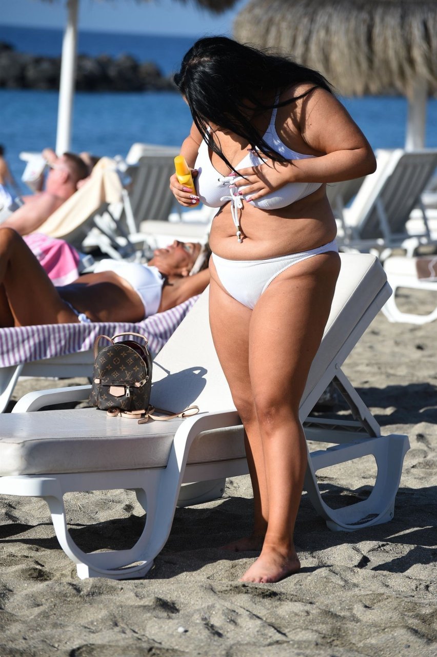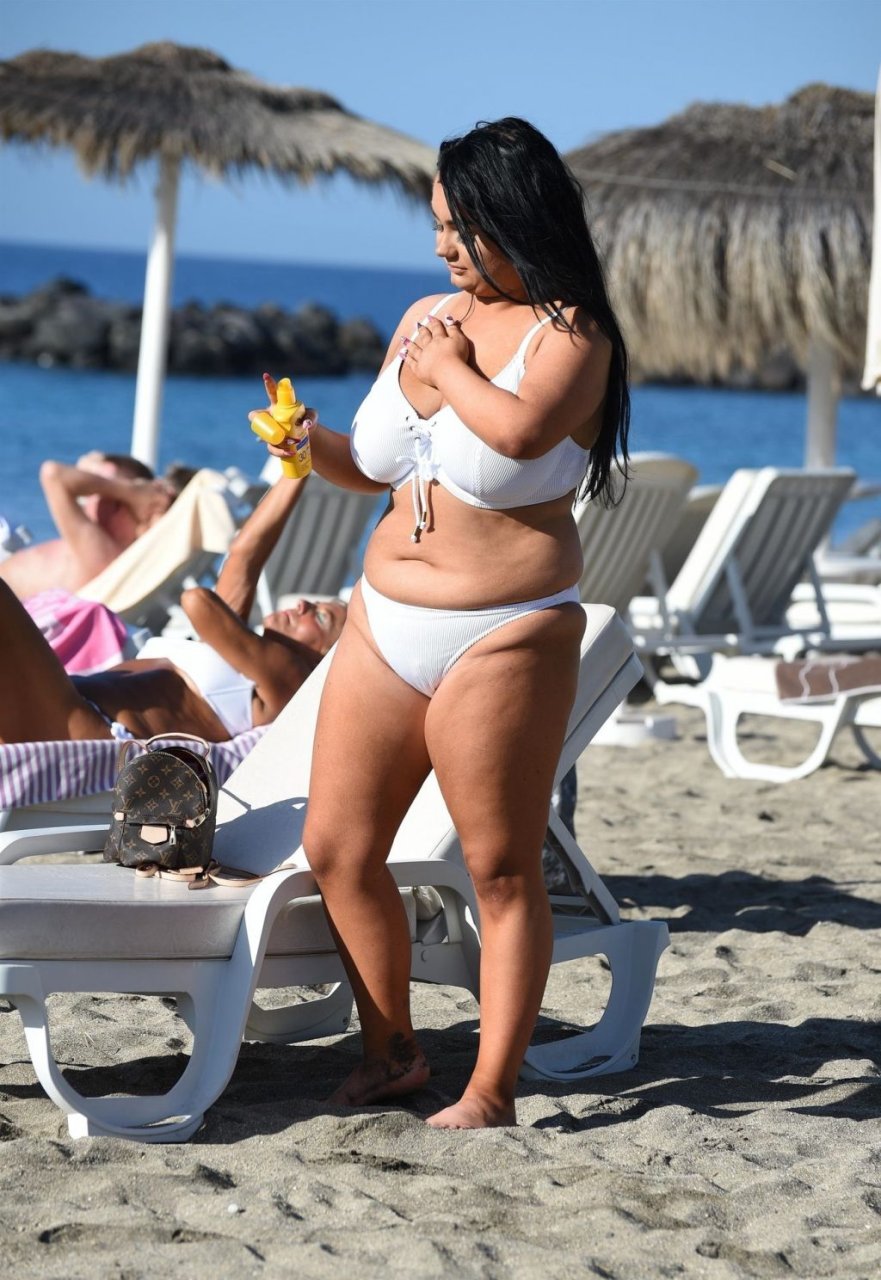 A estrela de “Geordie Shore” Faith Mullen foi vista em um descanso ensolarado em Tenerife (2018). A estrela tamanho 16 recentemente admitiu que está feliz com seu peso e nunca passaria por cirurgia, apesar das constantes provocações de fãs que a chamam de “gorda”.