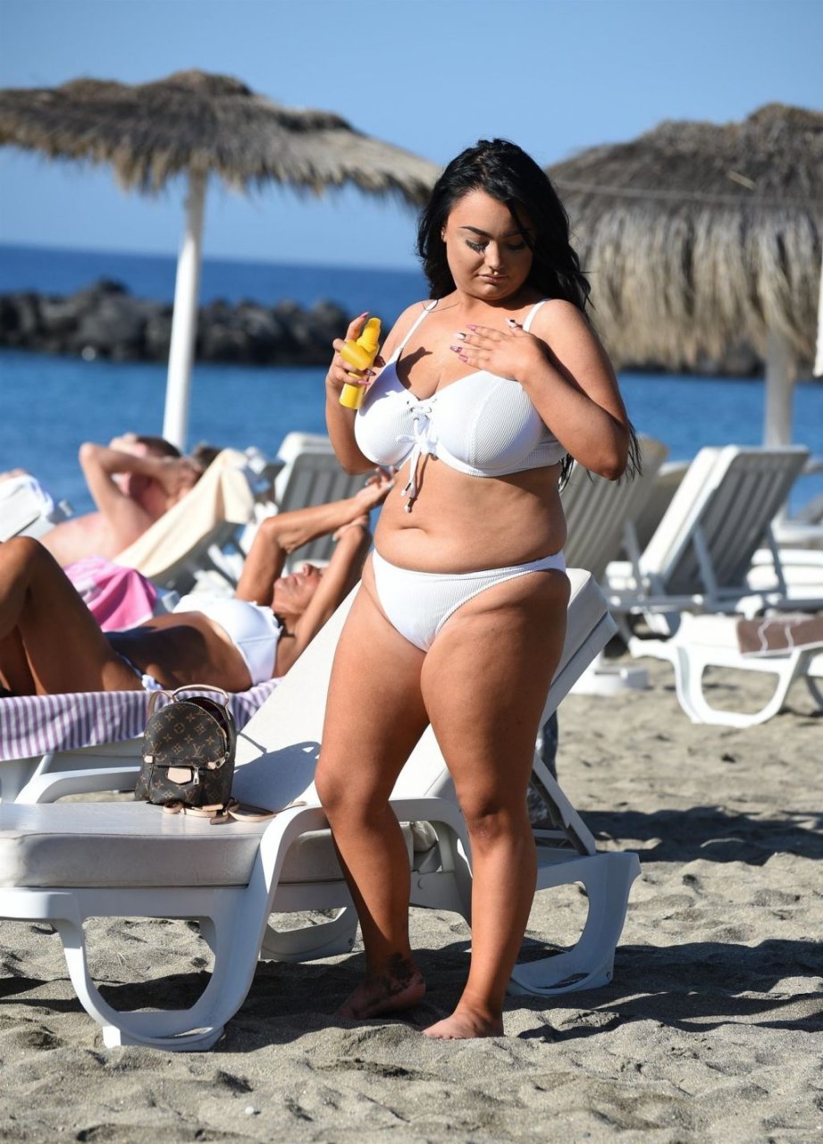 BGUK_1443039 – TENERIFE, SPAIN – *EXCLUSIVE* – Geordie Shore star Faith Mullen is seen on a sunshine break in Tenerife. The size 16 star recently admitted she is happy with her weight and would never go under the knife despite constant trolling from fans calling her “fat”.