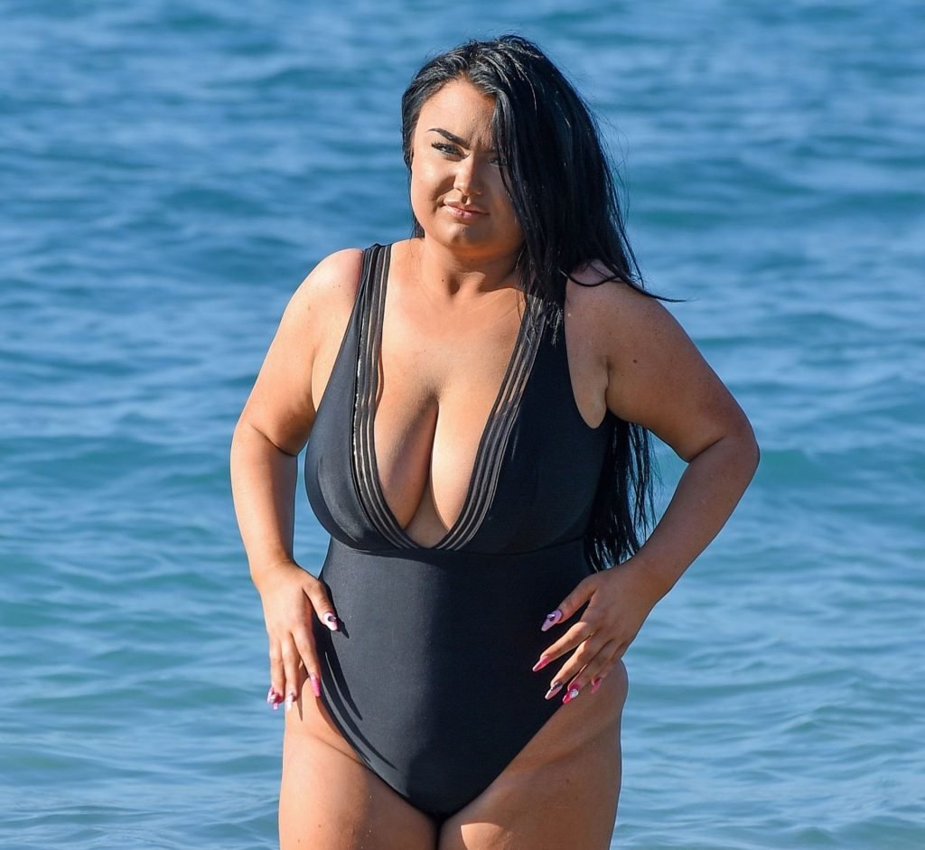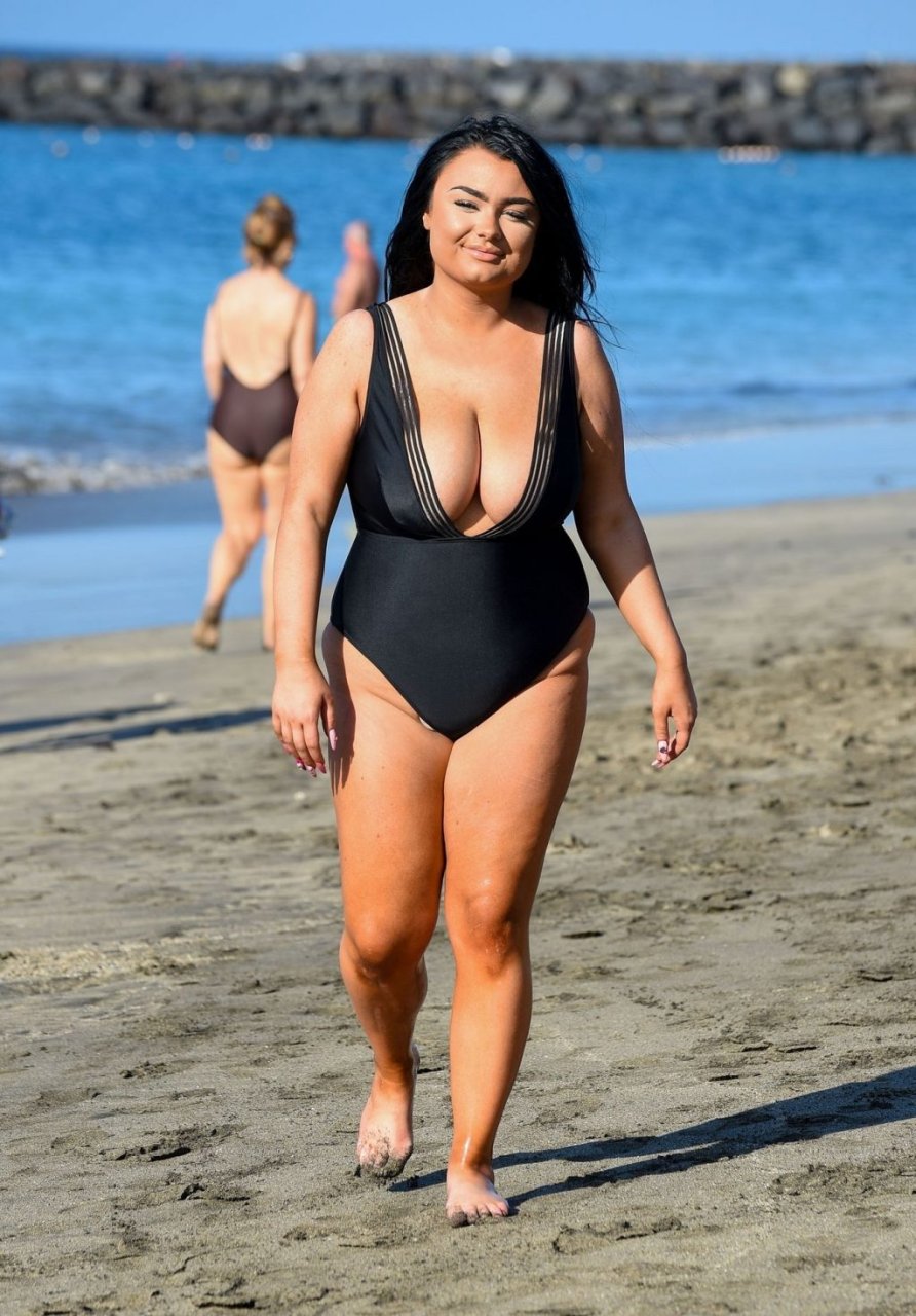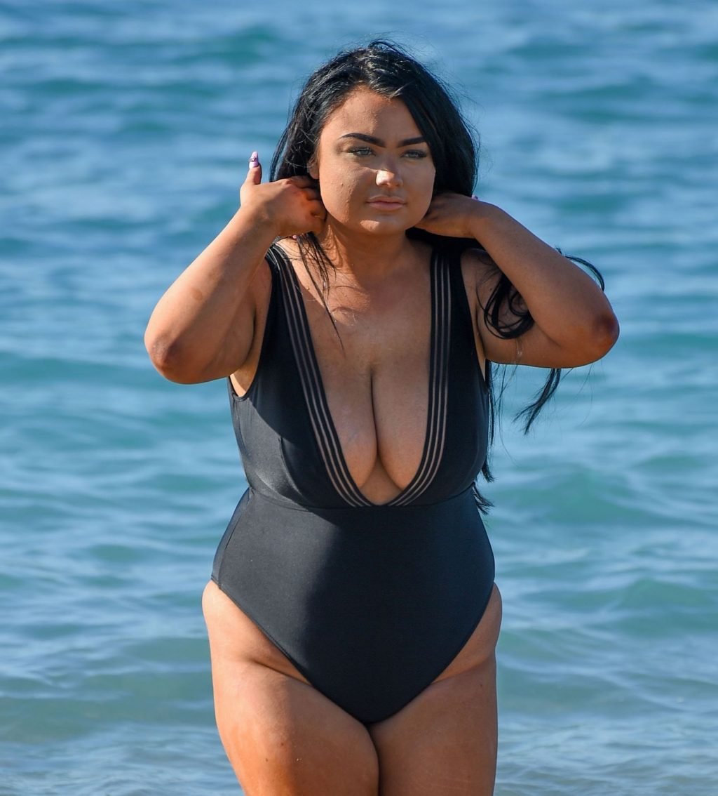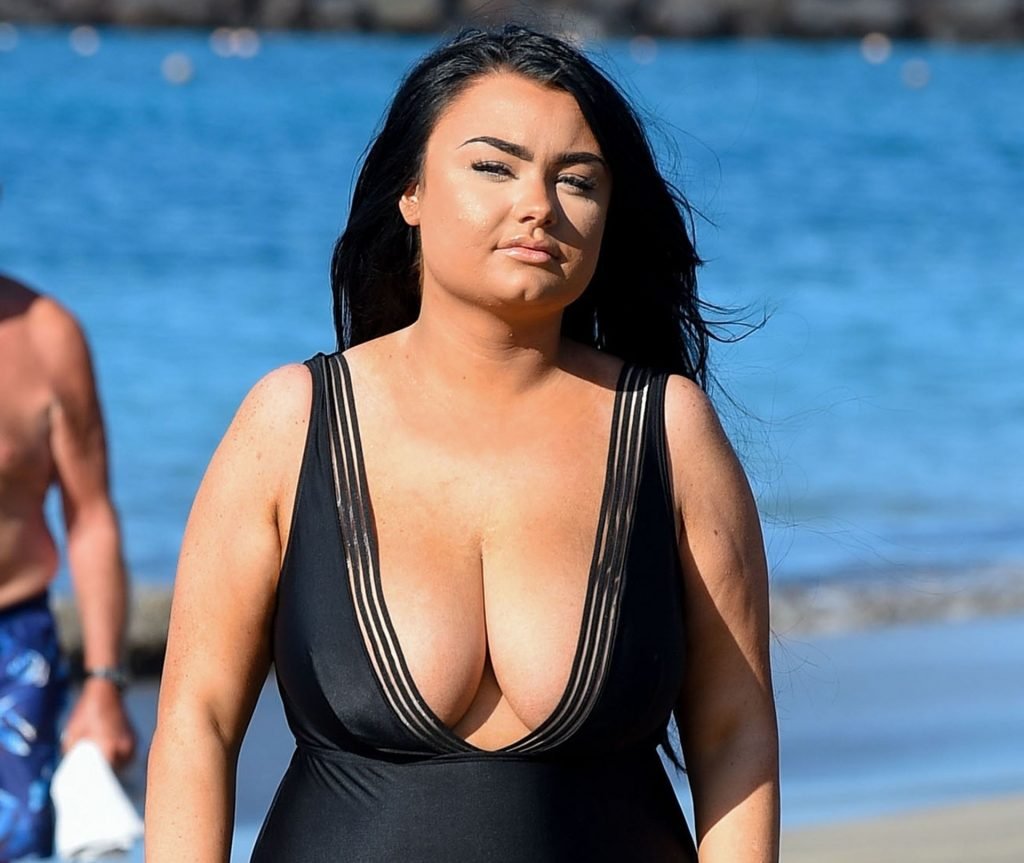 “Geordie Shore” estrela Faith Mullen é vista na praia em Tenerife após revelar na revista Closer desta semana que está feliz sendo um tamanho 14.