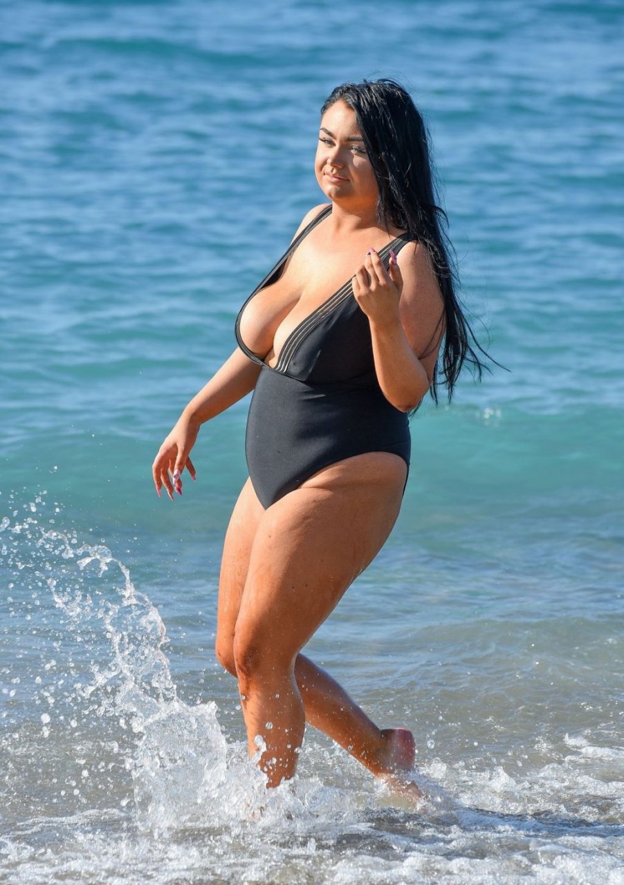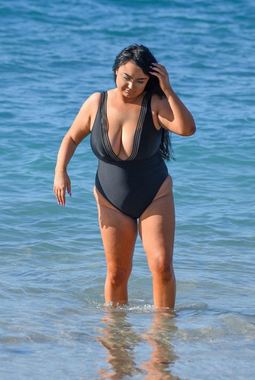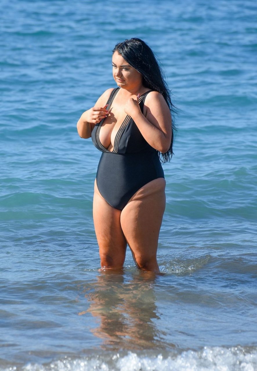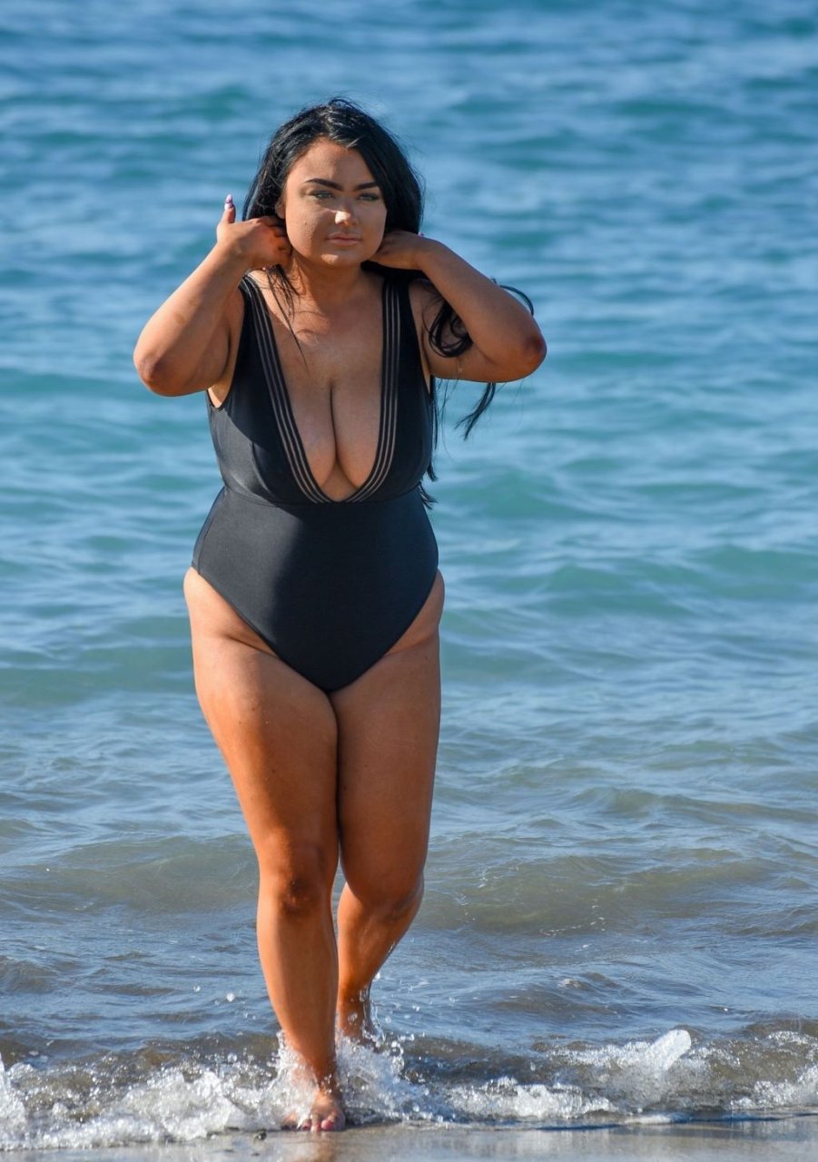 “Geordie Shore” estrela Faith Mullen é vista na praia em Tenerife após revelar na revista Closer desta semana que está feliz sendo um tamanho 14.