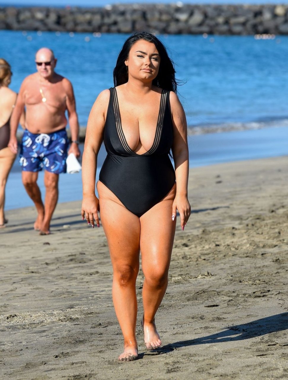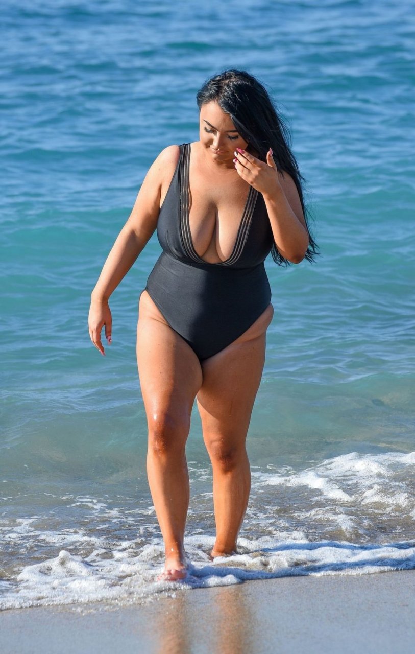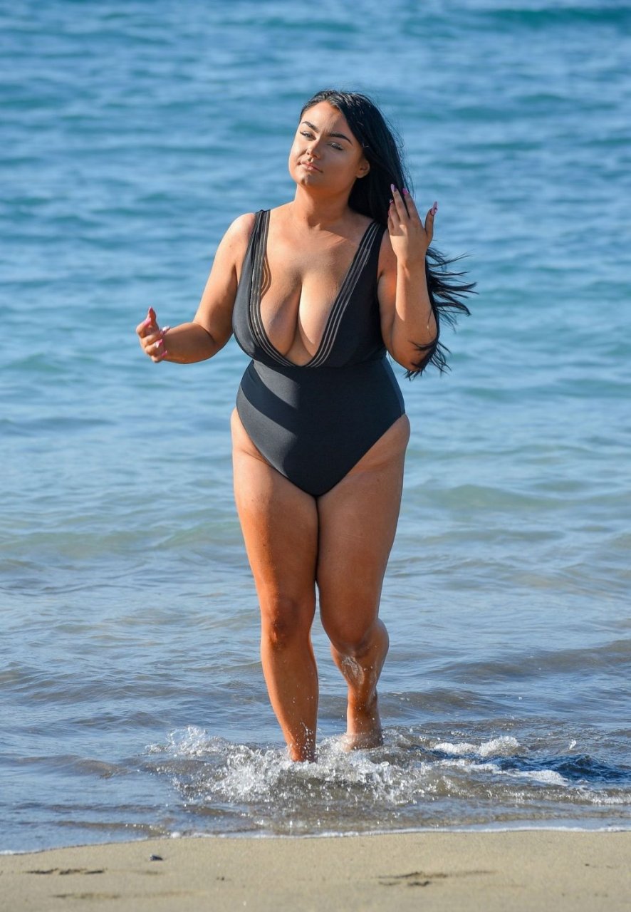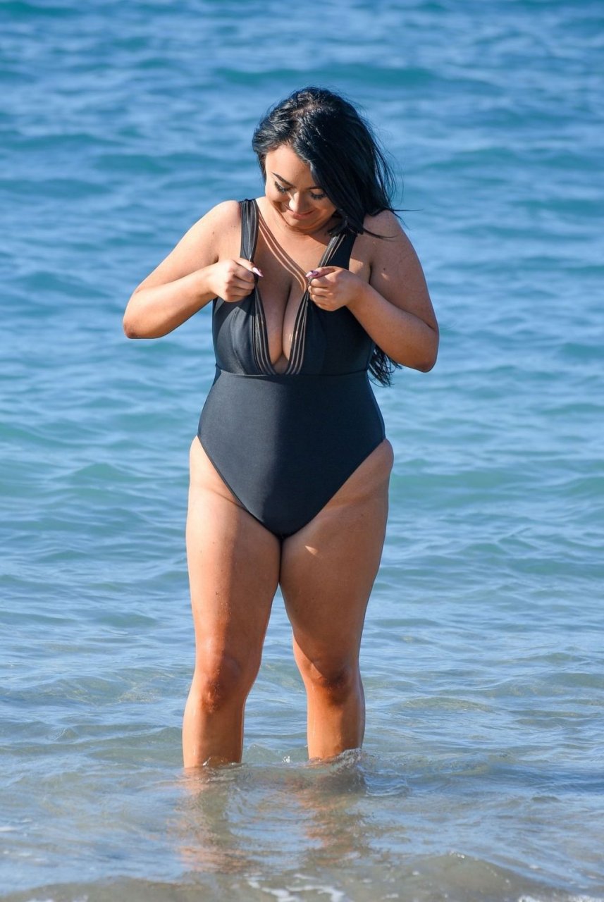 “Geordie Shore” estrela Faith Mullen é vista na praia em Tenerife após revelar na revista Closer desta semana que está feliz sendo um tamanho 14.