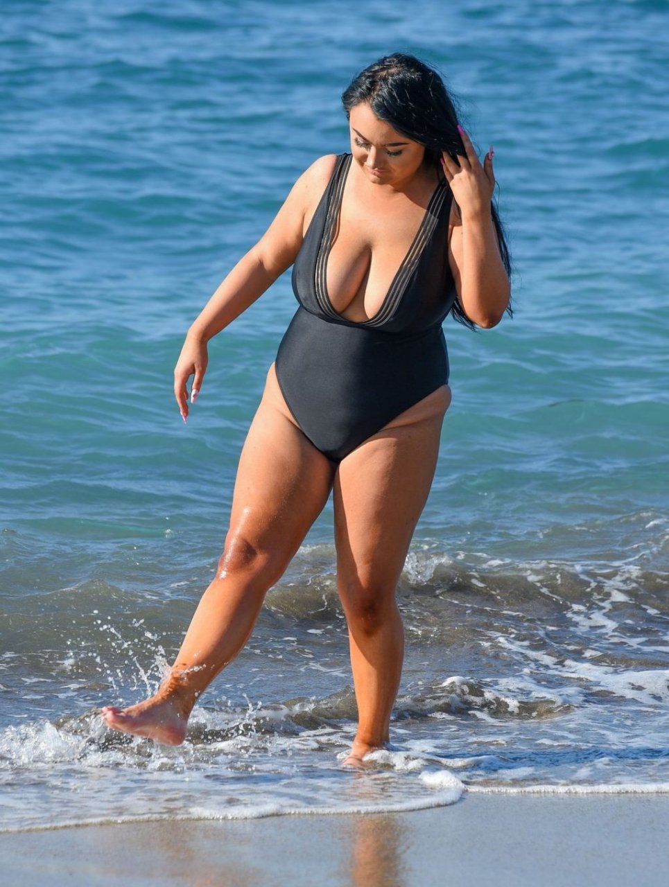 A estrela da realidade publicou que se sente mais confiante com menos roupas e também que foi chamada de gorda pela primeira vez aos 3 anos de idade. Faith é vista em um maiô preto que destaca suas curvas enquanto brinca no mar.