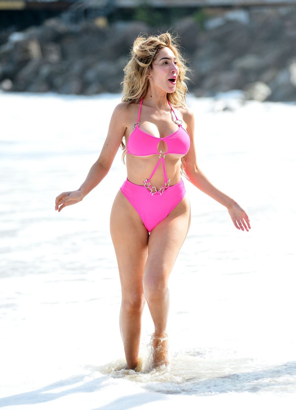 Farrah Abraham exibe seu incrível corpo de biquíni enquanto comemora seu aniversário com a amiga Frenchy Morgan e sua filha Sophia em Malibu, 31/05/2020.