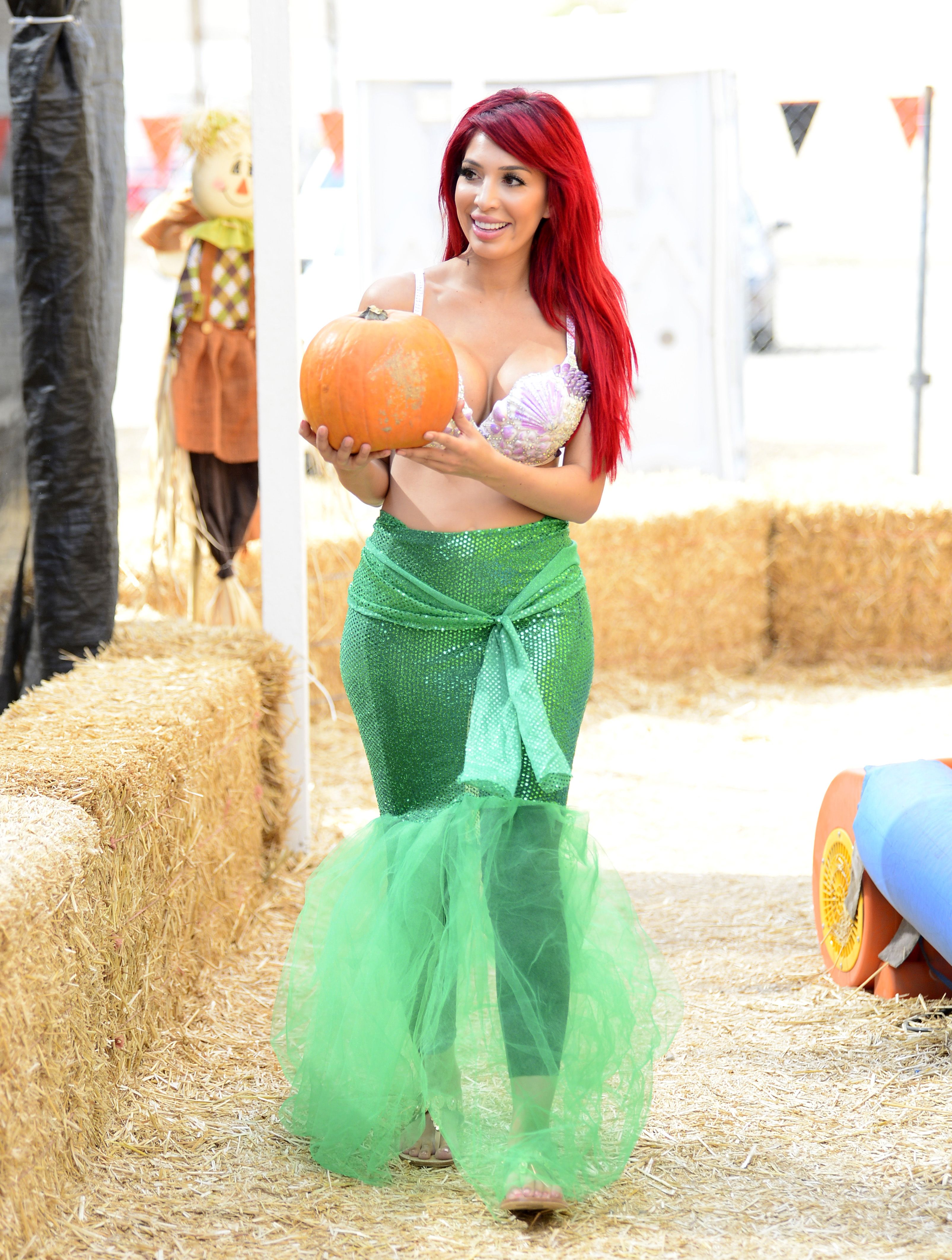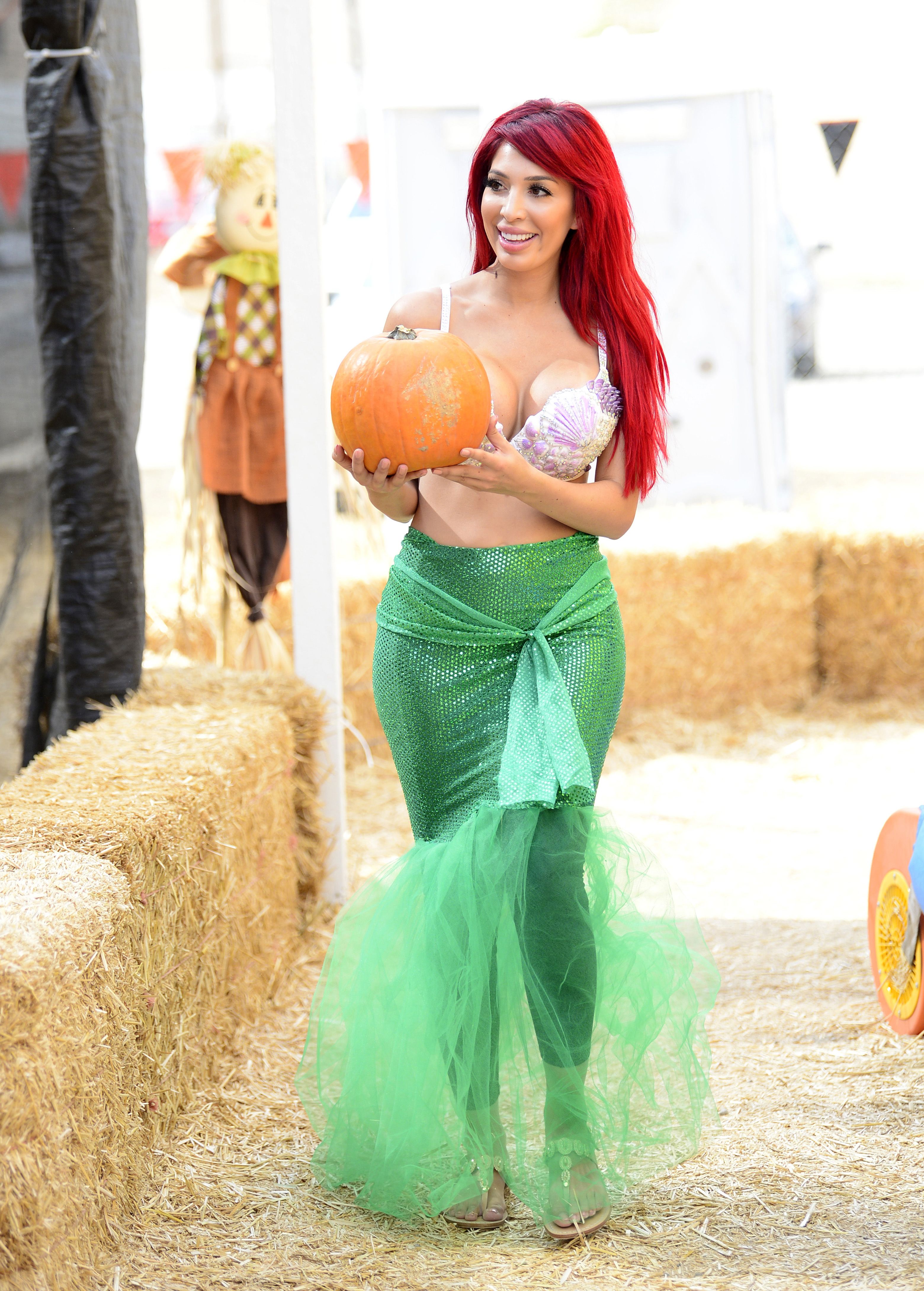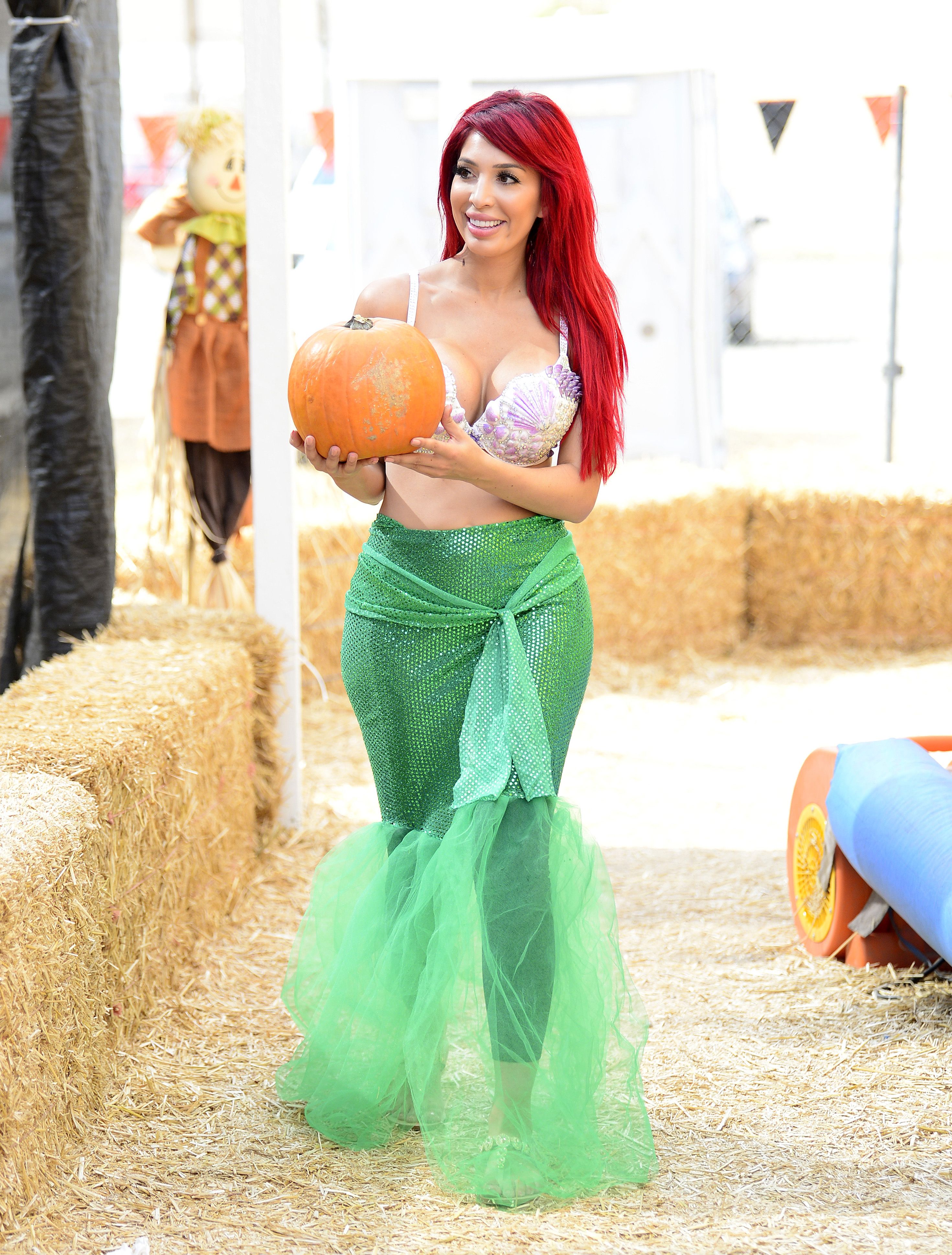 Farrah Abraham arrasa com uma fantasia de sereia ousada no Halloween em uma plantação de abóboras em Los Angeles, 27/10/2017. Farrah Abraham é uma estrela americana de reality TV, modelo e atriz adulta. Idade – 26 anos (31 de maio de 1991).