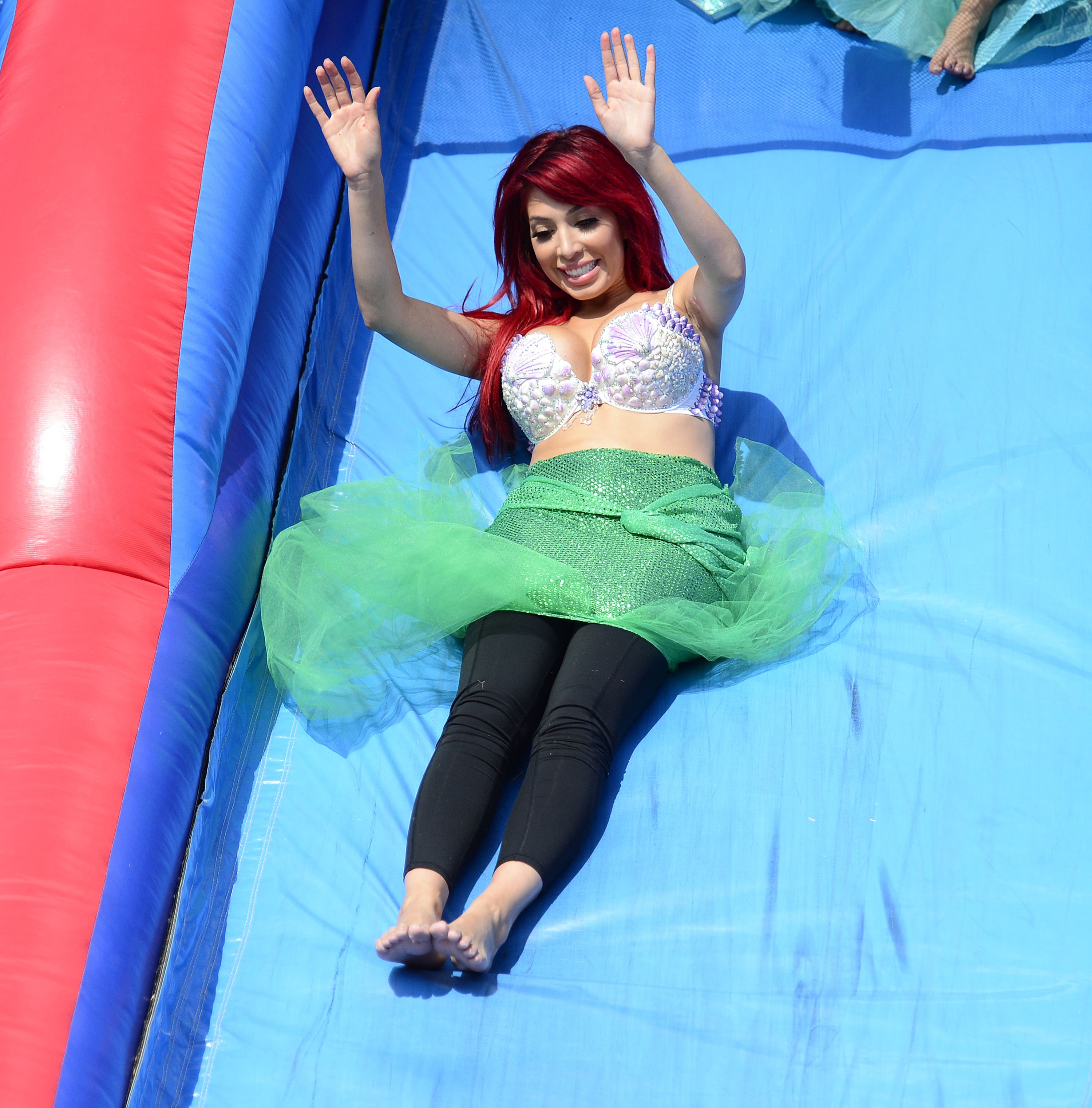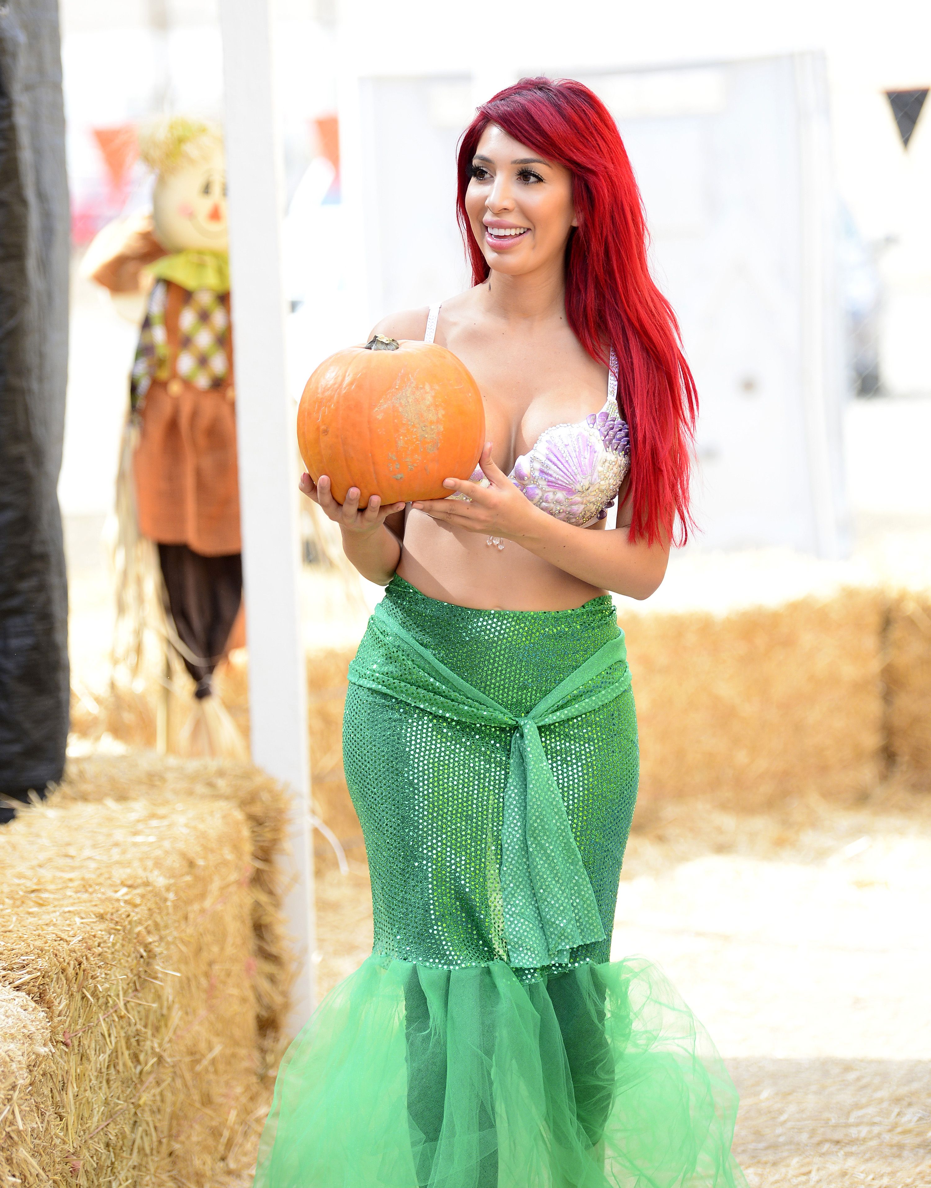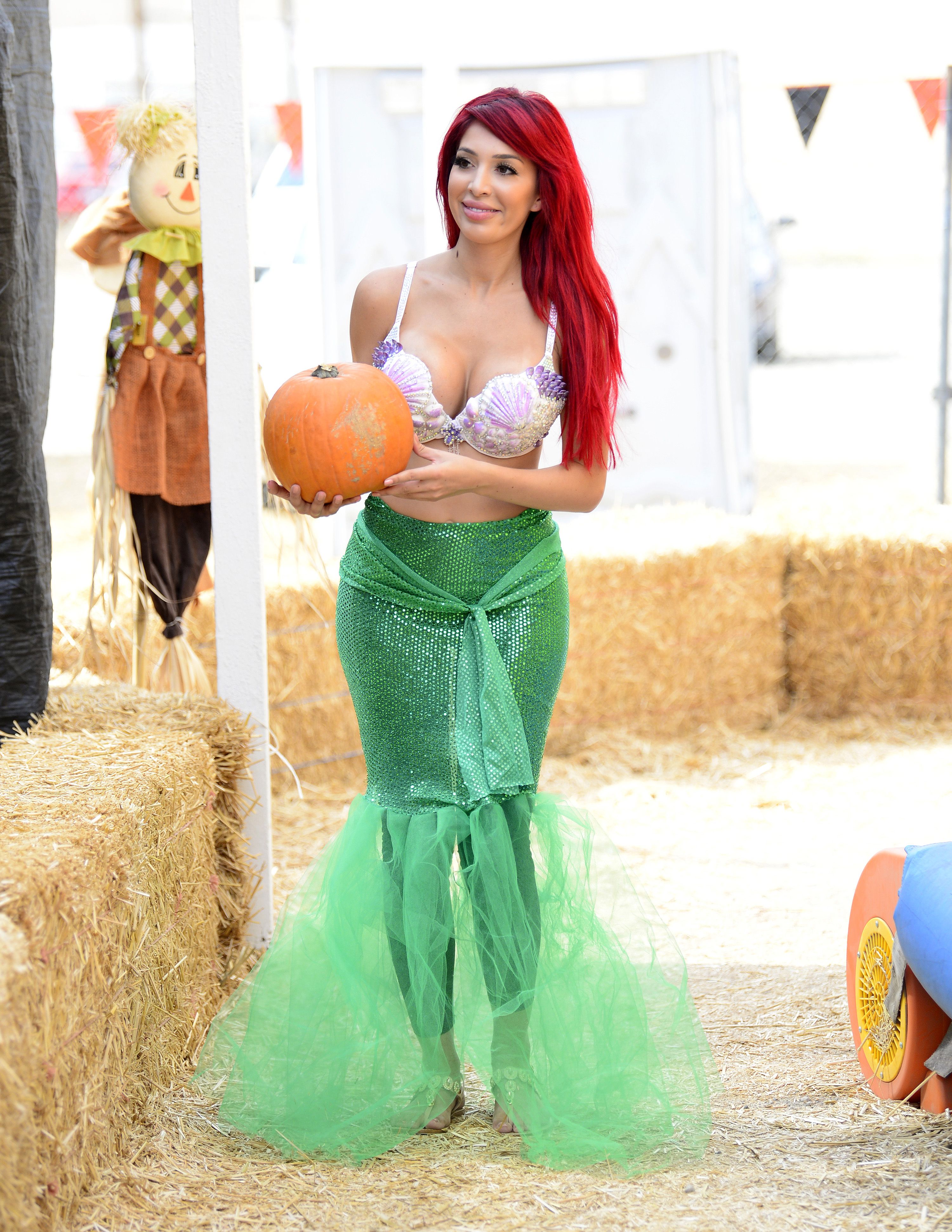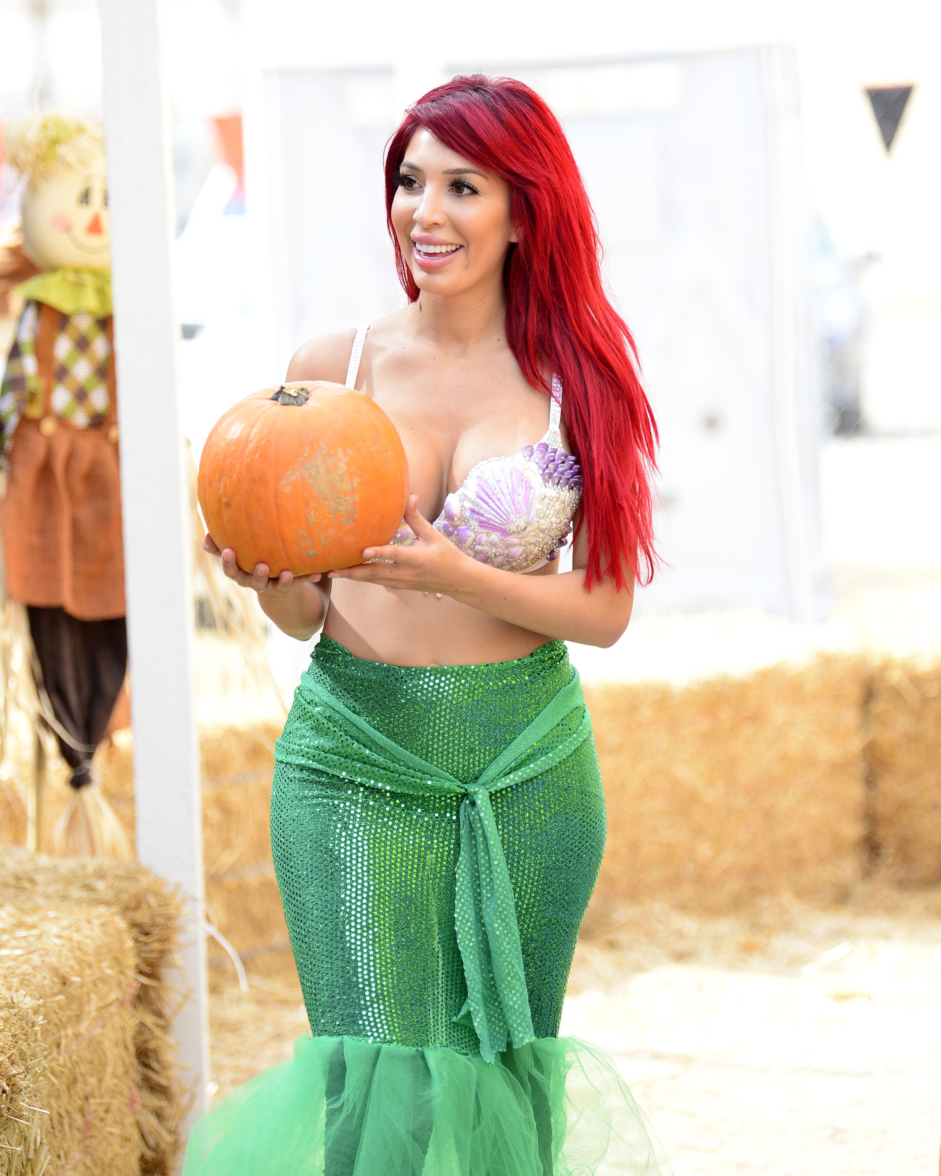 Farrah Abraham arrasa com uma fantasia de sereia ousada no Halloween em uma plantação de abóboras em Los Angeles, 27/10/2017. Farrah Abraham é uma estrela americana de reality TV, modelo e atriz adulta. Idade – 26 anos (31 de maio de 1991).