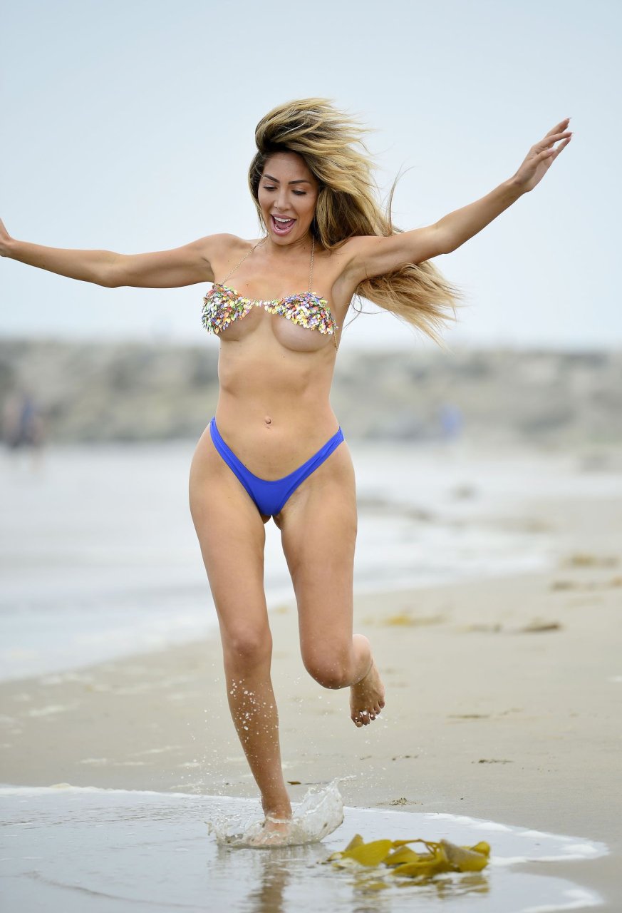 Farrah Abraham exibe seu incrível corpo de biquíni e curvas em um biquíni de lantejoulas minúsculo na praia em Los Angeles, 13/06/2019.