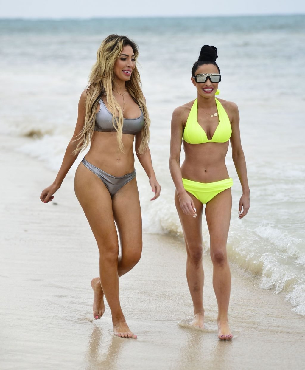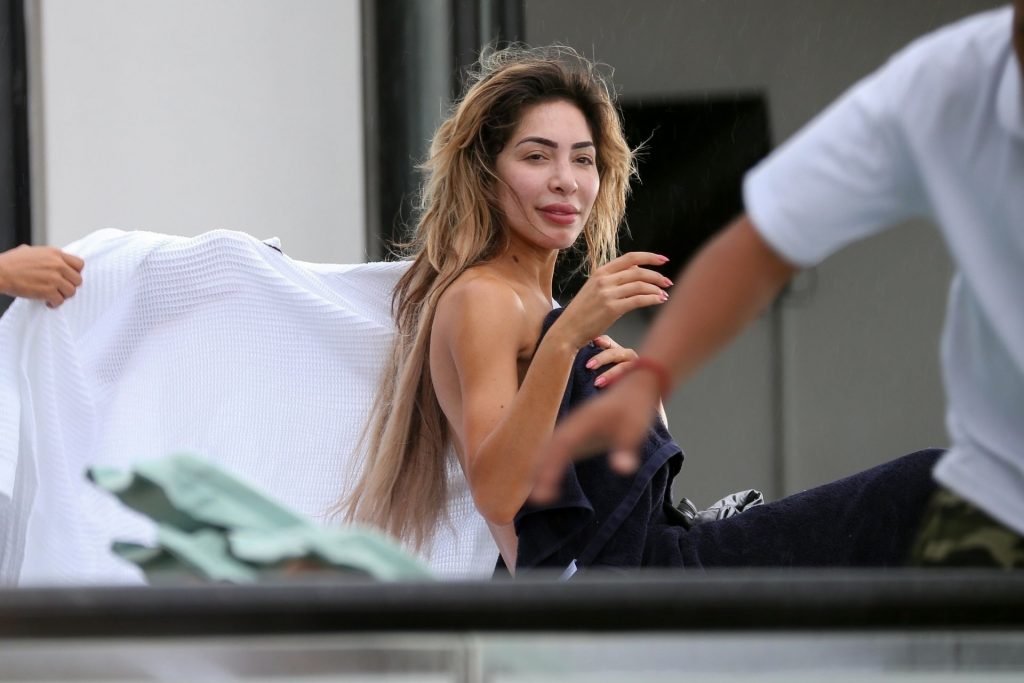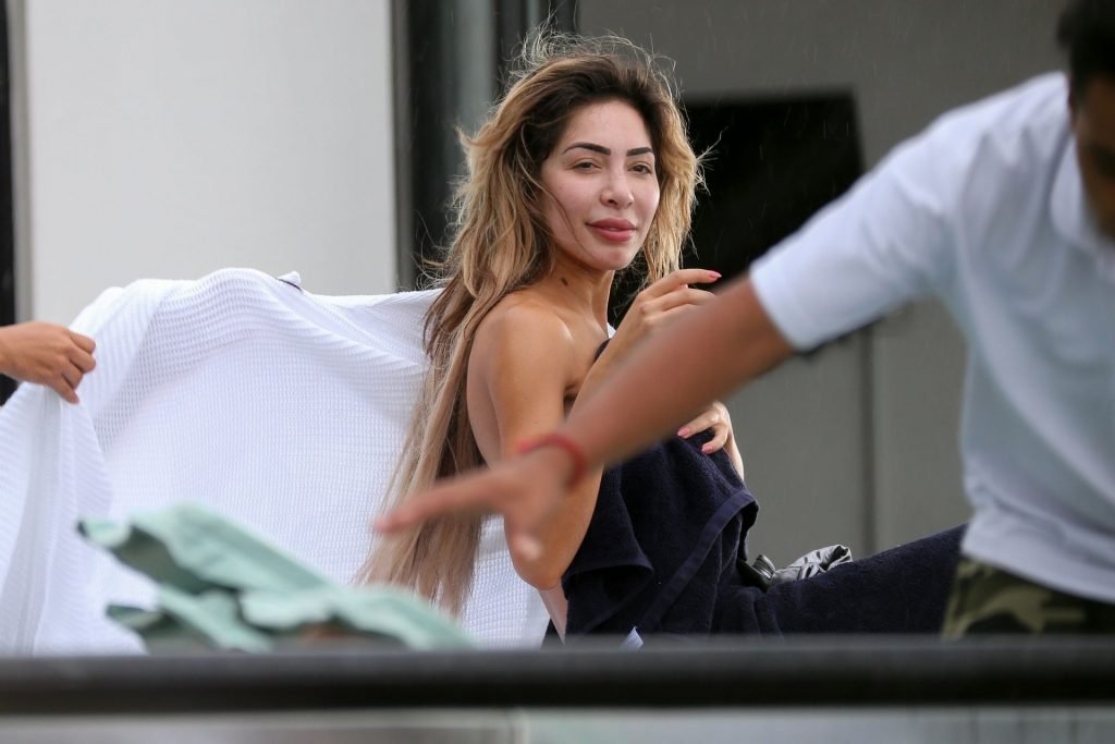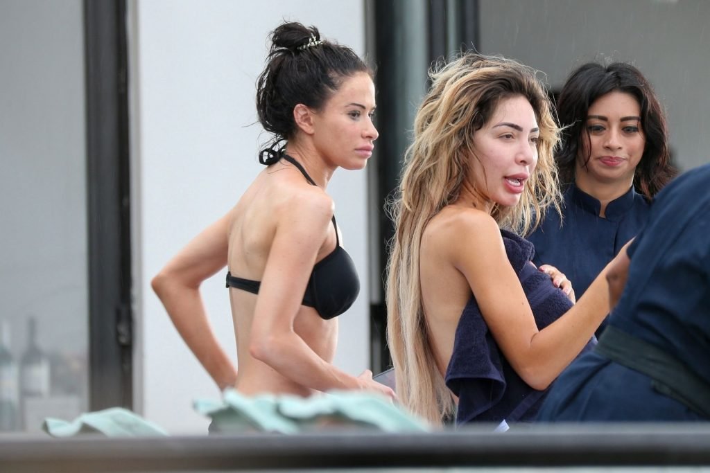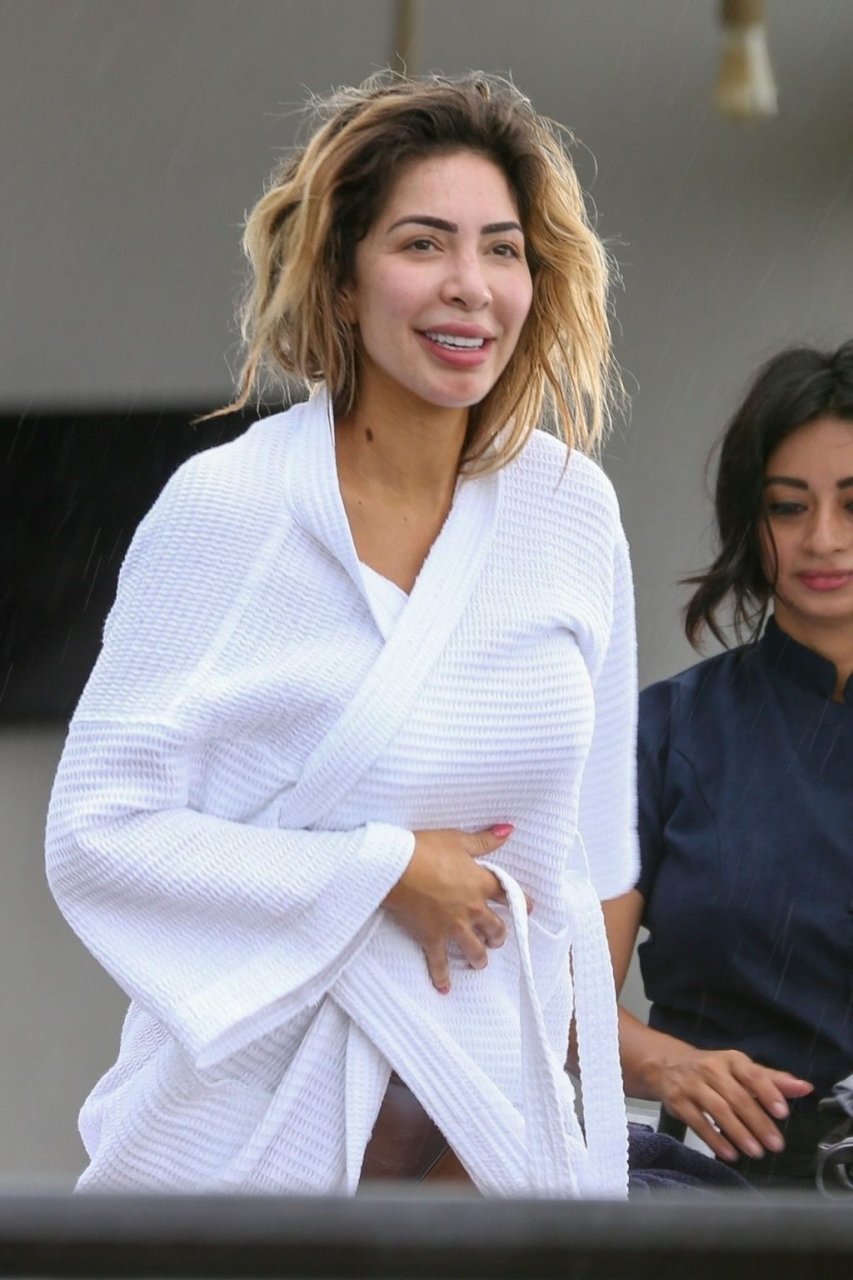Farrah sports a skimpy metallic bikini as she showcases her new larger butt implants at the beach!