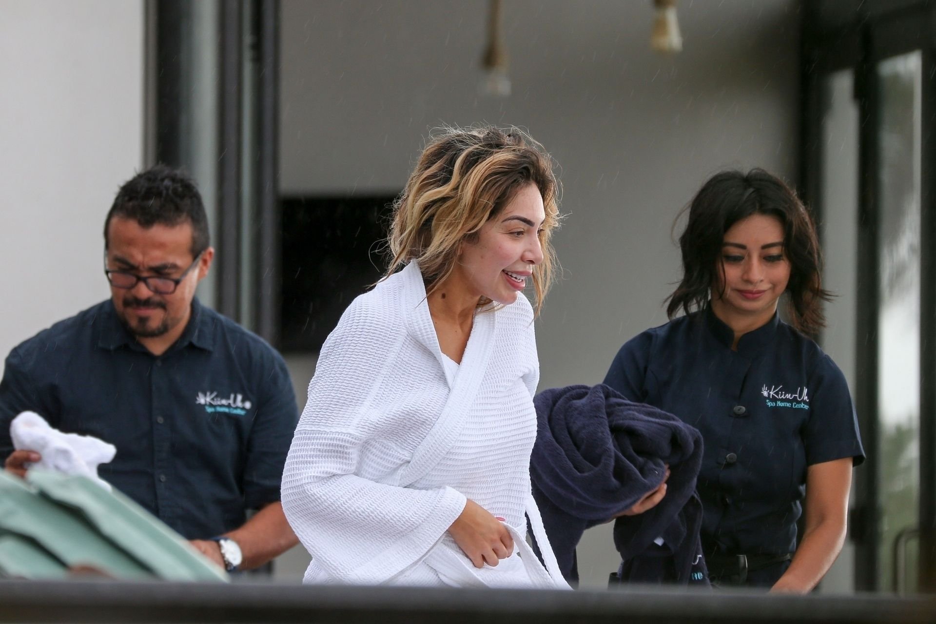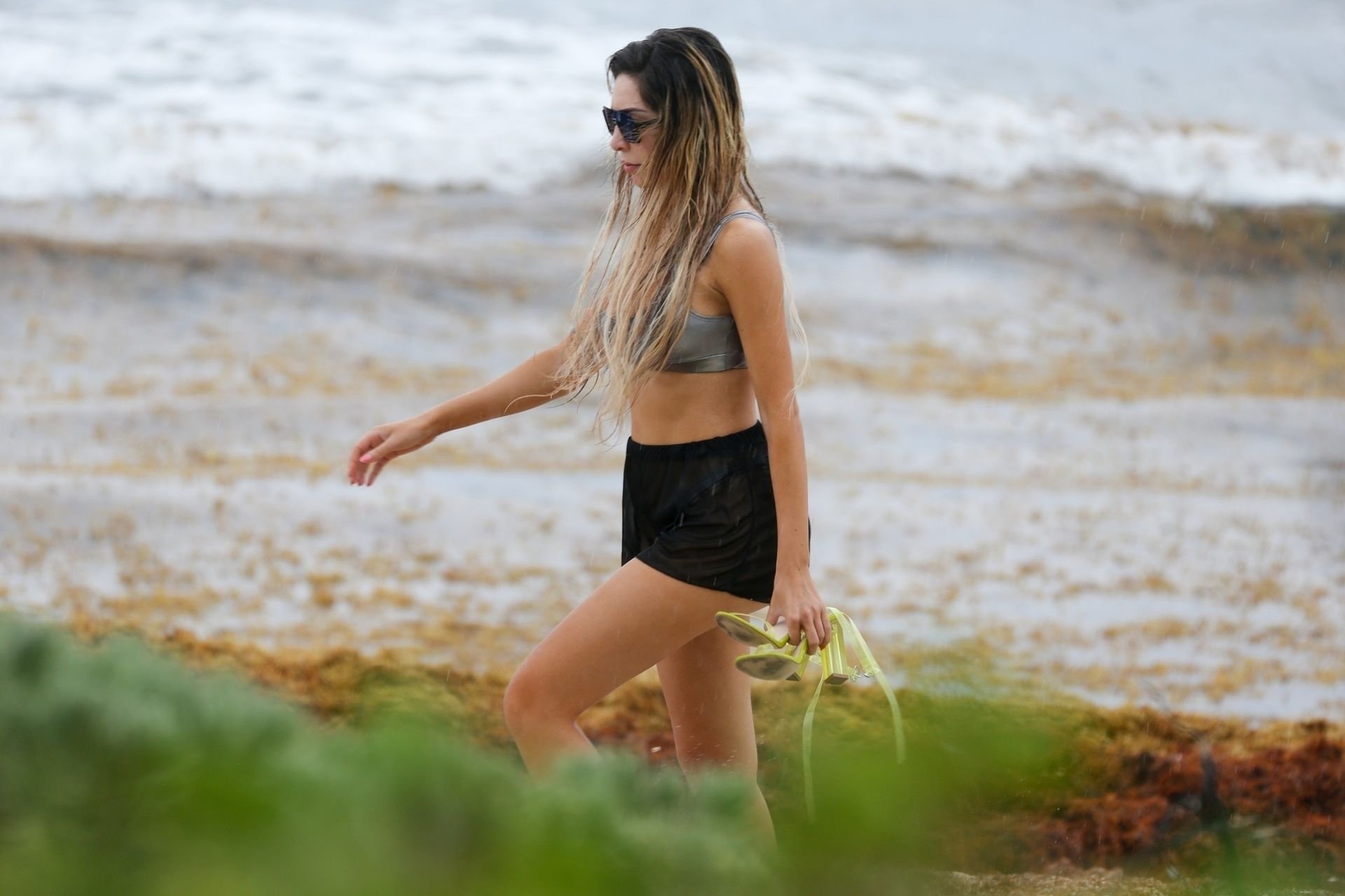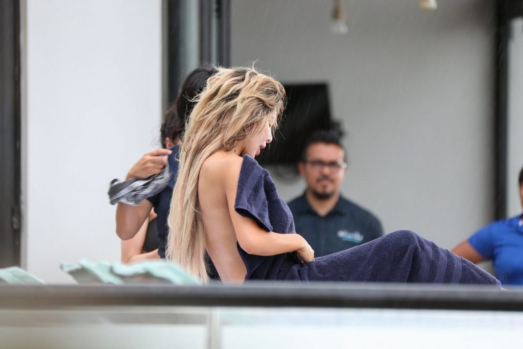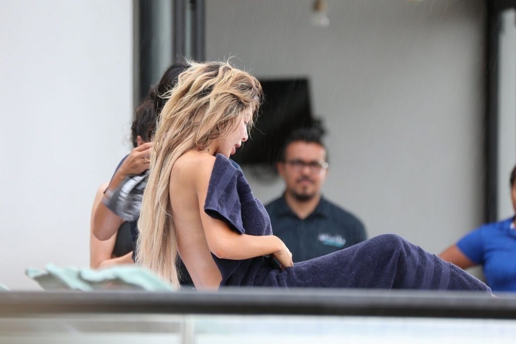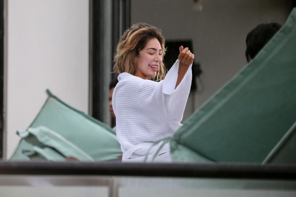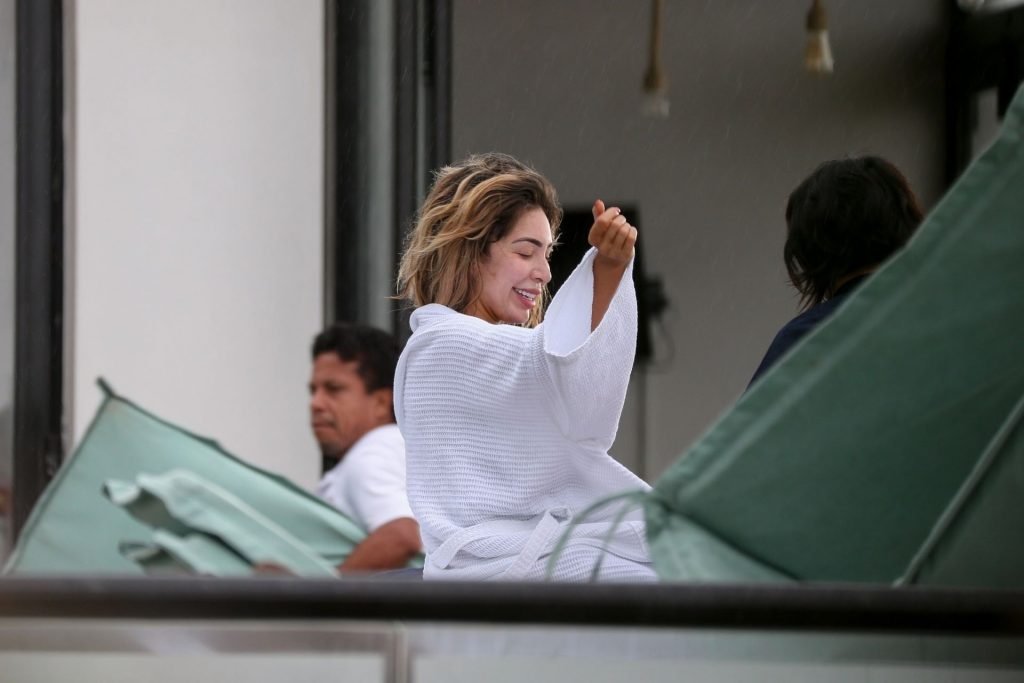Farrah Abraham aproveita um tempo livre em Tulum, México, com uma amiga, 11/04/2019. A estrela da realidade com rosto fresco estava recebendo uma massagem quando foi interrompida pela chuva. Farrah então troca para shorts transparentes e um top de biquíni enquanto volta para seu hotel à beira-mar.