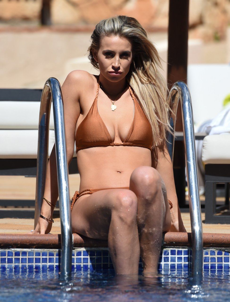 Ex-estrela do TOWIE, modelo, apresentadora de TV e mãe Ferne McCann, 27, exibe seu corpo perfeito em um biquíni marrom durante férias em Marbella, 16/04/2018.