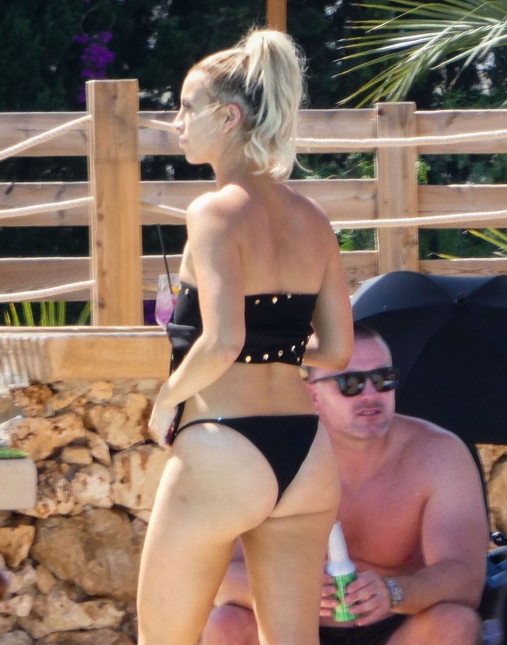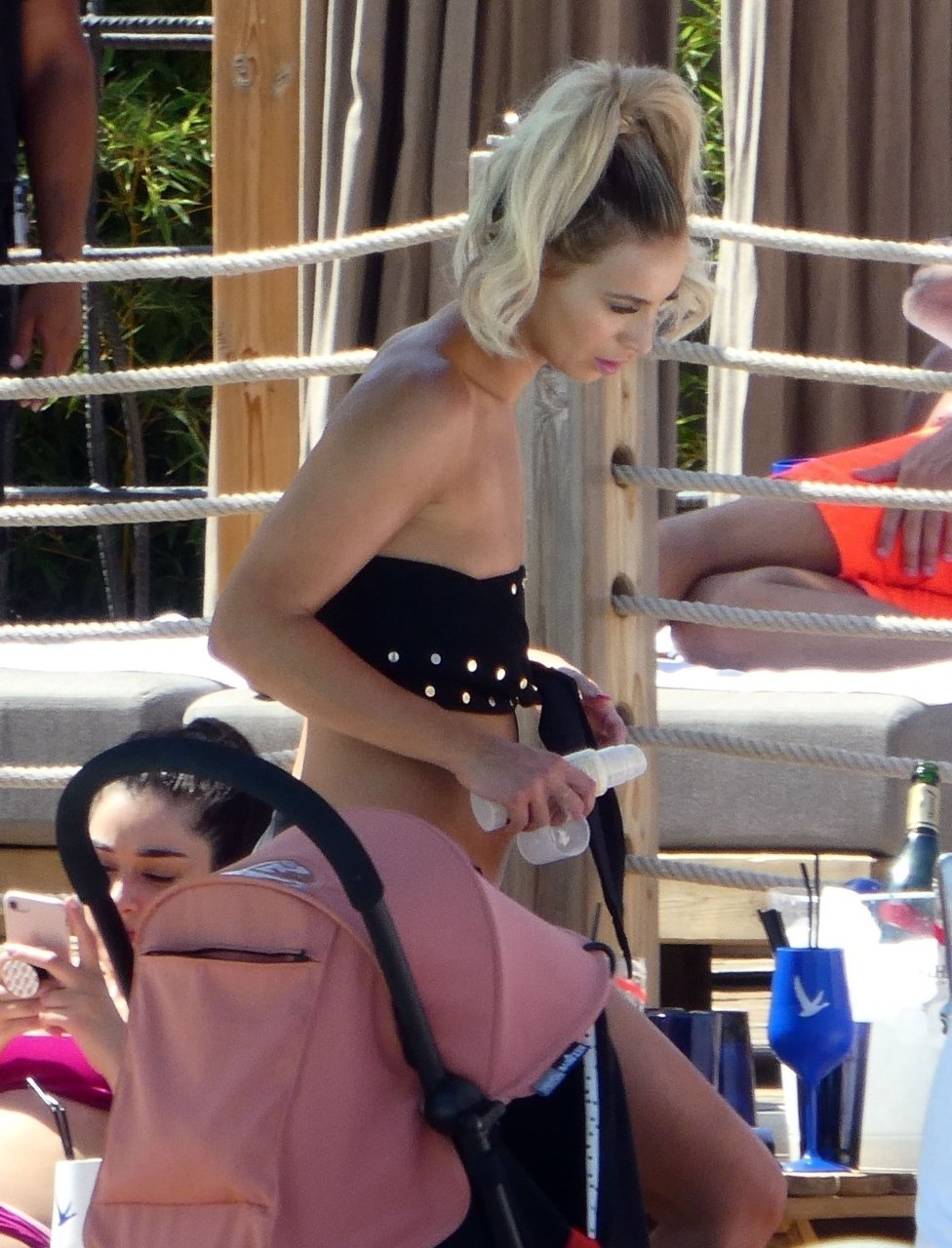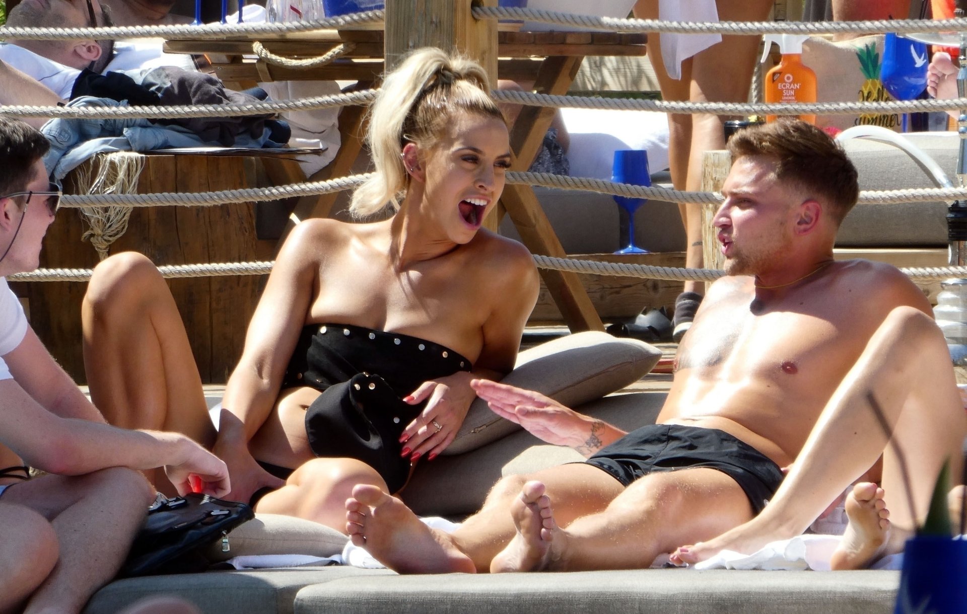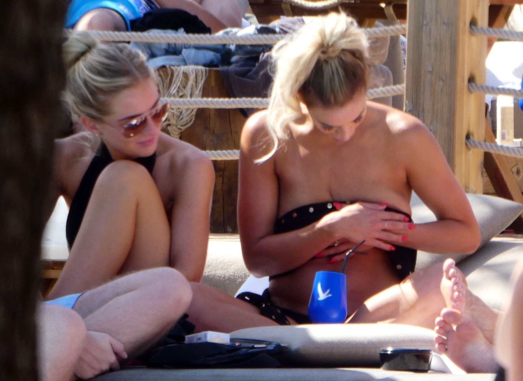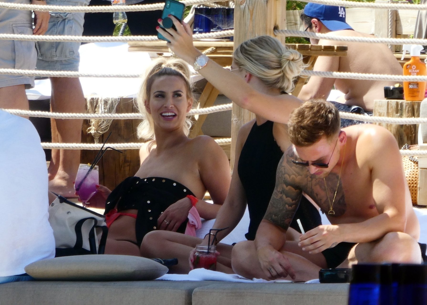 Estrela do TOWIE Ferne McCann fotografada com um misterioso rapaz atraente enquanto relaxava no moderno Nao Pool Club em Marbella, 22/06/2018. Ferne foi fotografada parecendo relaxada enquanto tomava sol e curtia bebidas com suas amigas, enquanto descansava à beira da piscina em um biquíni preto, exibindo seu corpo de praia e seios à mostra.