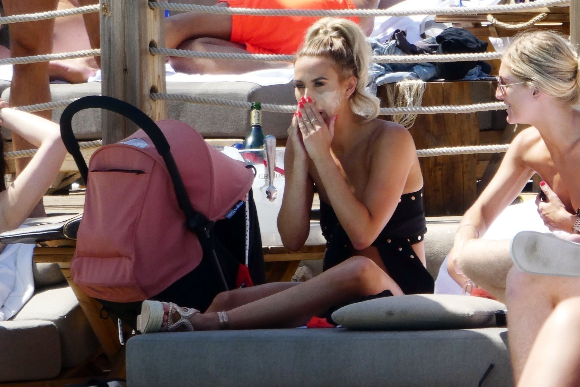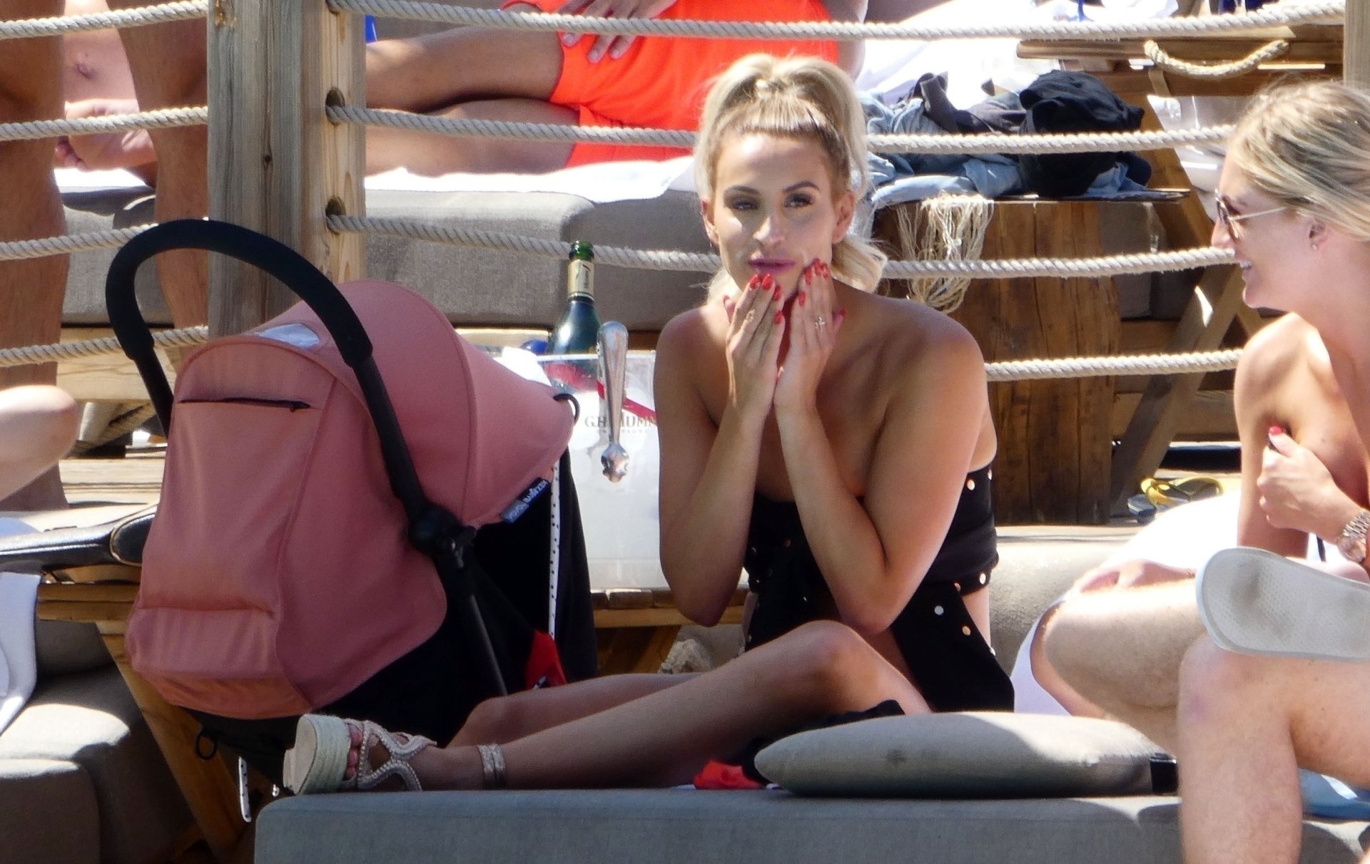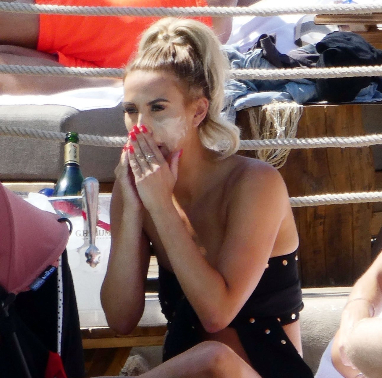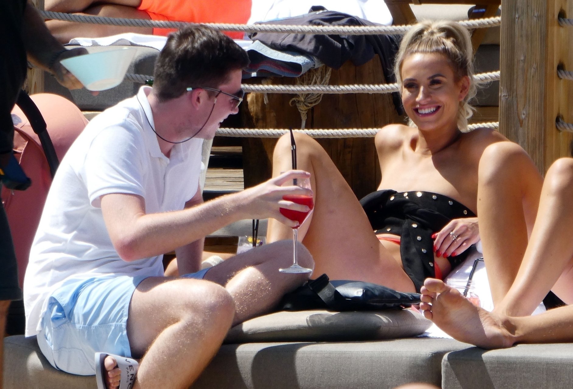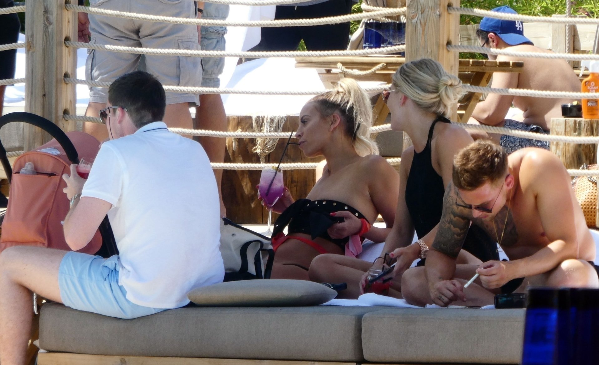 Estrela do TOWIE Ferne McCann fotografada com um misterioso rapaz atraente enquanto relaxava no moderno Nao Pool Club em Marbella, 22/06/2018. Ferne foi fotografada parecendo relaxada enquanto tomava sol e curtia bebidas com suas amigas, enquanto descansava à beira da piscina em um biquíni preto, exibindo seu corpo de praia e seios à mostra.