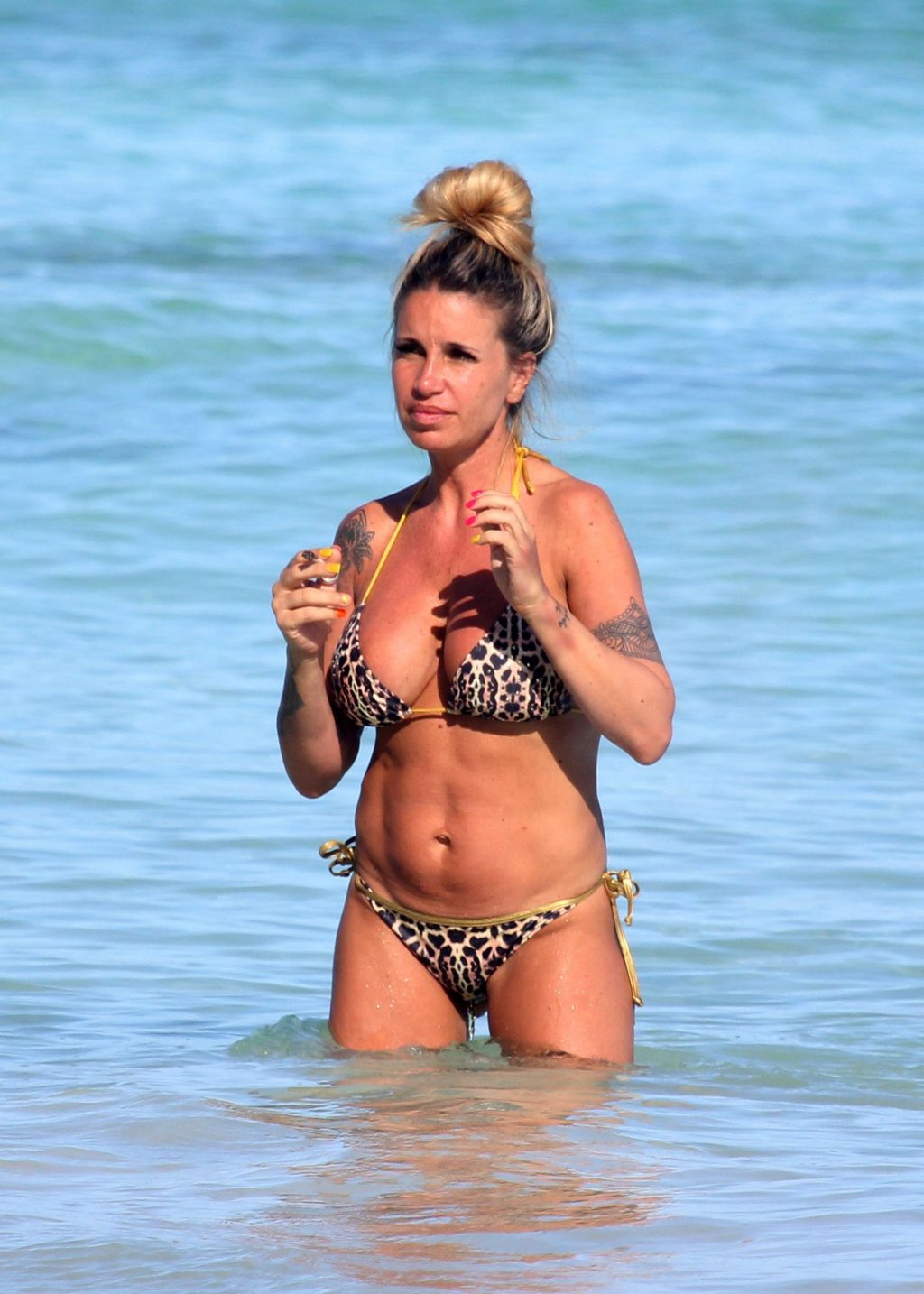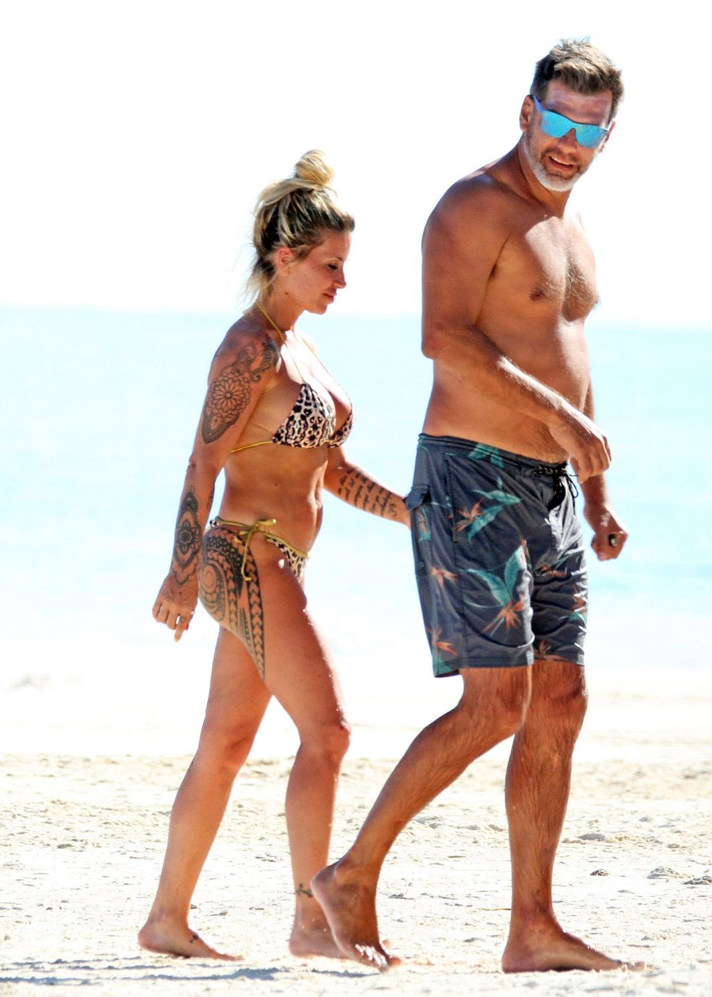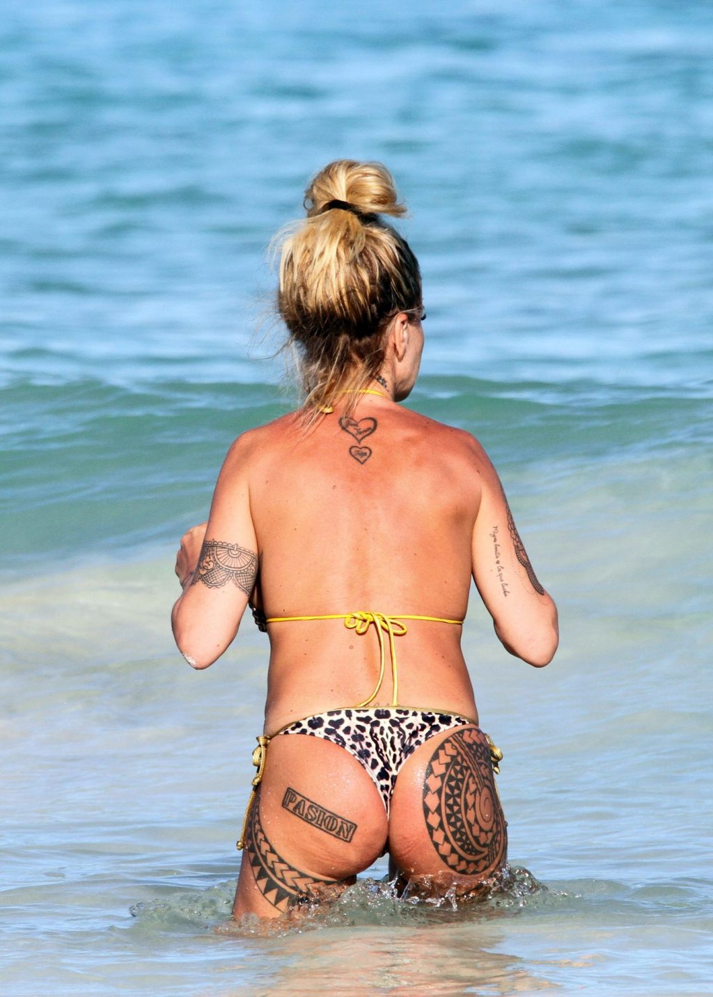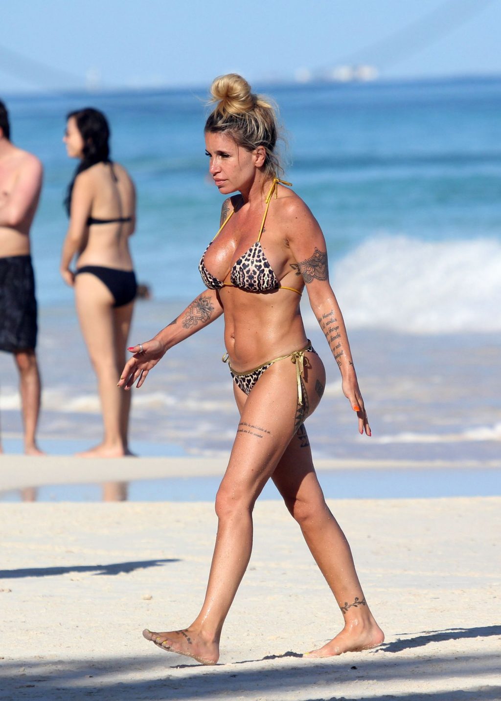 A atriz argentina Florencia Peña usa um biquíni estampado de onça enquanto é vista aproveitando a praia durante as férias no México, 31/12/2019.