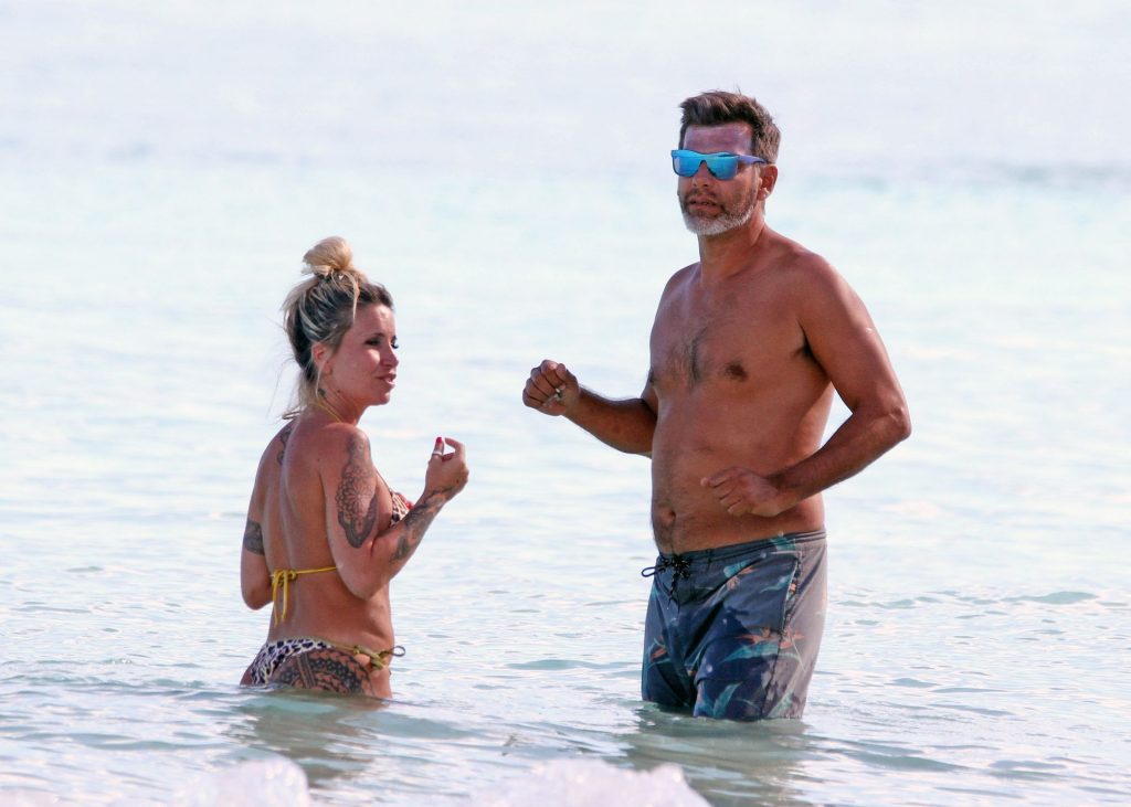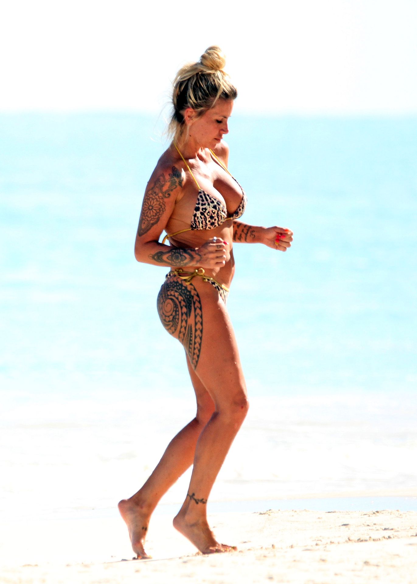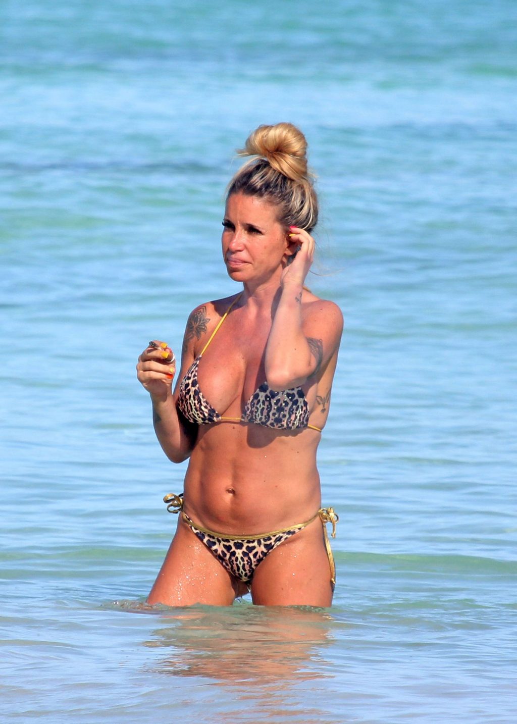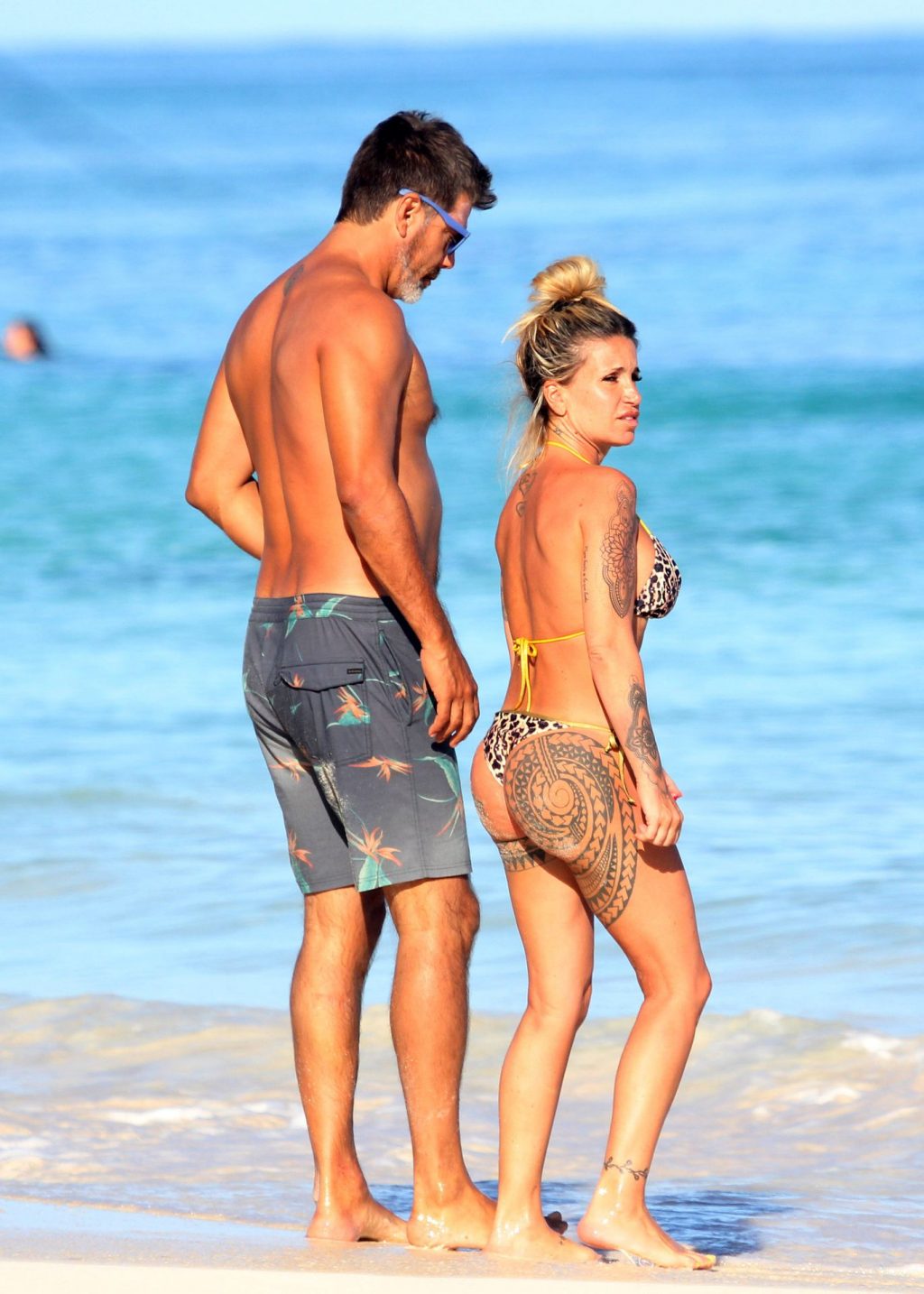 A atriz argentina Florencia Peña usa um biquíni estampado de onça enquanto é vista aproveitando a praia durante as férias no México, 31/12/2019.