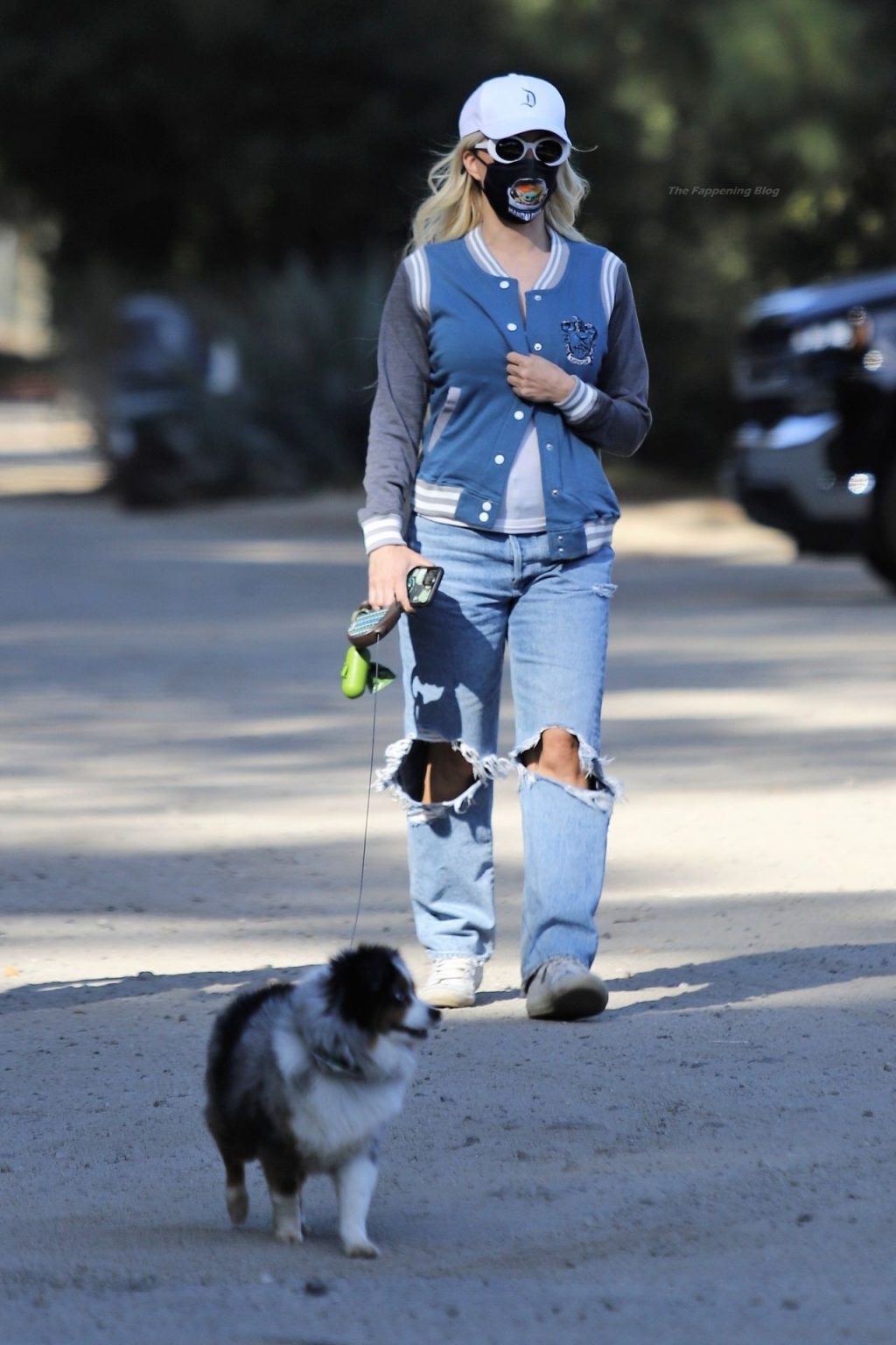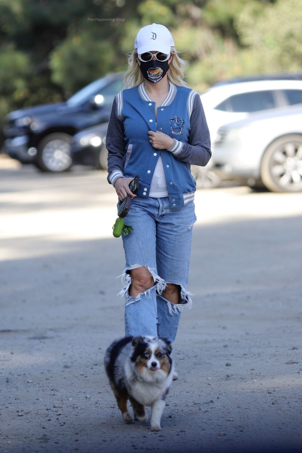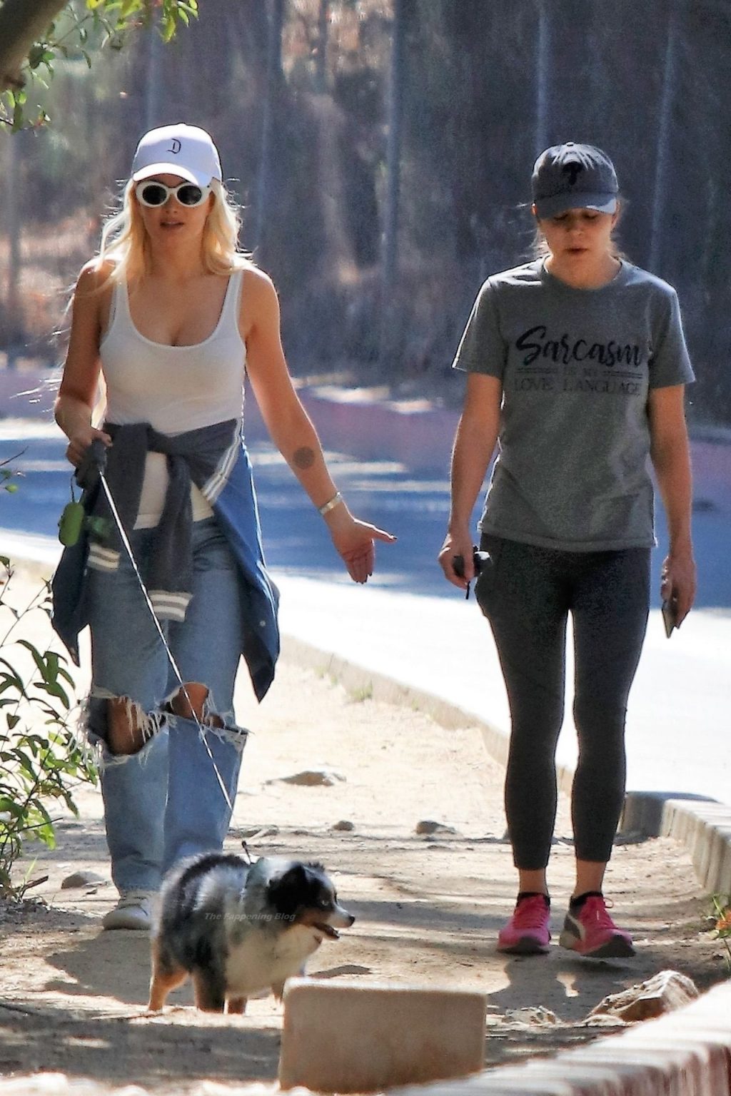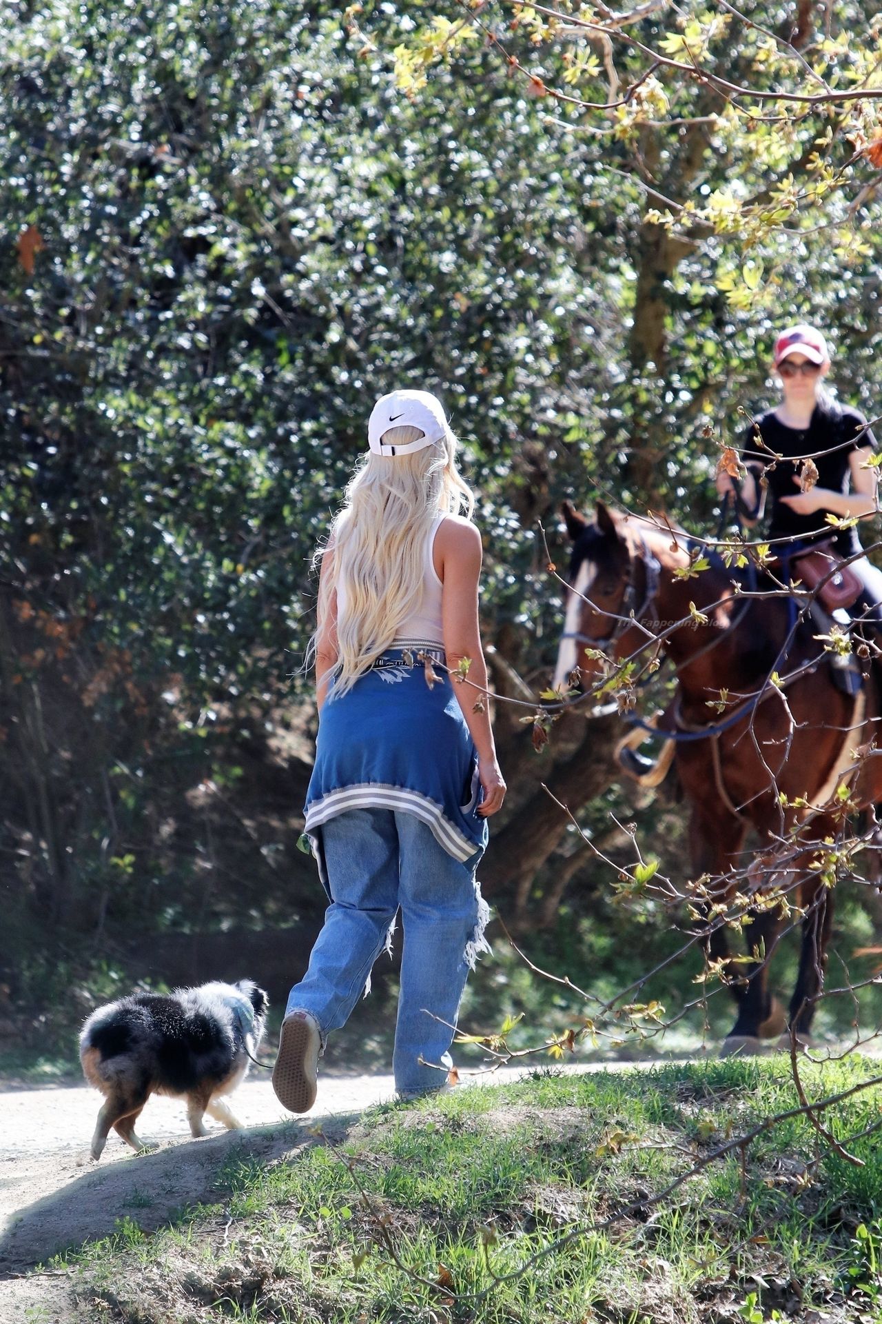 Ex-Playmate de Hefner, atriz e modelo Holly Madison está fazendo uma caminhada pelo bairro com seu cachorro de estimação e uma amiga em Los Angeles, 02/03/2021.