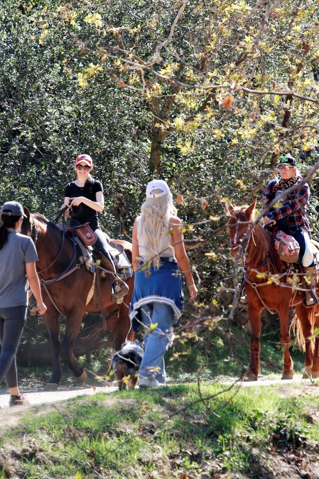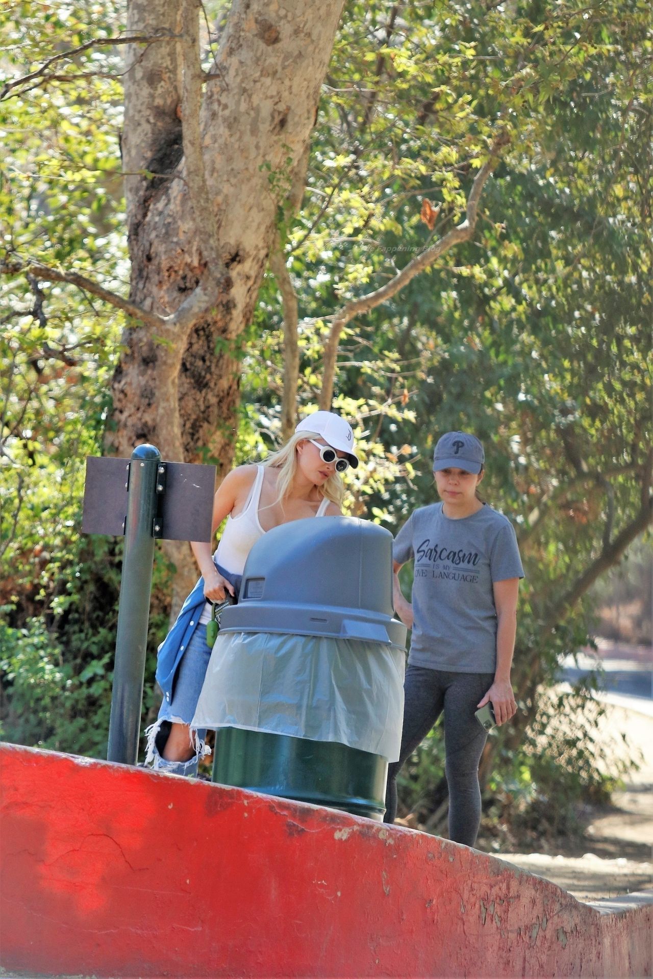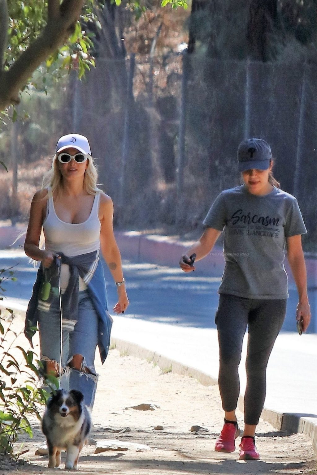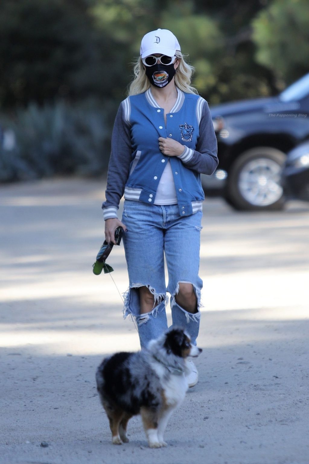 Ex-Playmate de Hefner, atriz e modelo Holly Madison está fazendo uma caminhada pelo bairro com seu cachorro de estimação e uma amiga em Los Angeles, 02/03/2021.