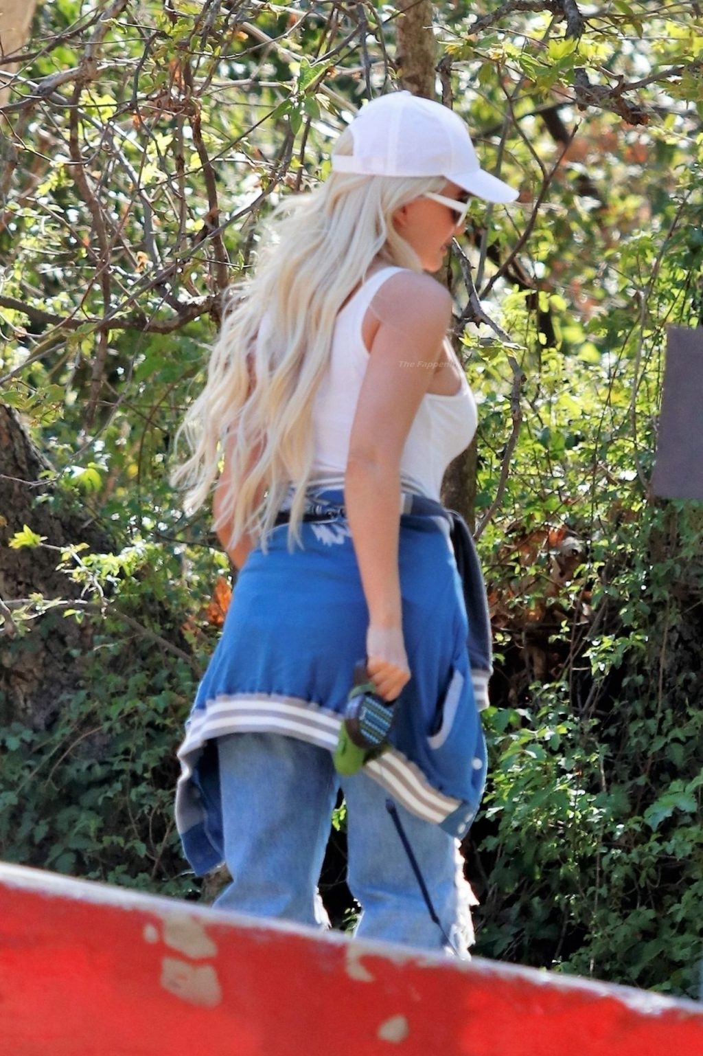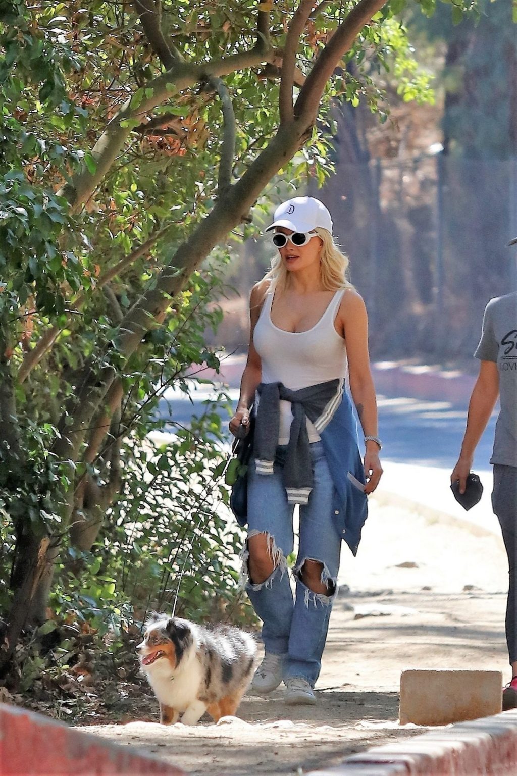 Holly usa um decote profundo que destaca sua silhueta voluptuosa! Holly optou por um jeans rasgado em vez de roupas esportivas para o passeio.