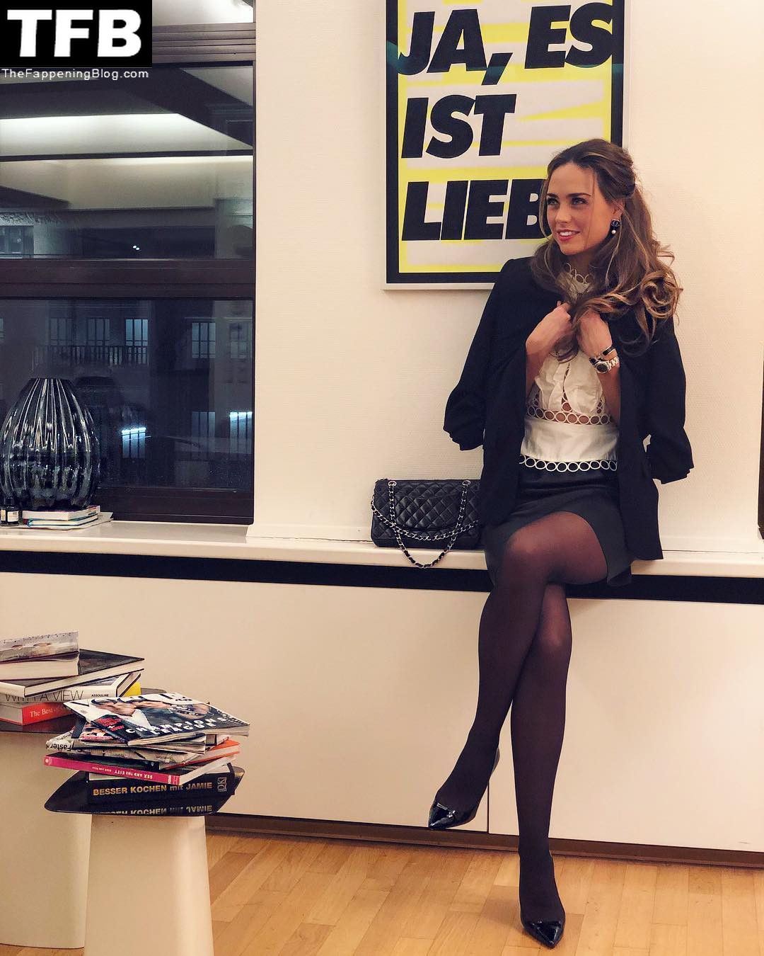 A apresentadora de TV alemã Franca Lehfeldt está em uma nova coleção de fotos sensuais no tapete vermelho e nas redes sociais.