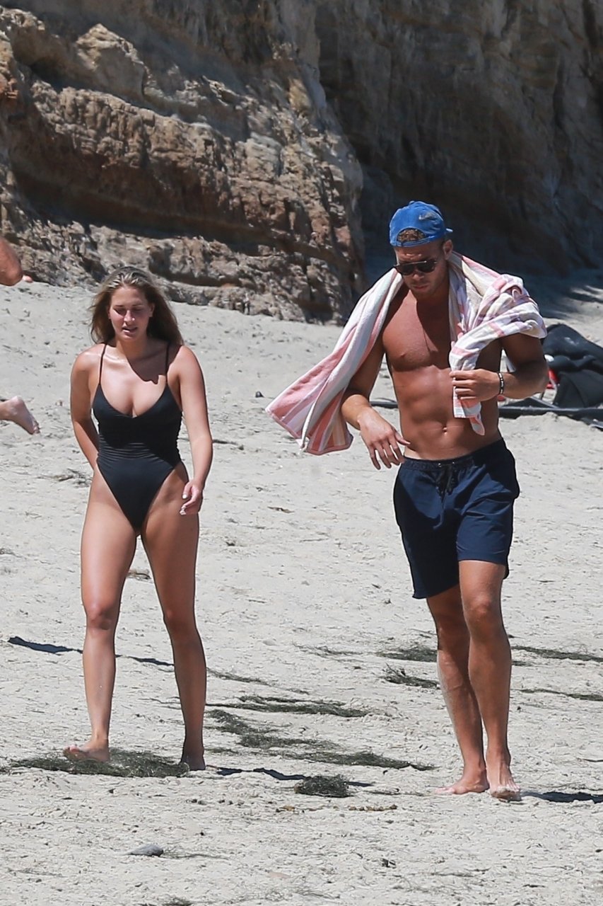 Blake Griffin e sua namorada sensual, Francesca Aiello (23), foram vistos enquanto passeavam pela praia em Malibu, 22/07/2018. O jogador de basquete exibe seu físico em forma enquanto a loira bonita mostra suas curvas. O casal aproveita um dia quente de verão para encerrar o fim de semana.